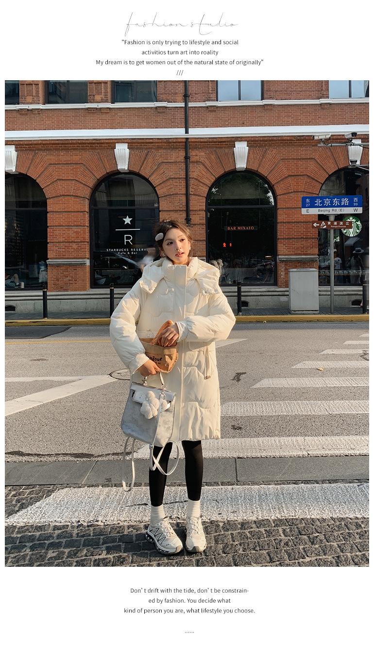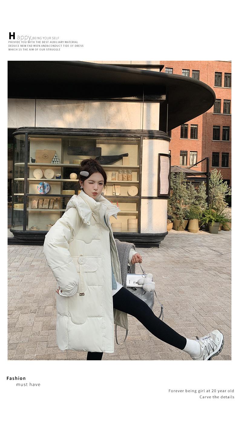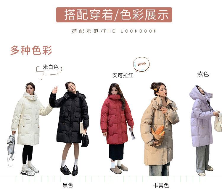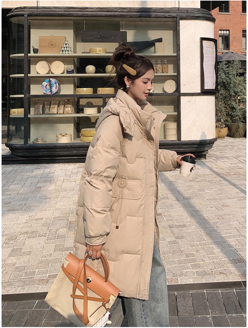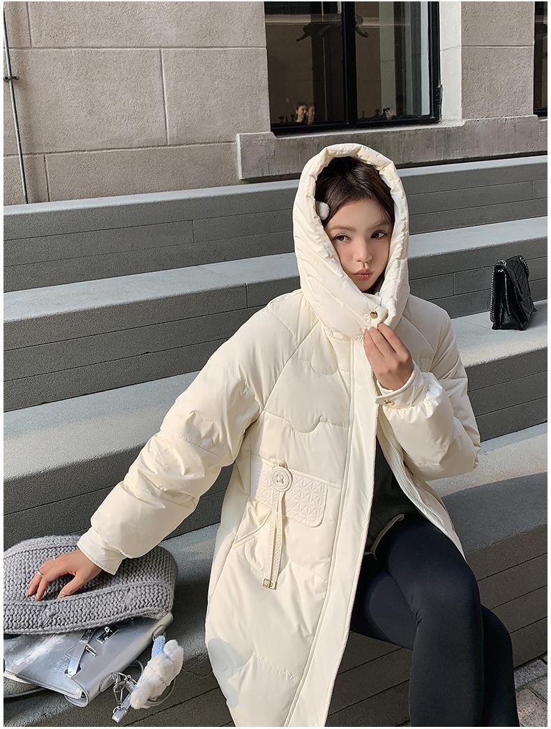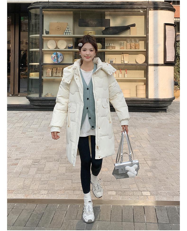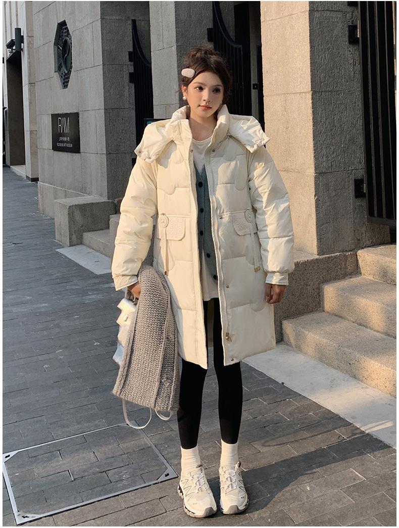 Chaqueta de plumón de estilo coreano para mujer, de longitud media, holgada, ajustada, con capucha, color blanco, para invierno, 2024