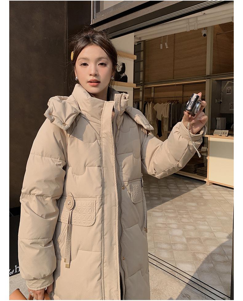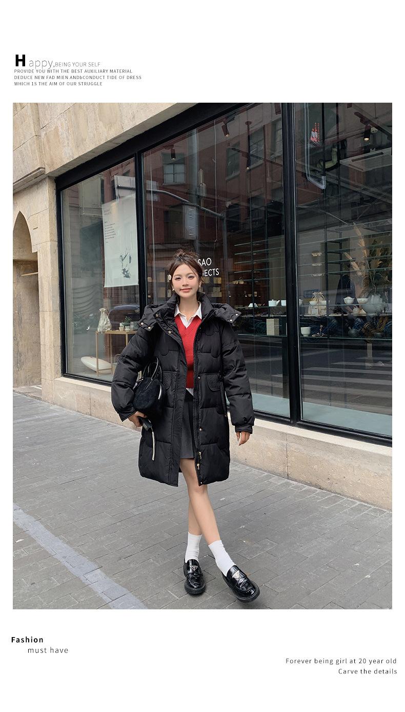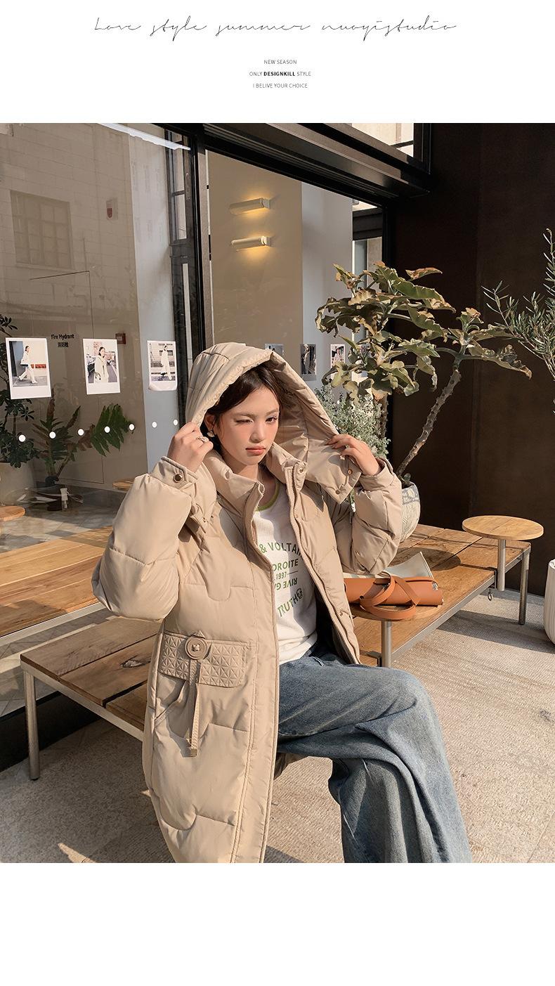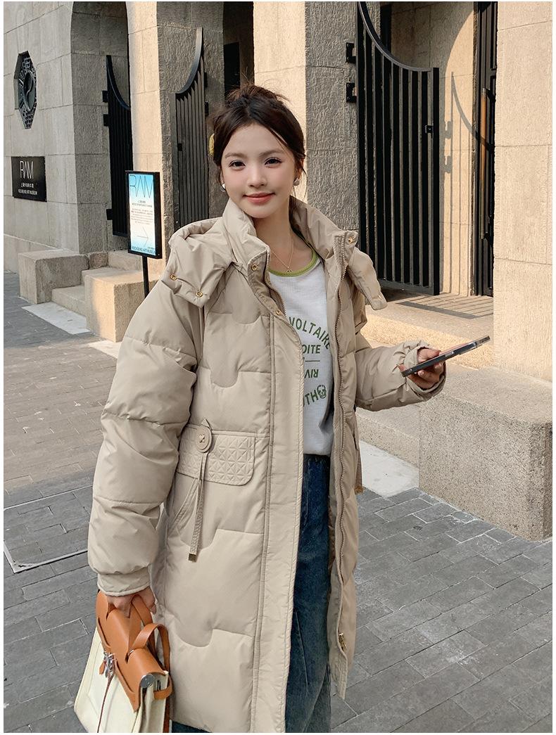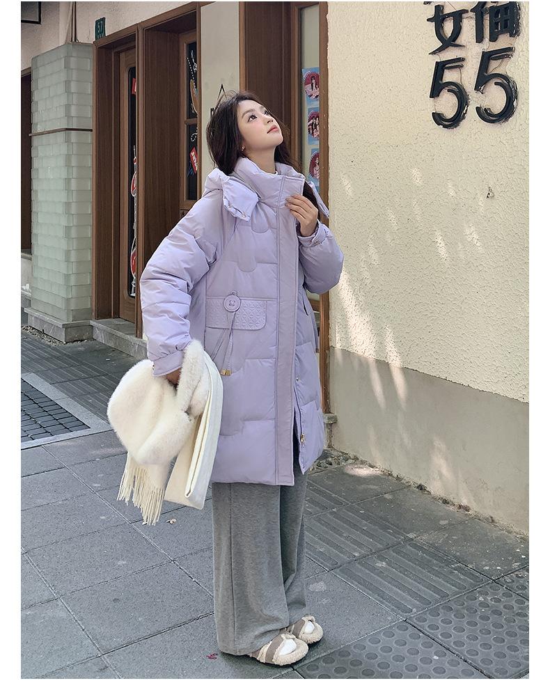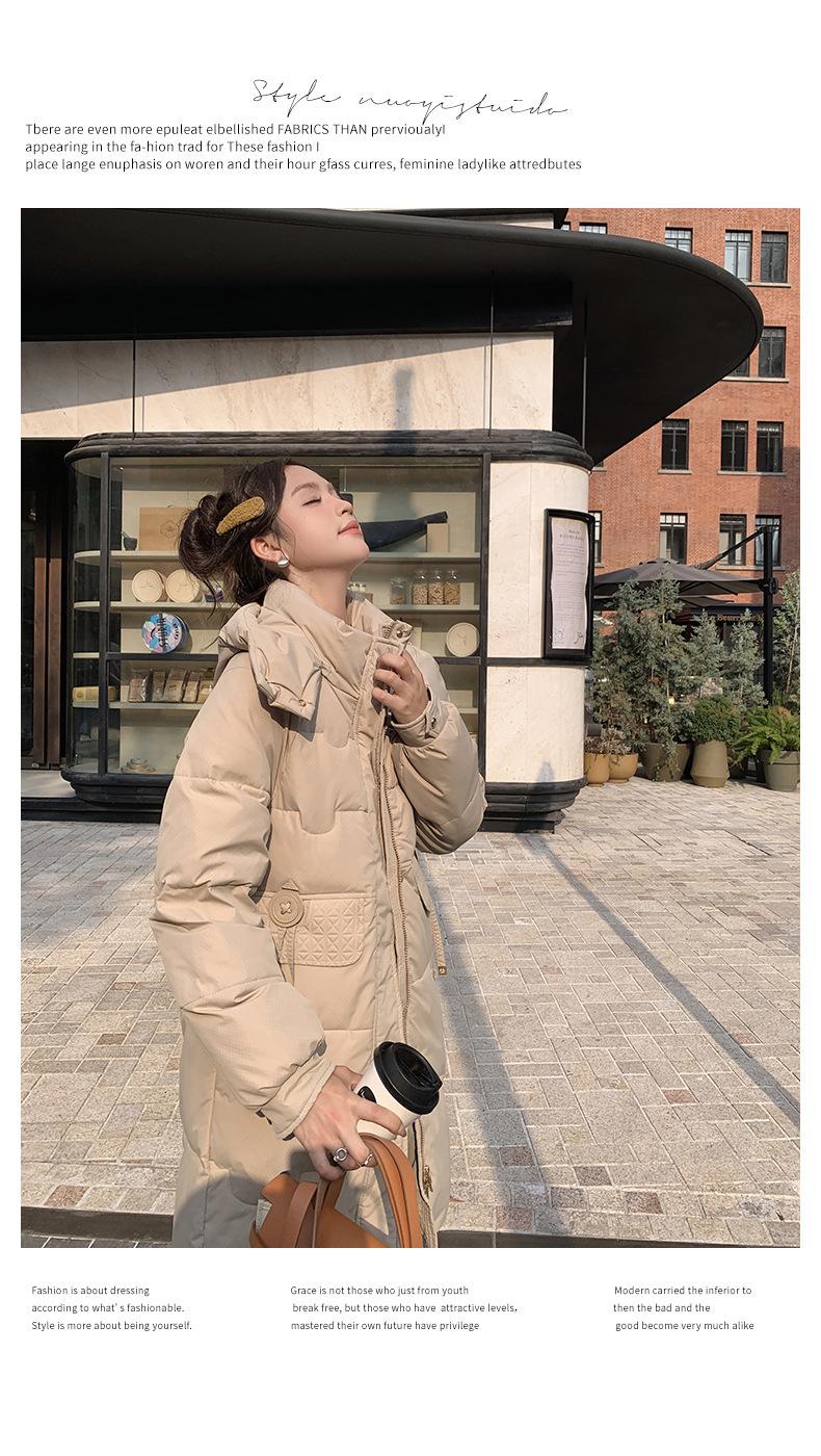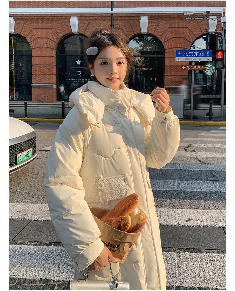 Chaqueta de plumón de estilo coreano para mujer, de longitud media, holgada, ajustada, con capucha, color blanco, para invierno, 2024