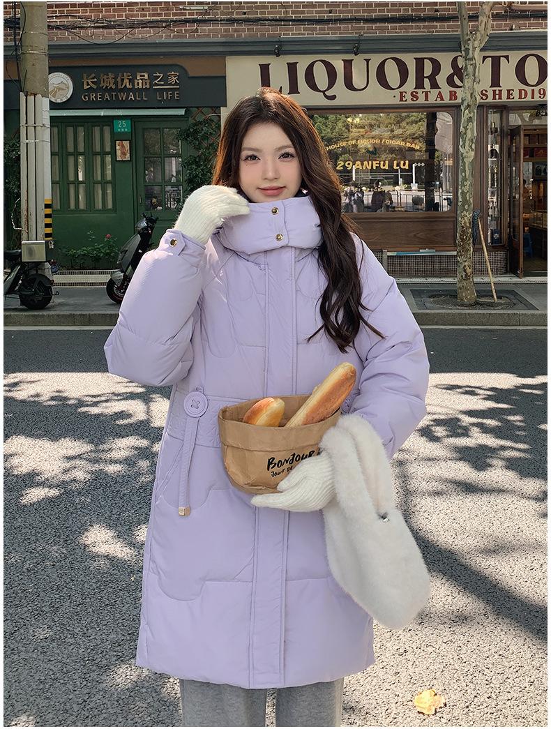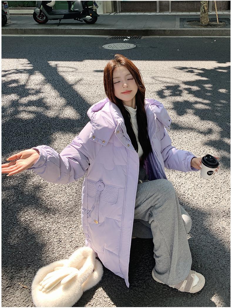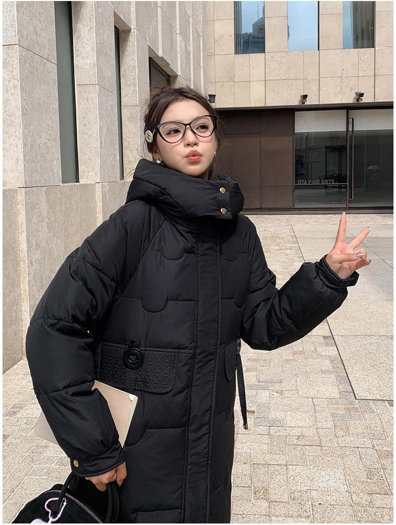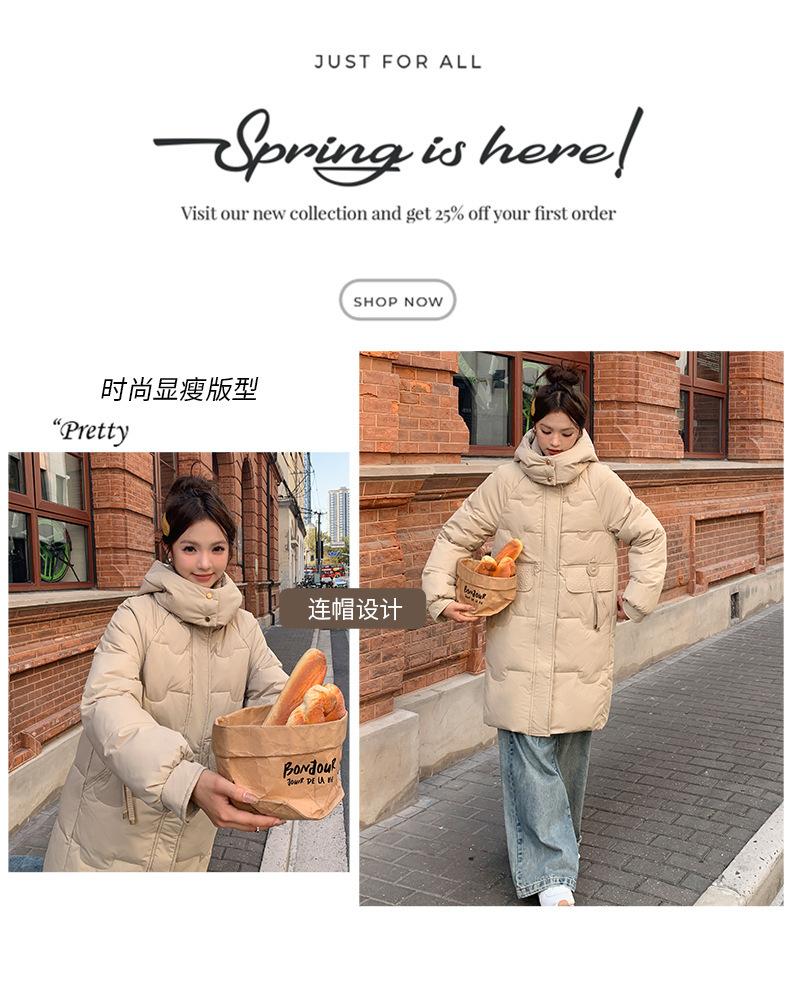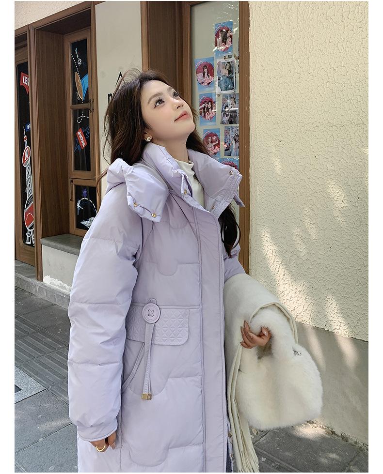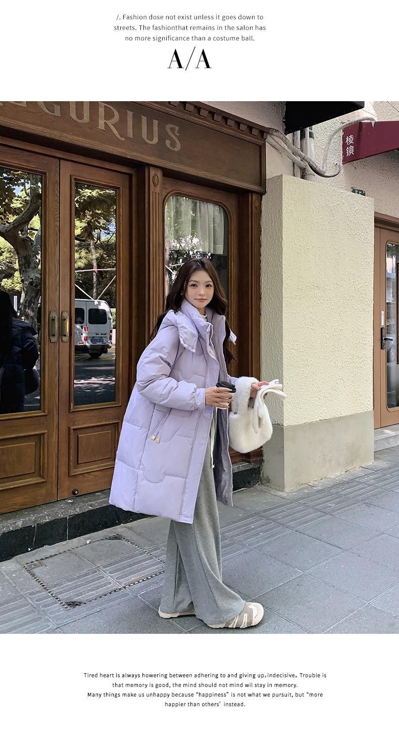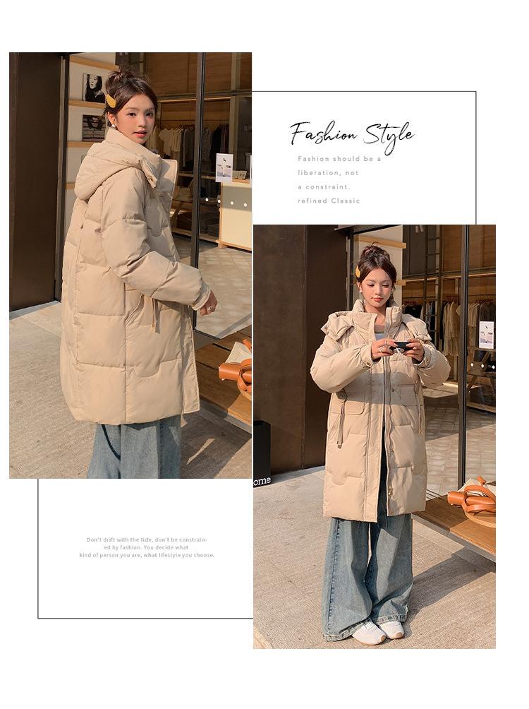 Chaqueta de plumón de estilo coreano para mujer, de longitud media, holgada, ajustada, con capucha, color blanco, para invierno, 2024