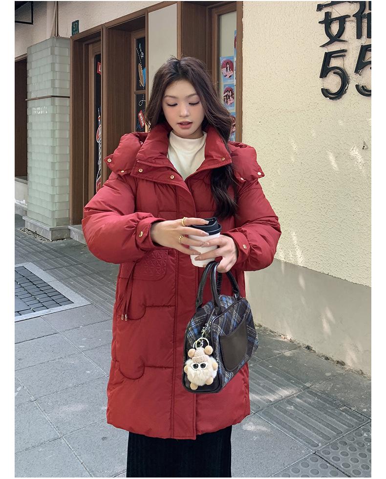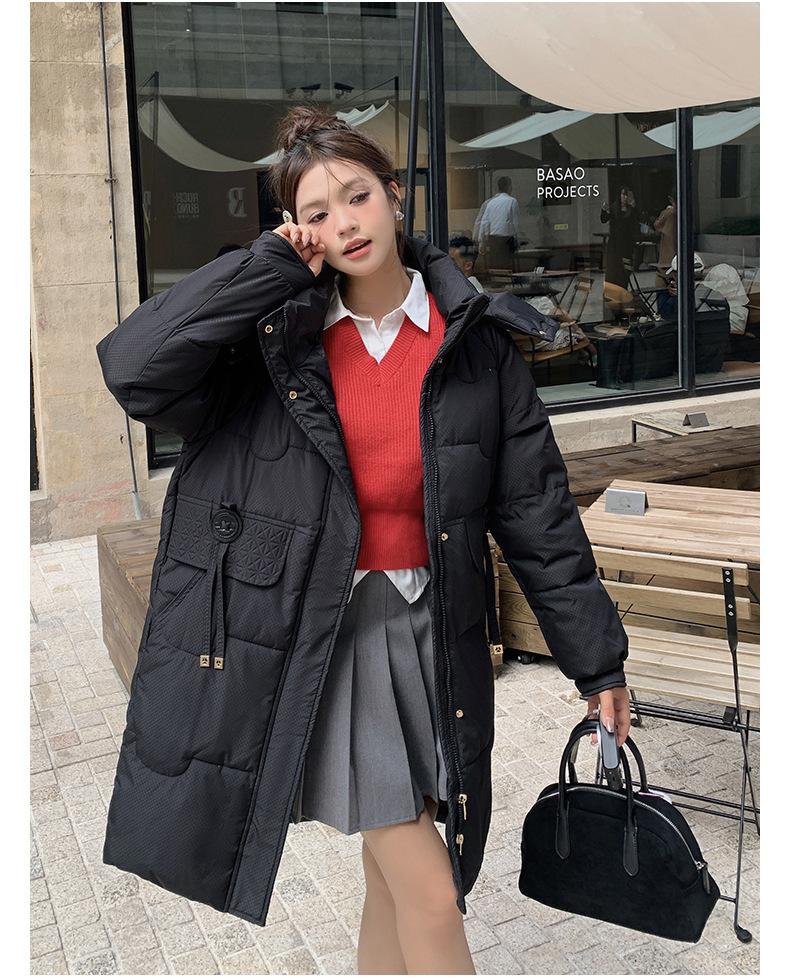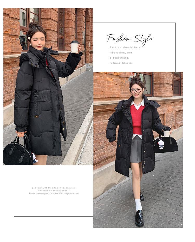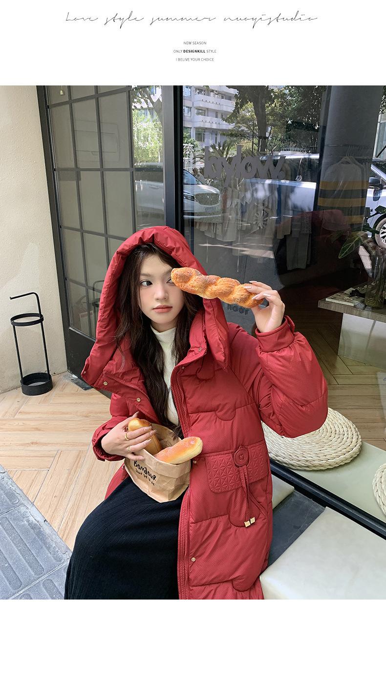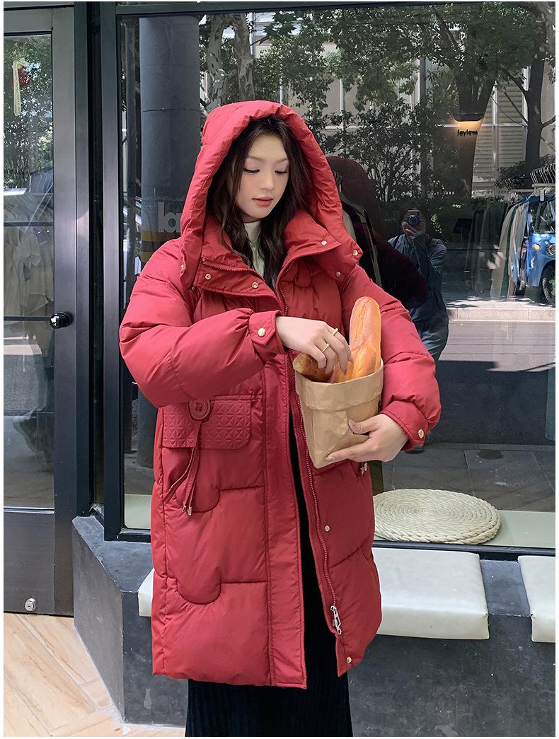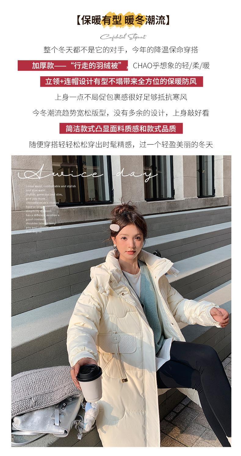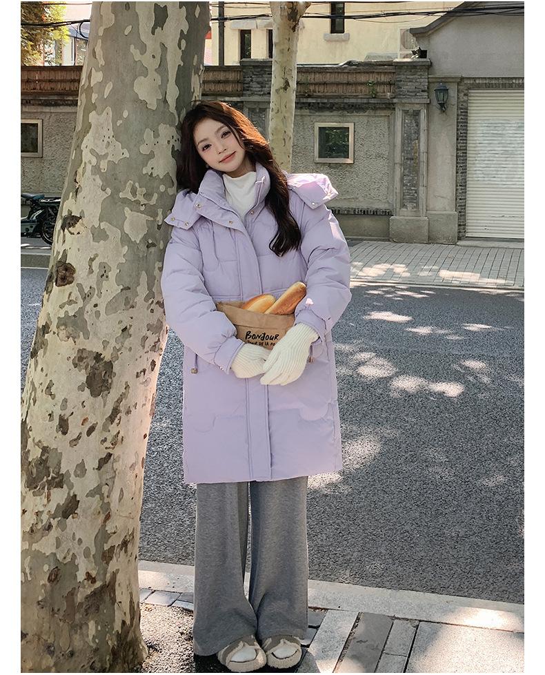 Chaqueta de plumón de estilo coreano para mujer, de longitud media, holgada, ajustada, con capucha, color blanco, para invierno, 2024
