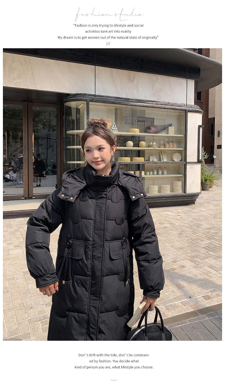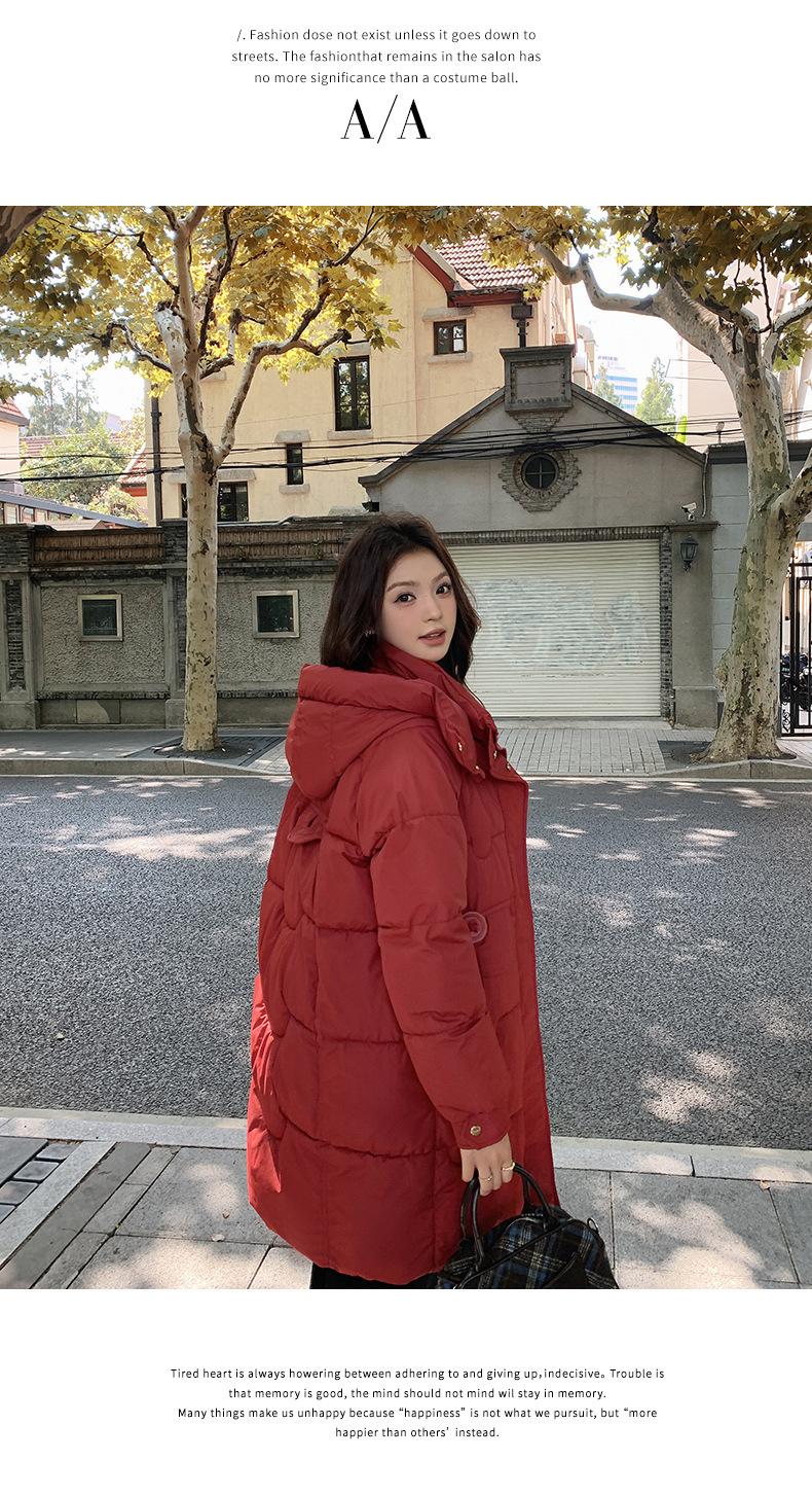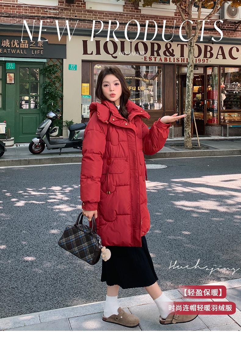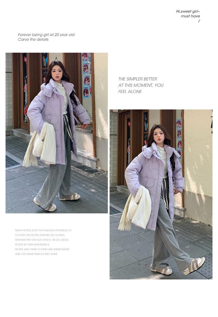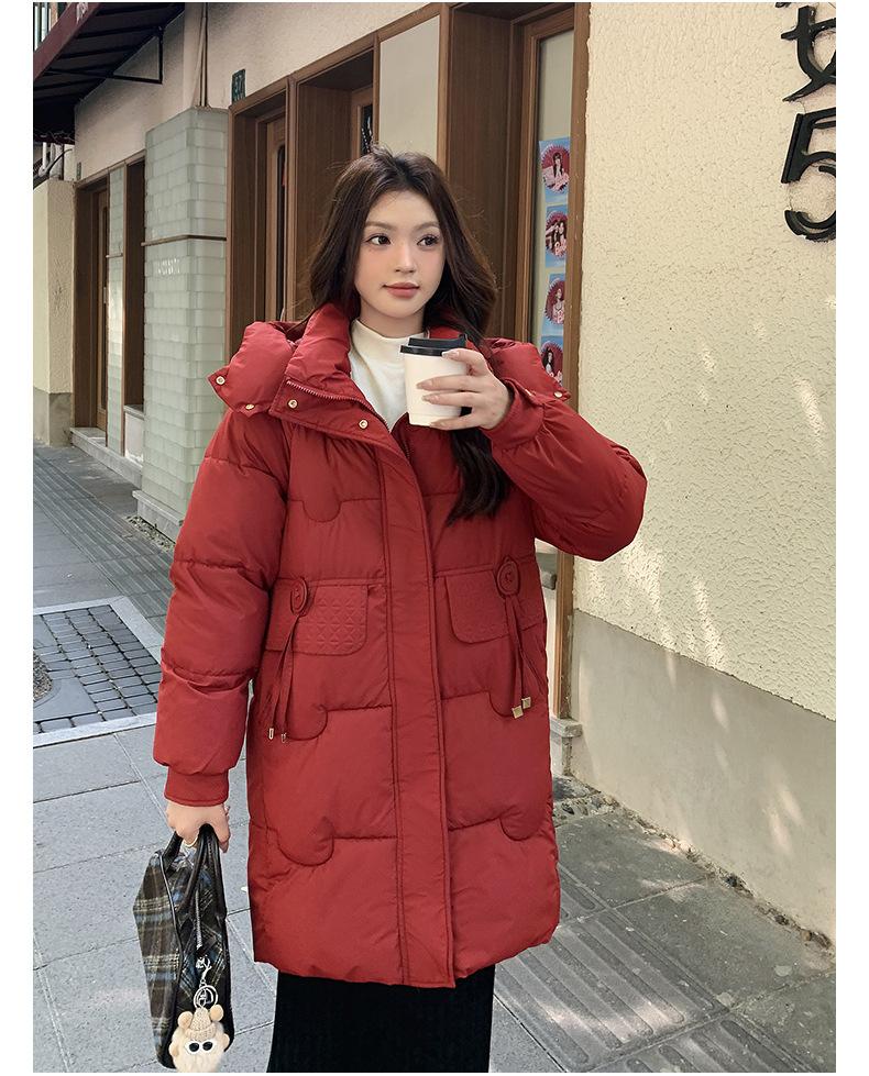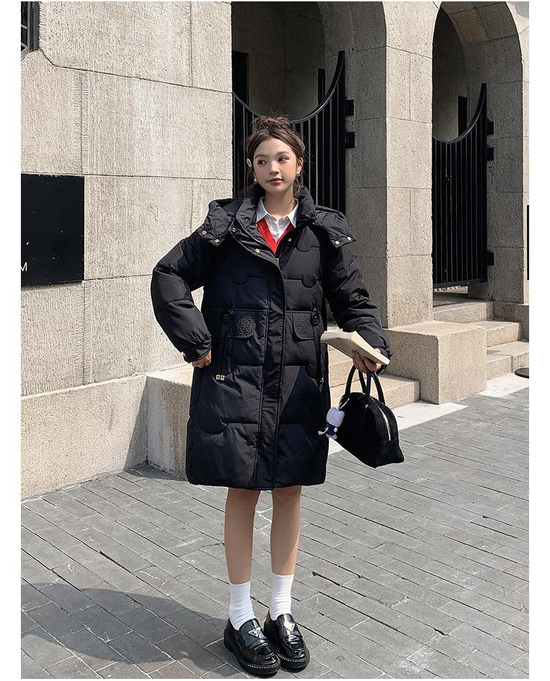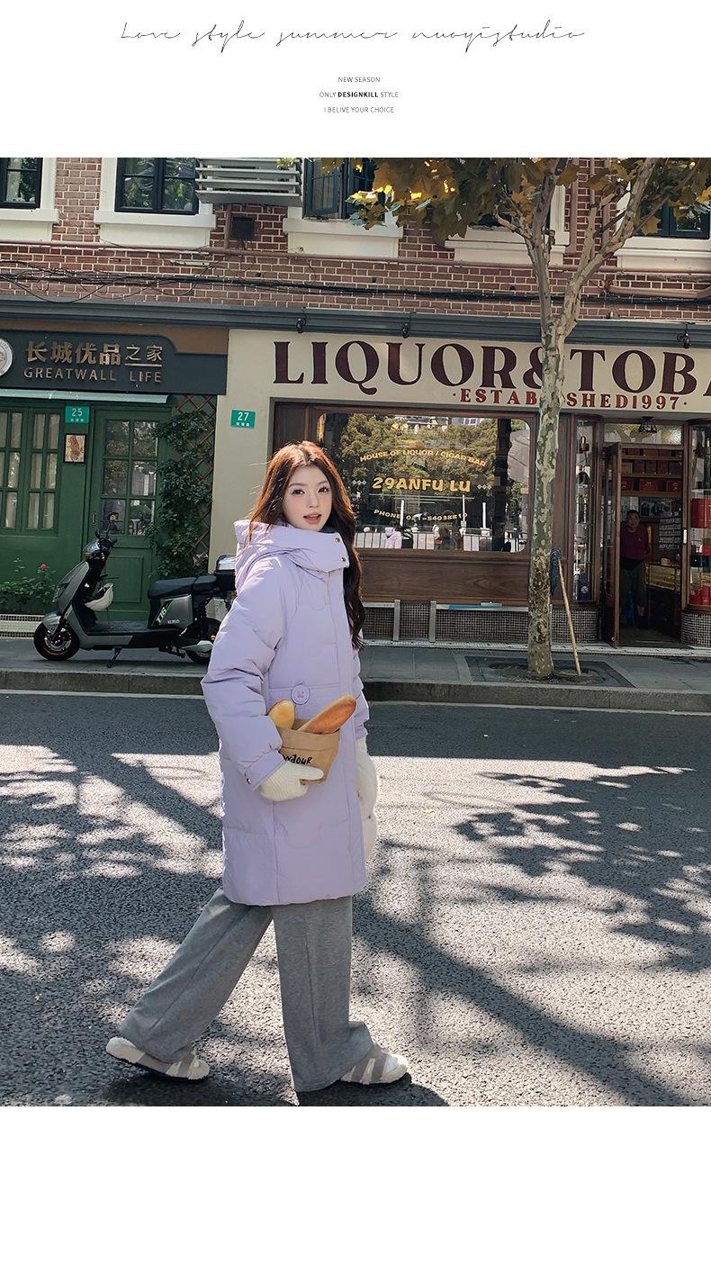 Chaqueta de plumón de estilo coreano para mujer, de longitud media, holgada, ajustada, con capucha, color blanco, para invierno, 2024