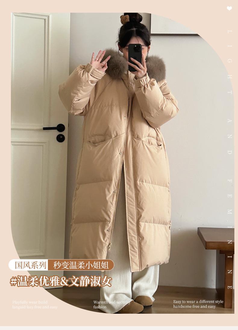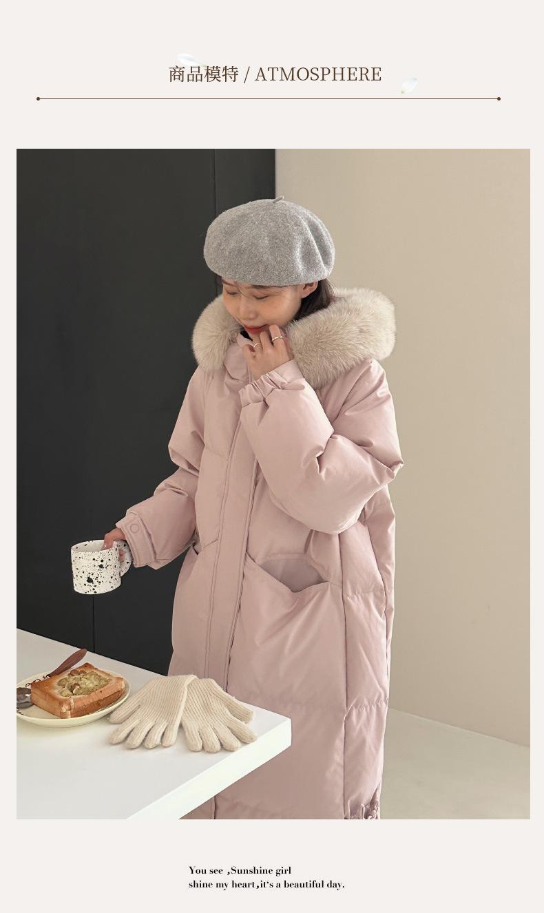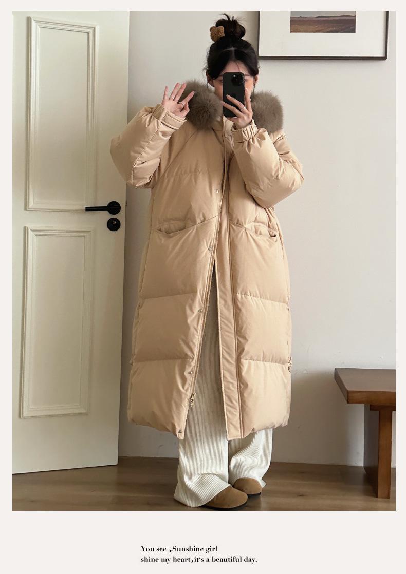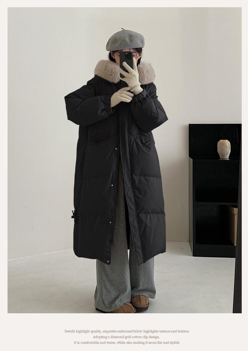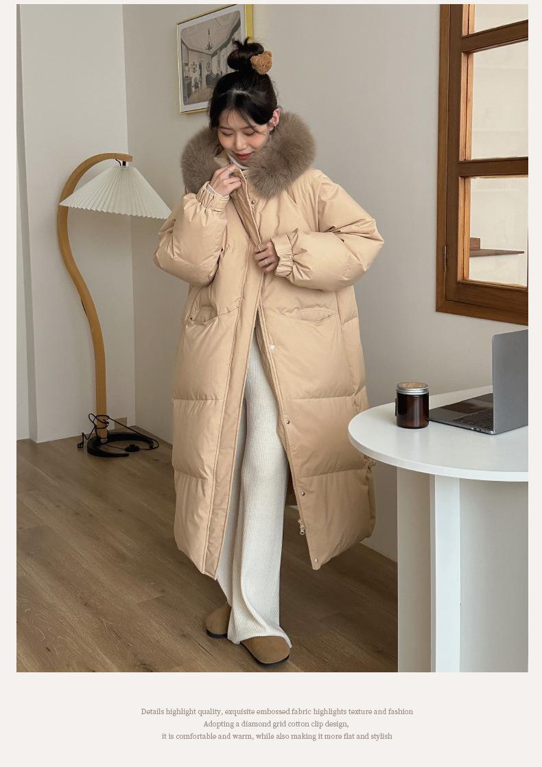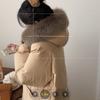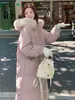 2024 Nuevo Suelto con Capucha Cuello Grande de Piel Chaqueta Acolchada de Algodón para Invierno de Mujer Largo Medio Gruesa Abrigo Acolchado de Algodón Chaqueta Cálida