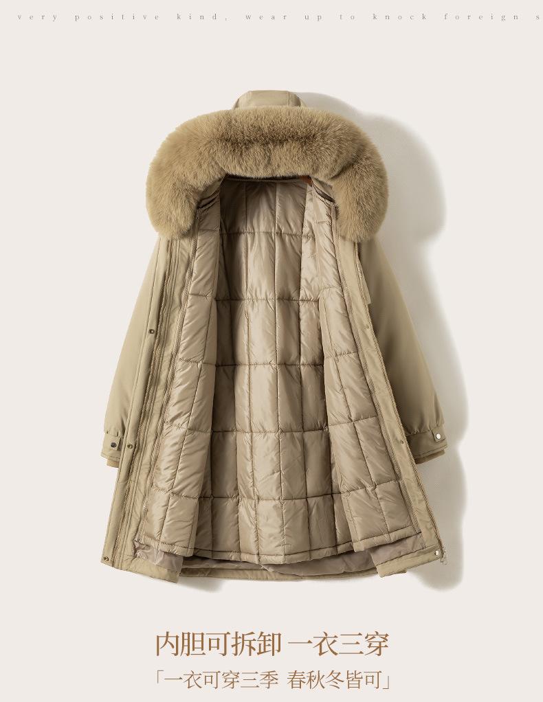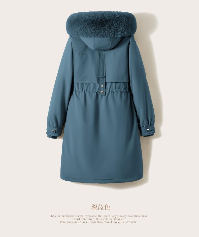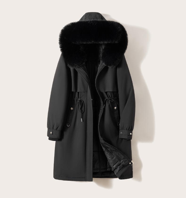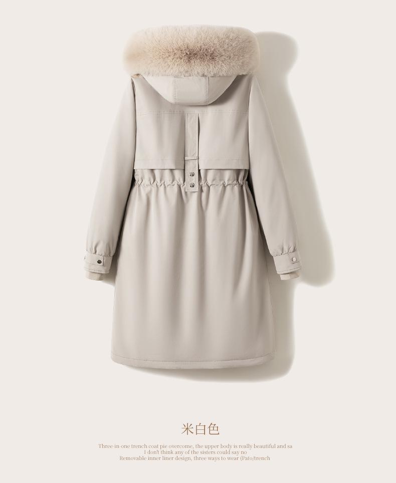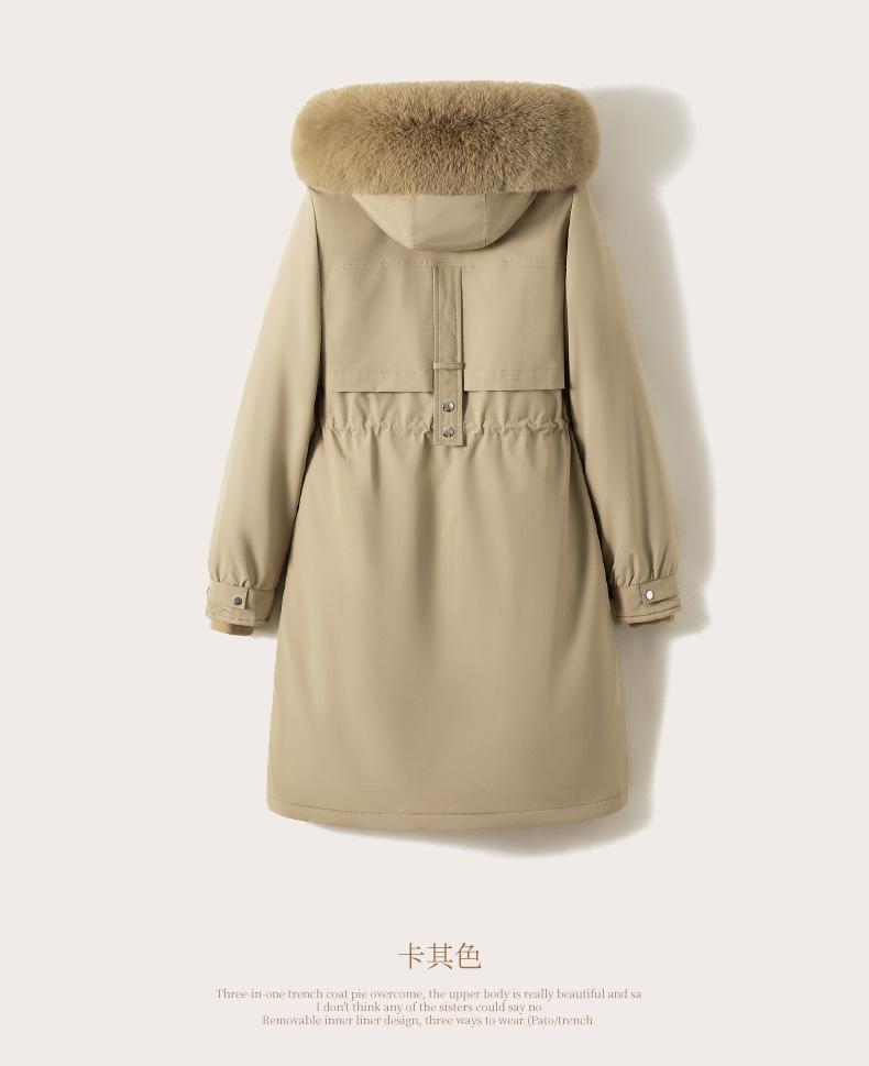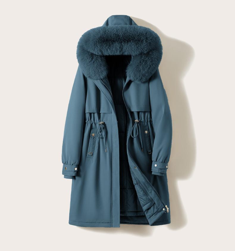 Chaqueta acolchada de algodón de una pieza con piel transfronteriza 2024, nueva parka de invierno gruesa de longitud media para mujer