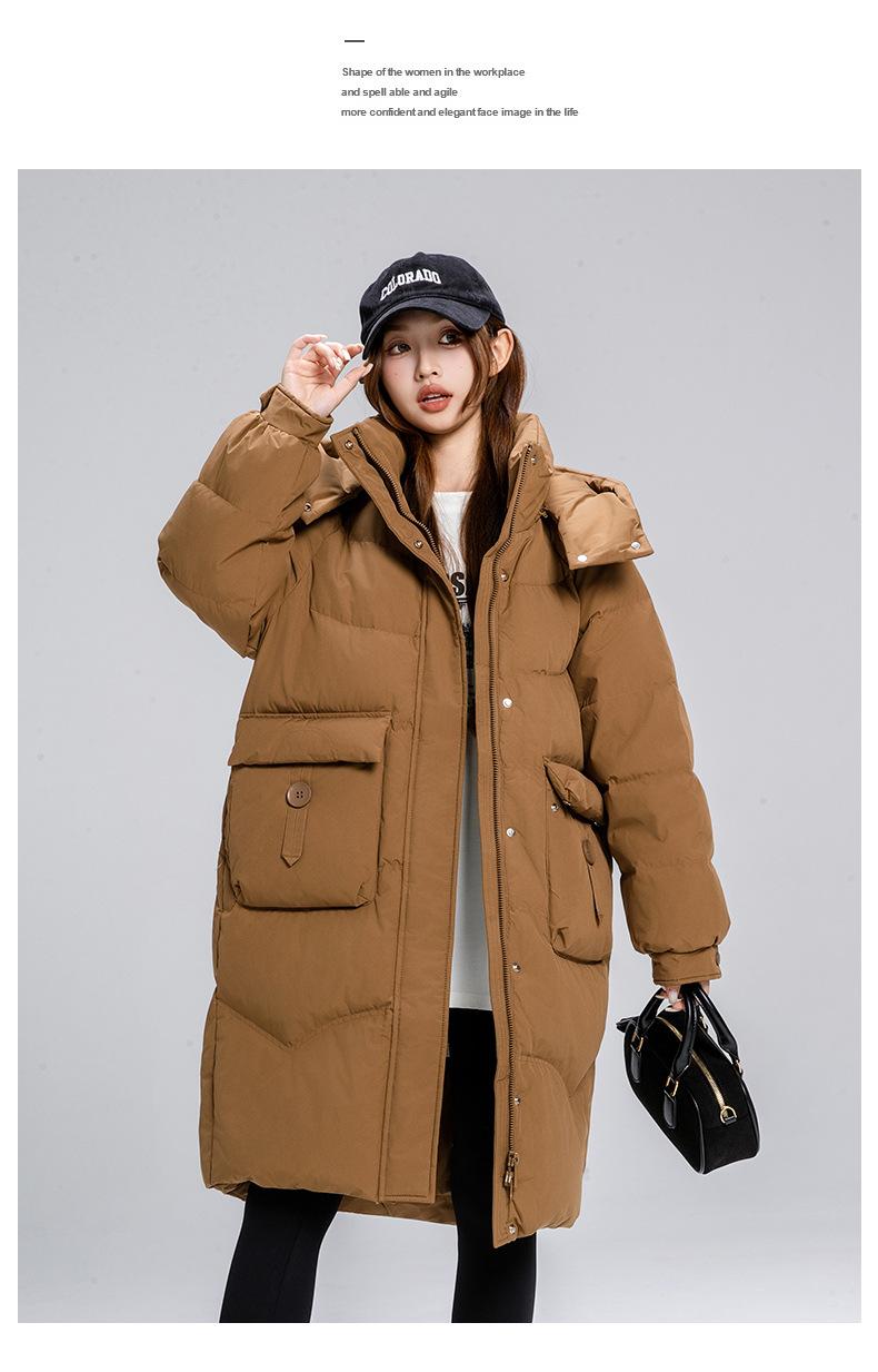 Chaqueta larga acolchada de algodón para mujer, nueva chaqueta de talla grande, ropa de pan con temperamento, abrigo de algodón con capucha suelto transfronterizo para otoño e invierno, 2024