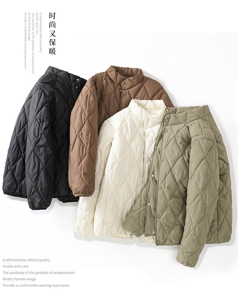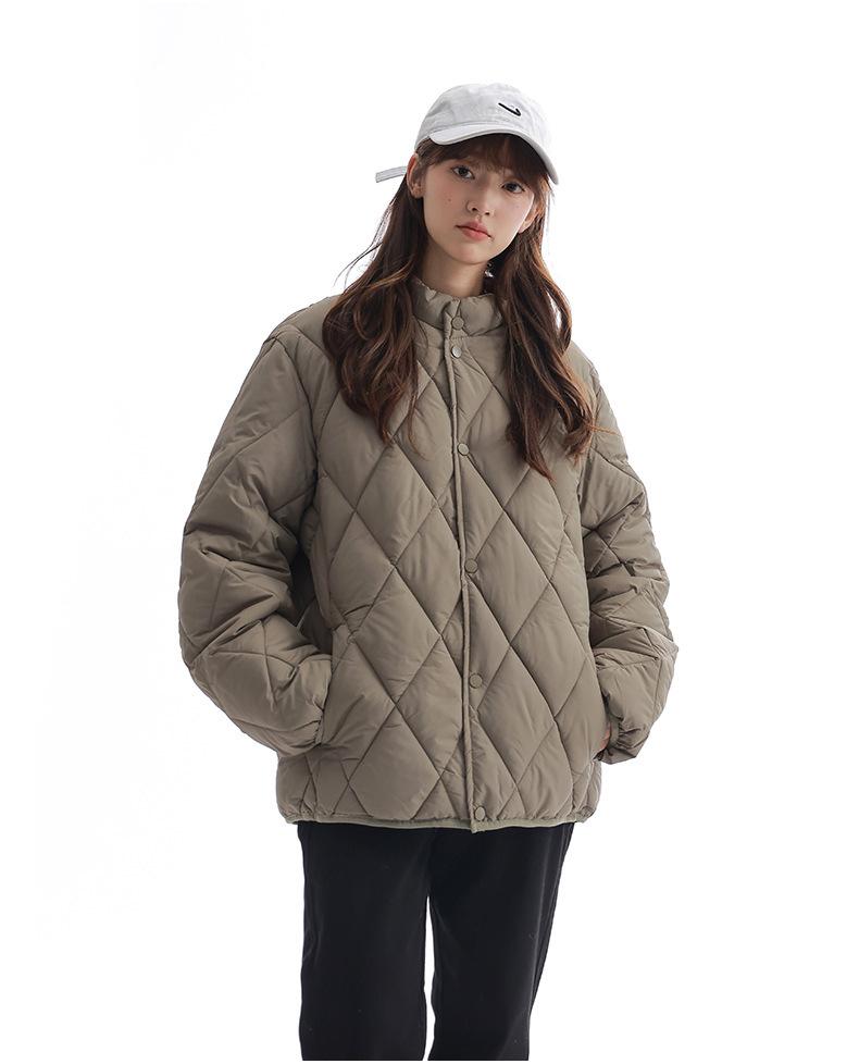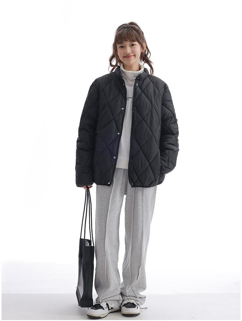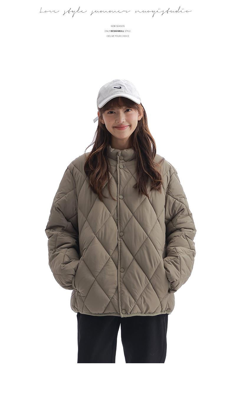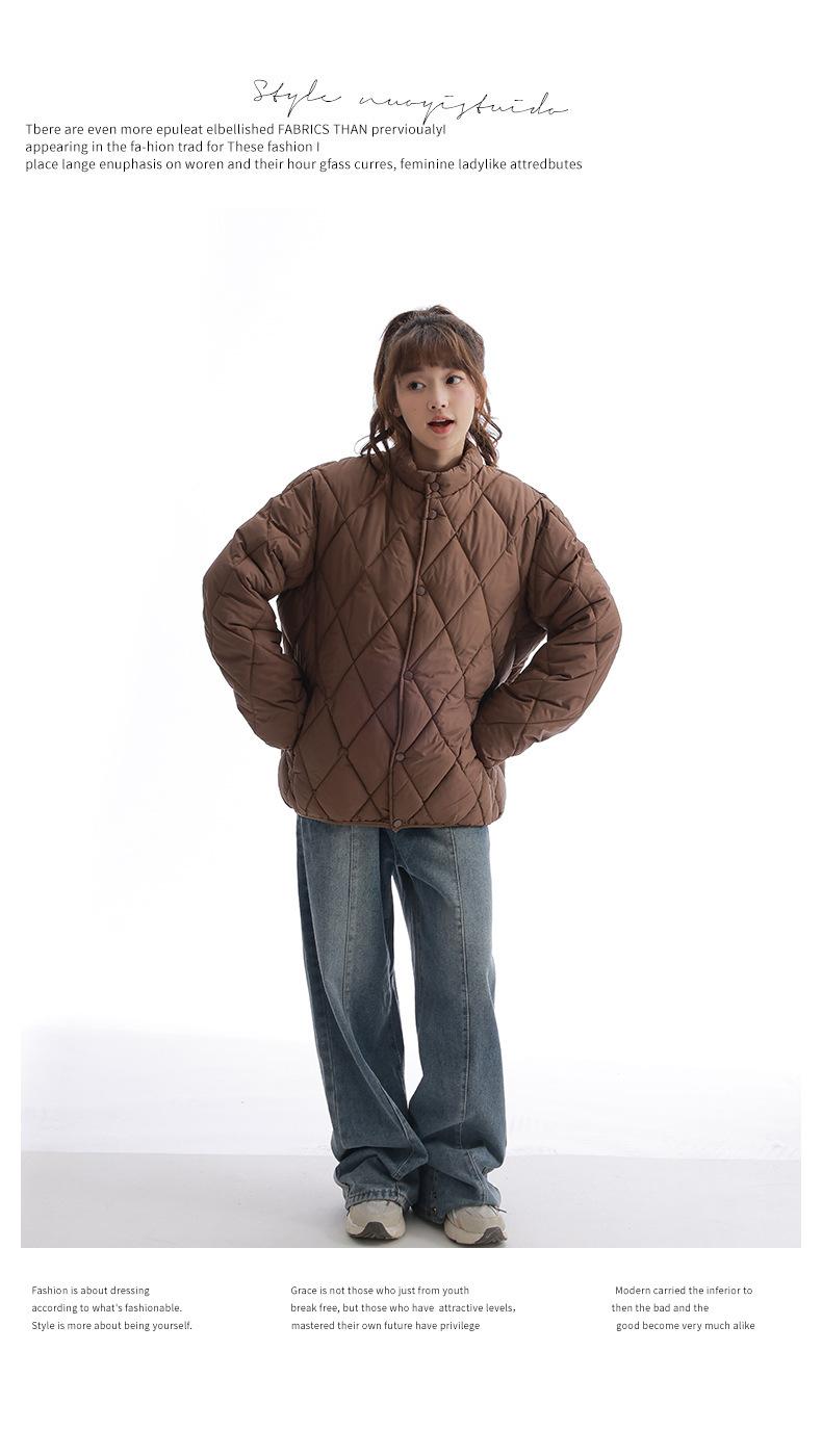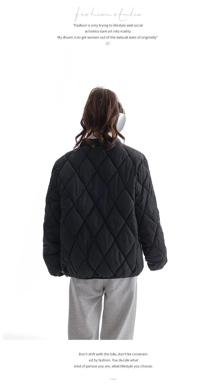Chaqueta de Algodón de Cuello Alto Estilo Coreano Nuevo 2025 para Mujer, Abrigo de Algodón Corto de Invierno con Patrón de Diamantes Transfronterizo de Moda