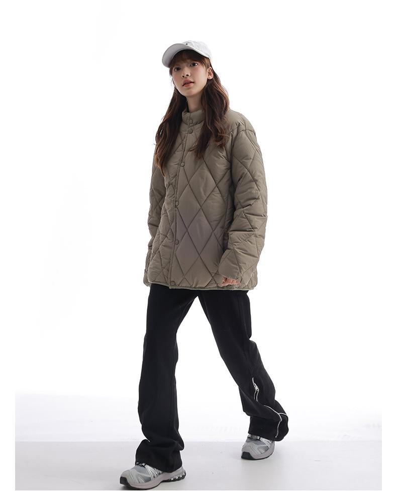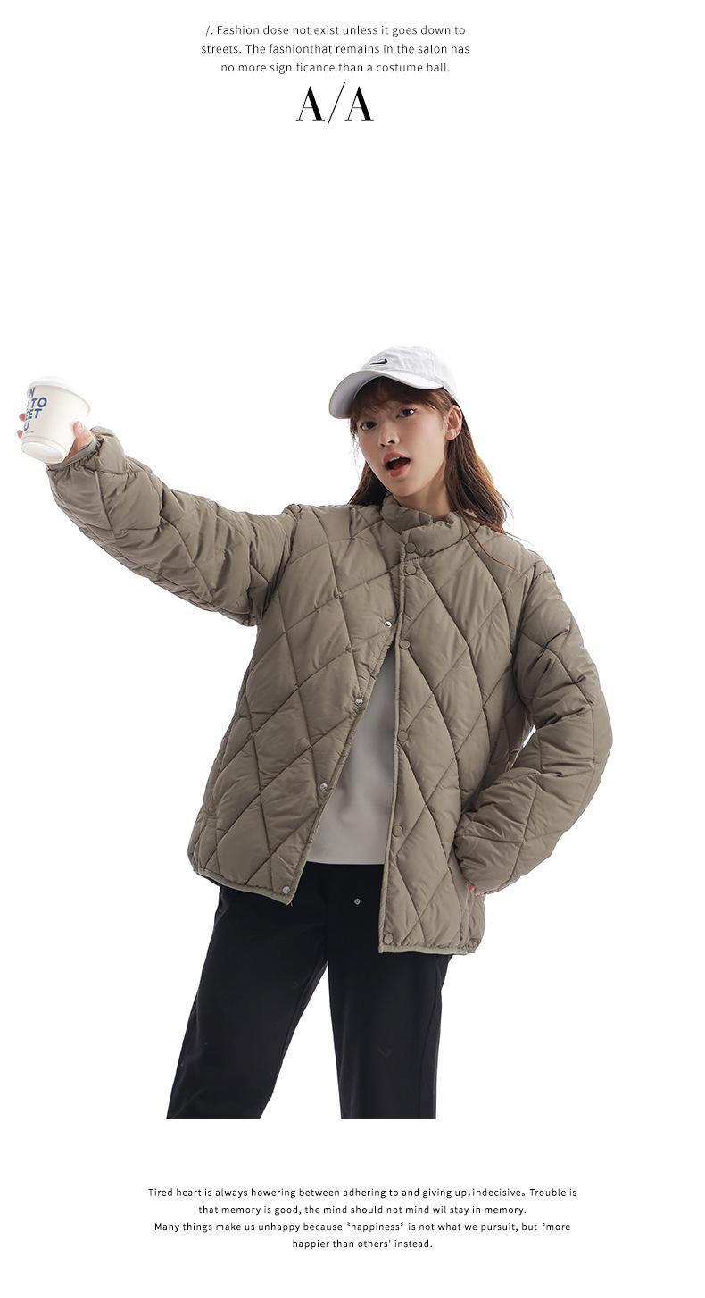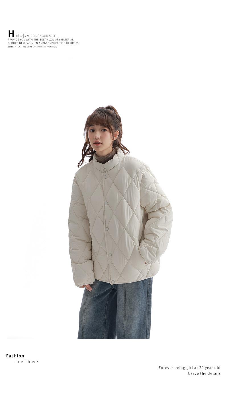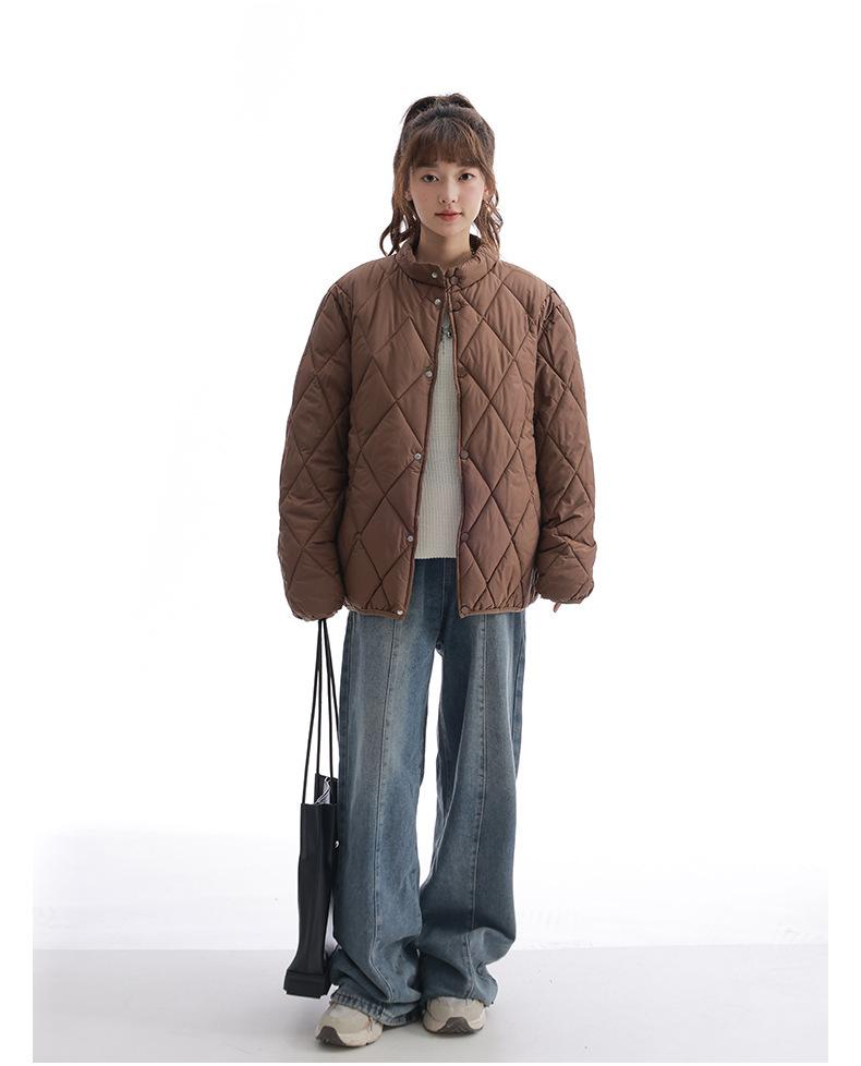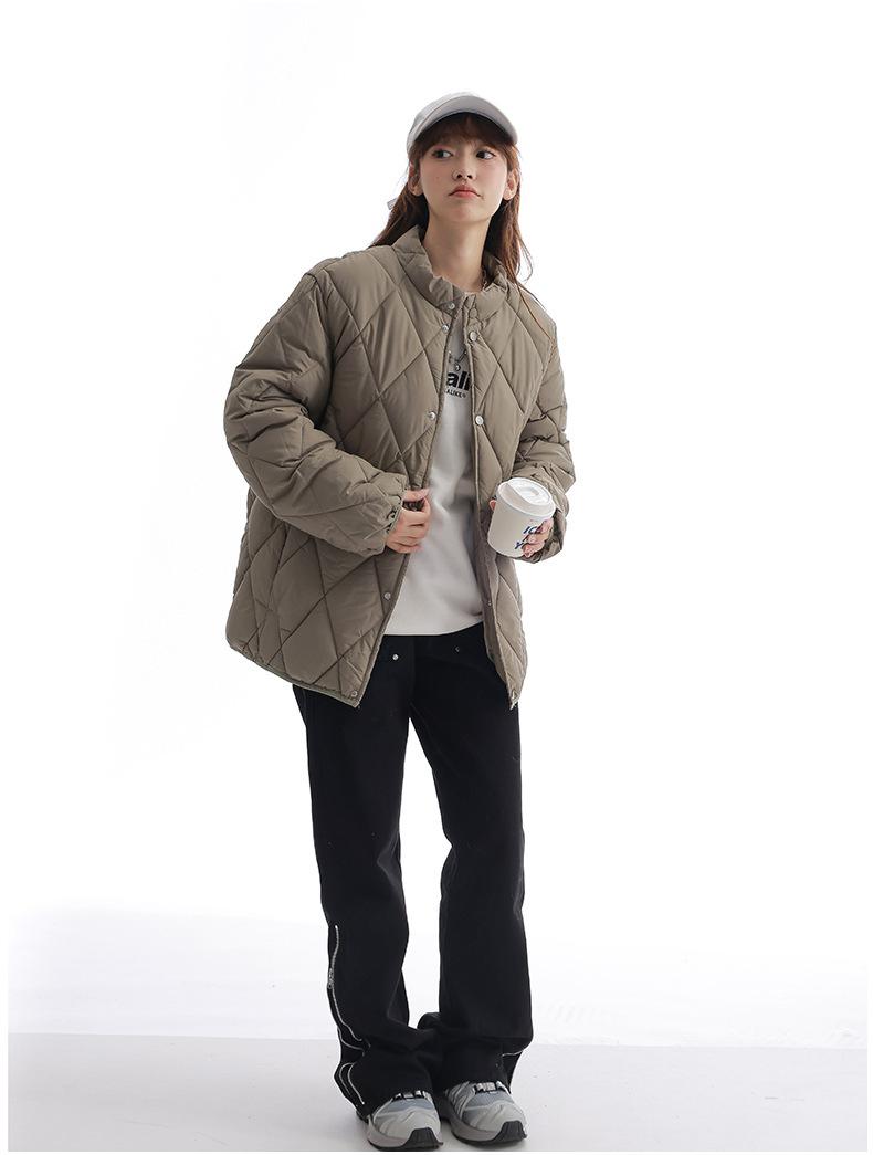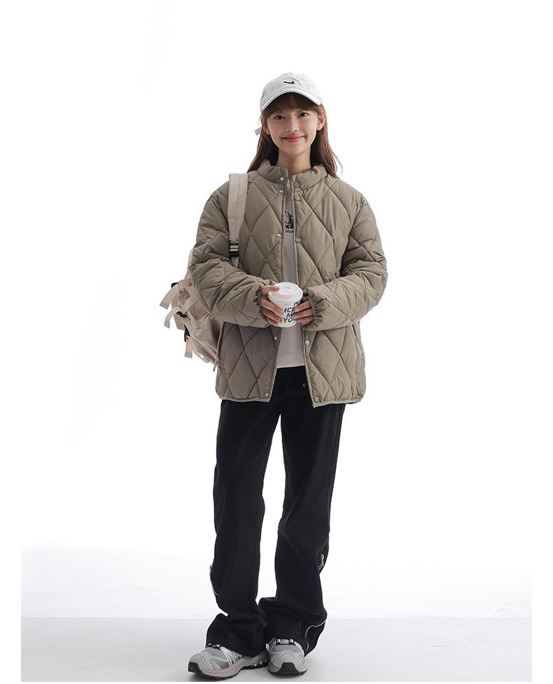 Chaqueta de Algodón de Cuello Alto Estilo Coreano Nuevo 2025 para Mujer, Abrigo de Algodón Corto de Invierno con Patrón de Diamantes Transfronterizo de Moda