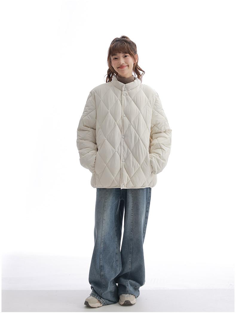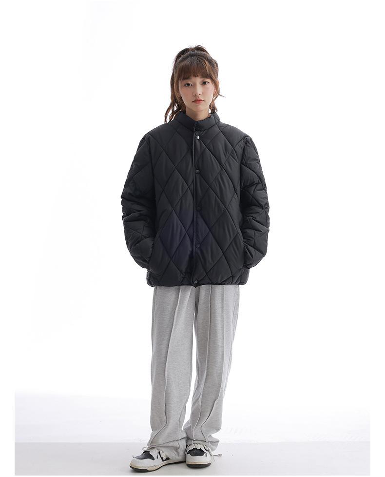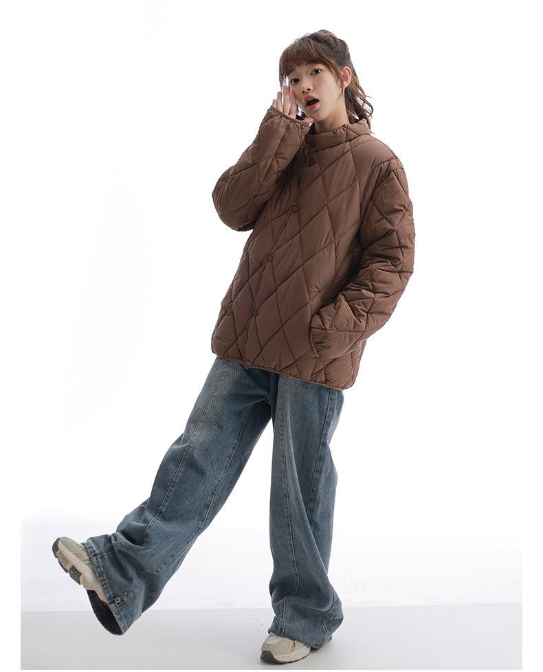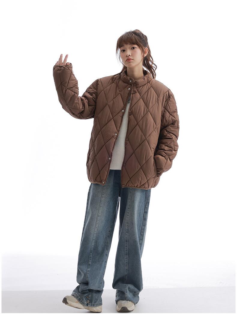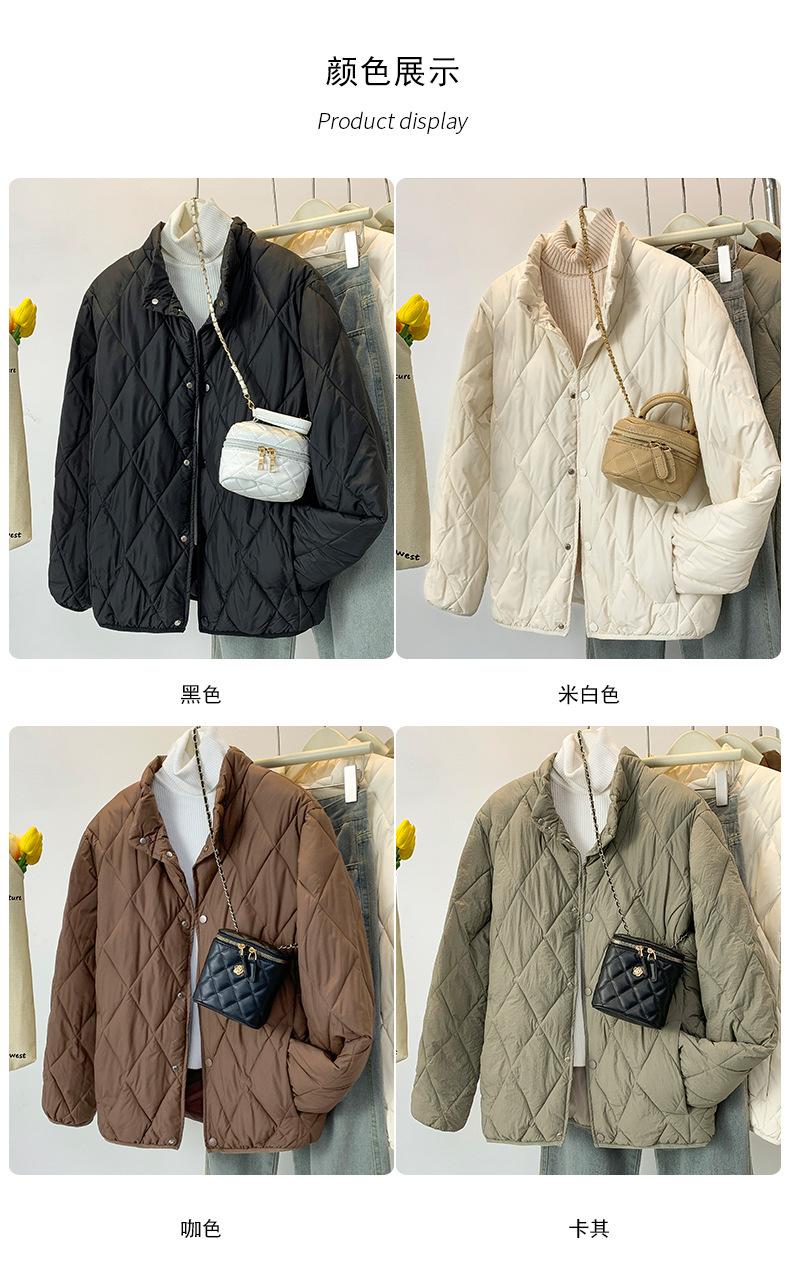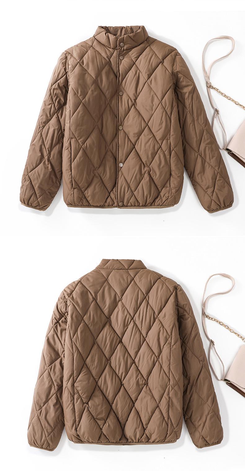 Chaqueta de Algodón de Cuello Alto Estilo Coreano Nuevo 2025 para Mujer, Abrigo de Algodón Corto de Invierno con Patrón de Diamantes Transfronterizo de Moda