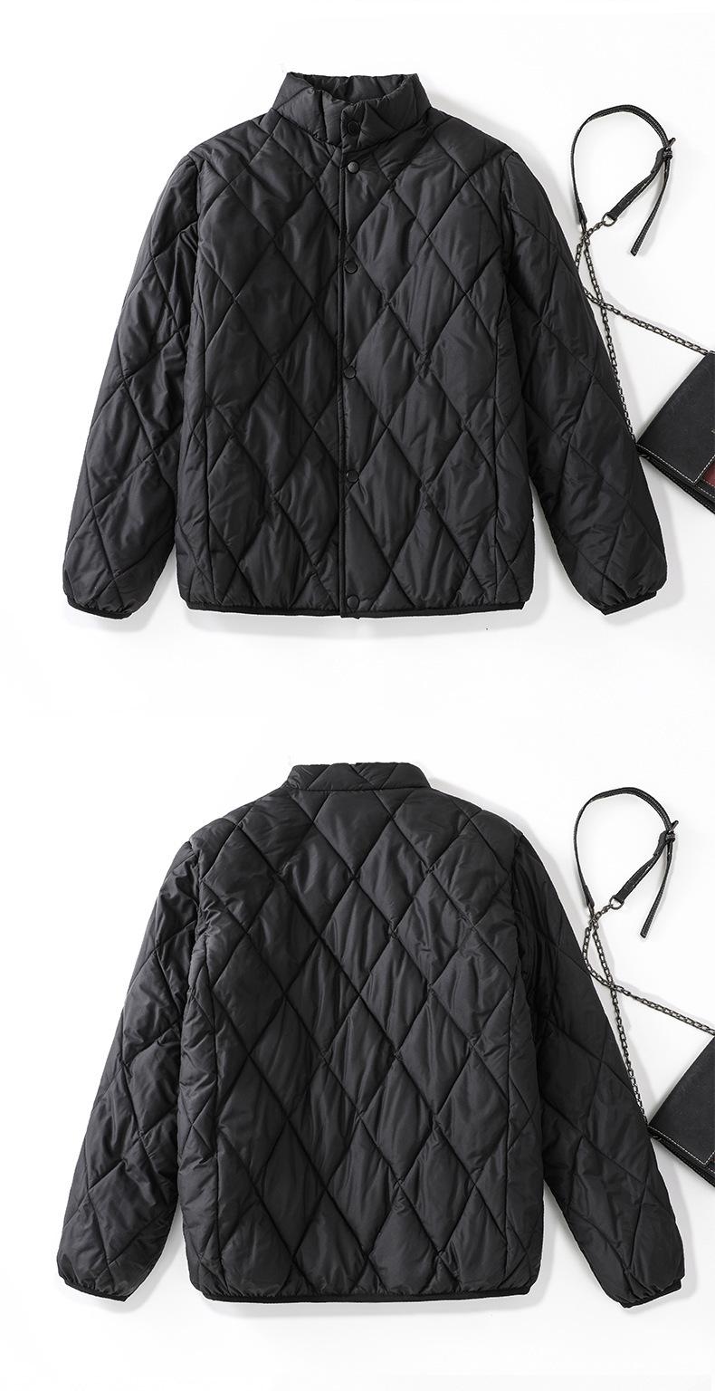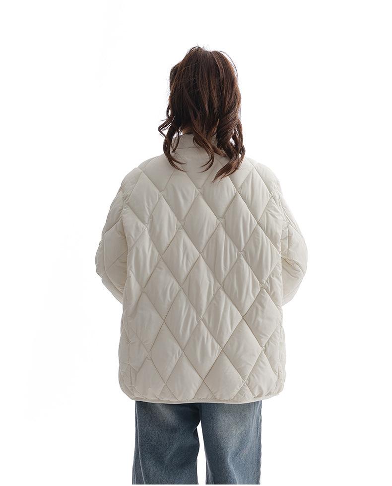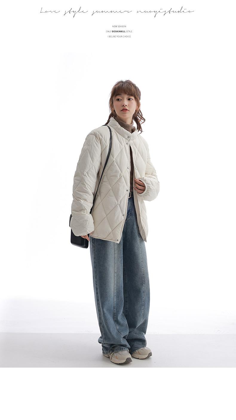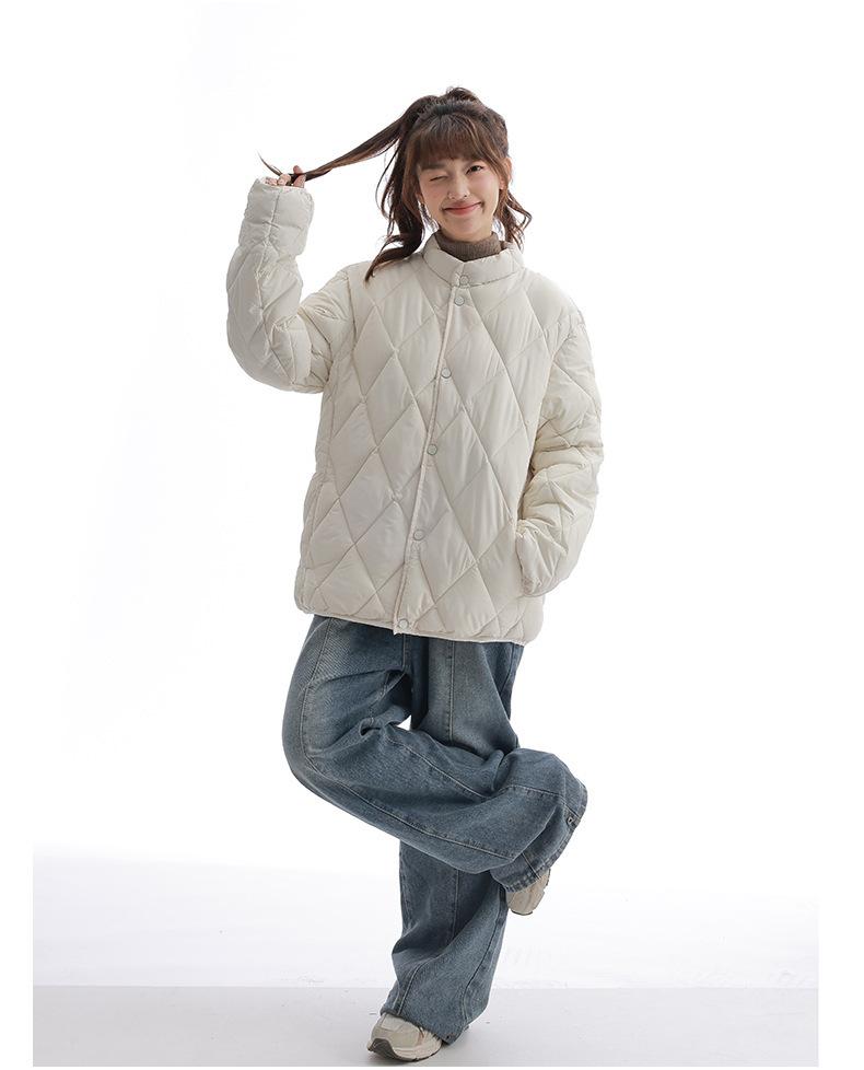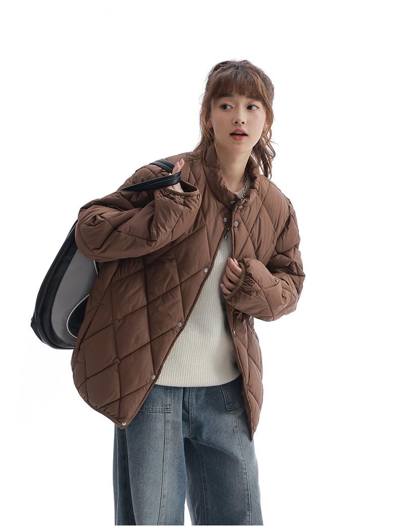 Chaqueta de Algodón de Cuello Alto Estilo Coreano Nuevo 2025 para Mujer, Abrigo de Algodón Corto de Invierno con Patrón de Diamantes Transfronterizo de Moda