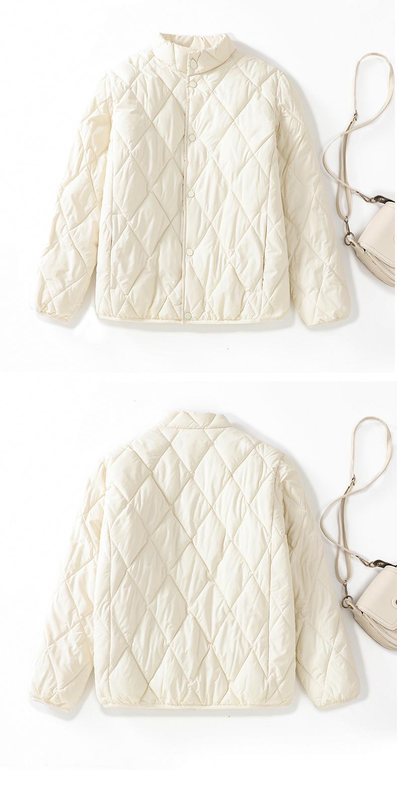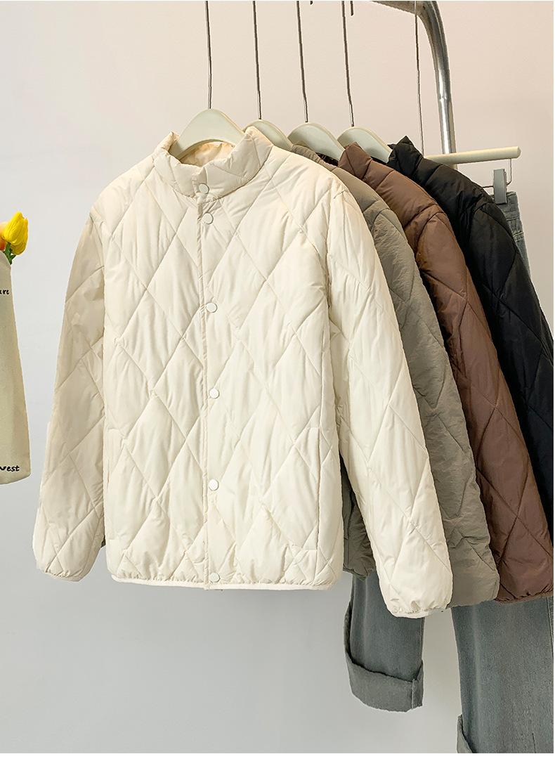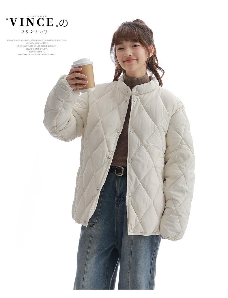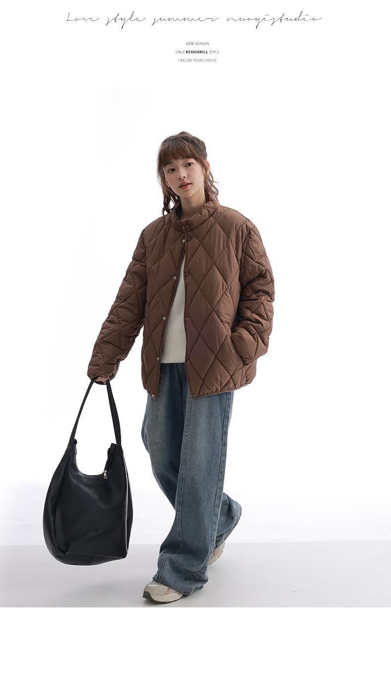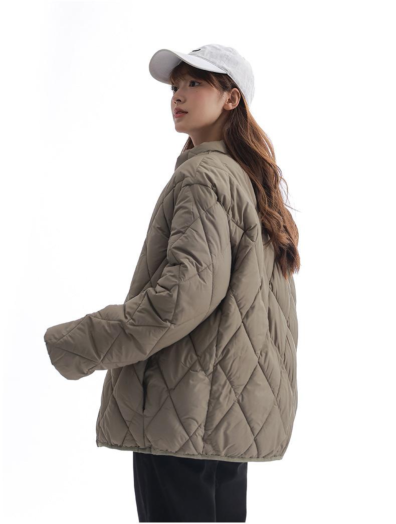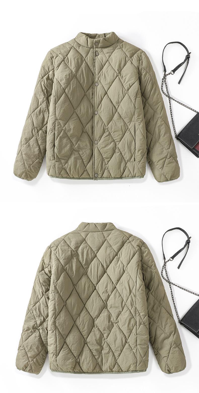 Chaqueta de Algodón de Cuello Alto Estilo Coreano Nuevo 2025 para Mujer, Abrigo de Algodón Corto de Invierno con Patrón de Diamantes Transfronterizo de Moda