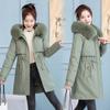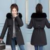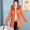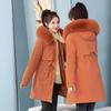 Chaqueta acolchada de algodón para mujer, longitud media, transfronteriza 2024, nueva ropa de invierno, cuello grande de lana, abrigo acolchado de algodón, parka holgada engrosada, ropa a prueba de frío