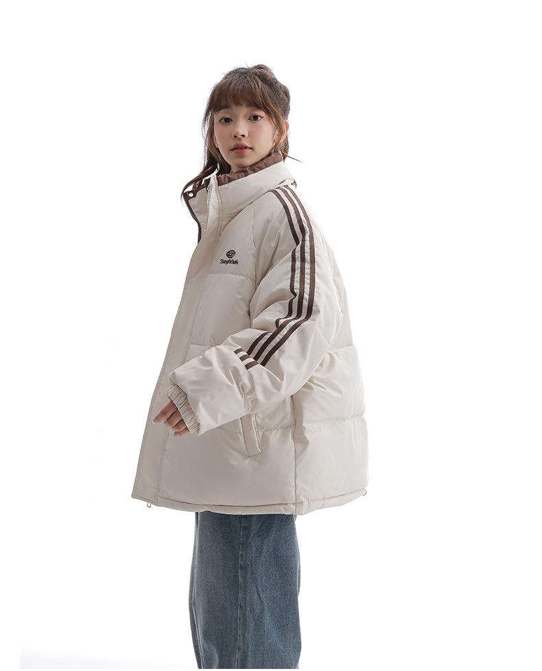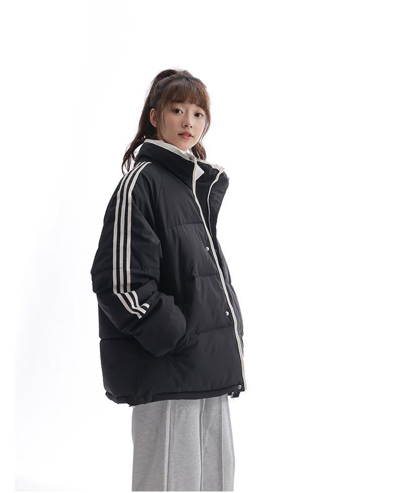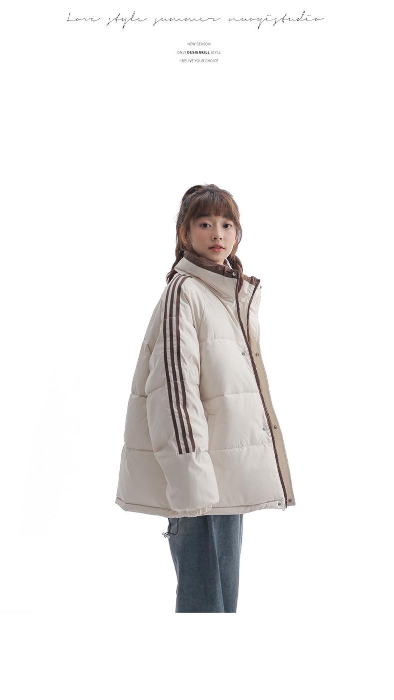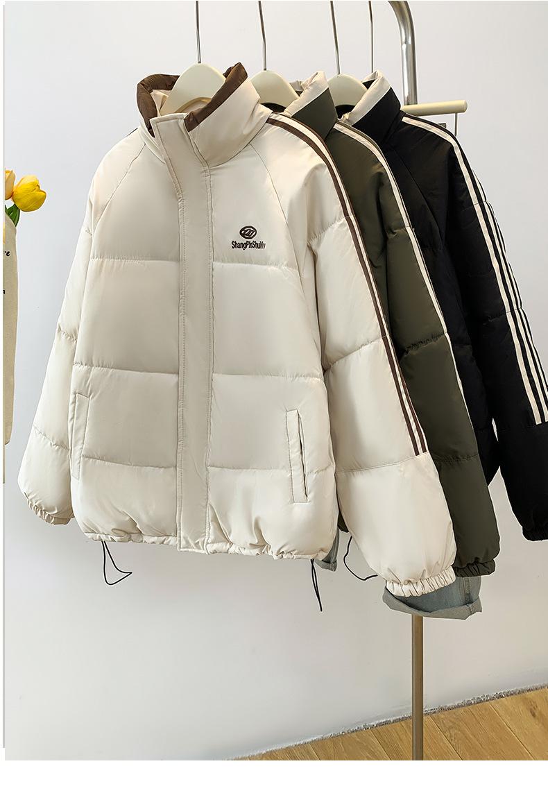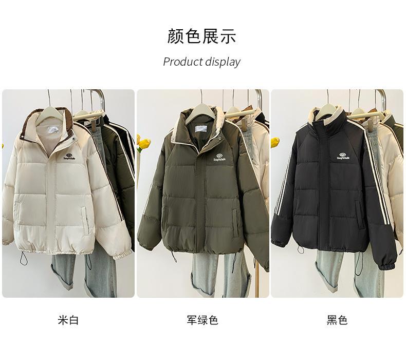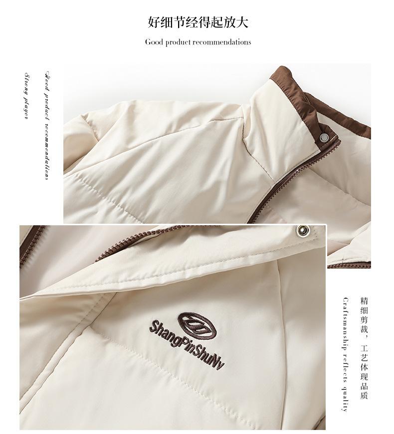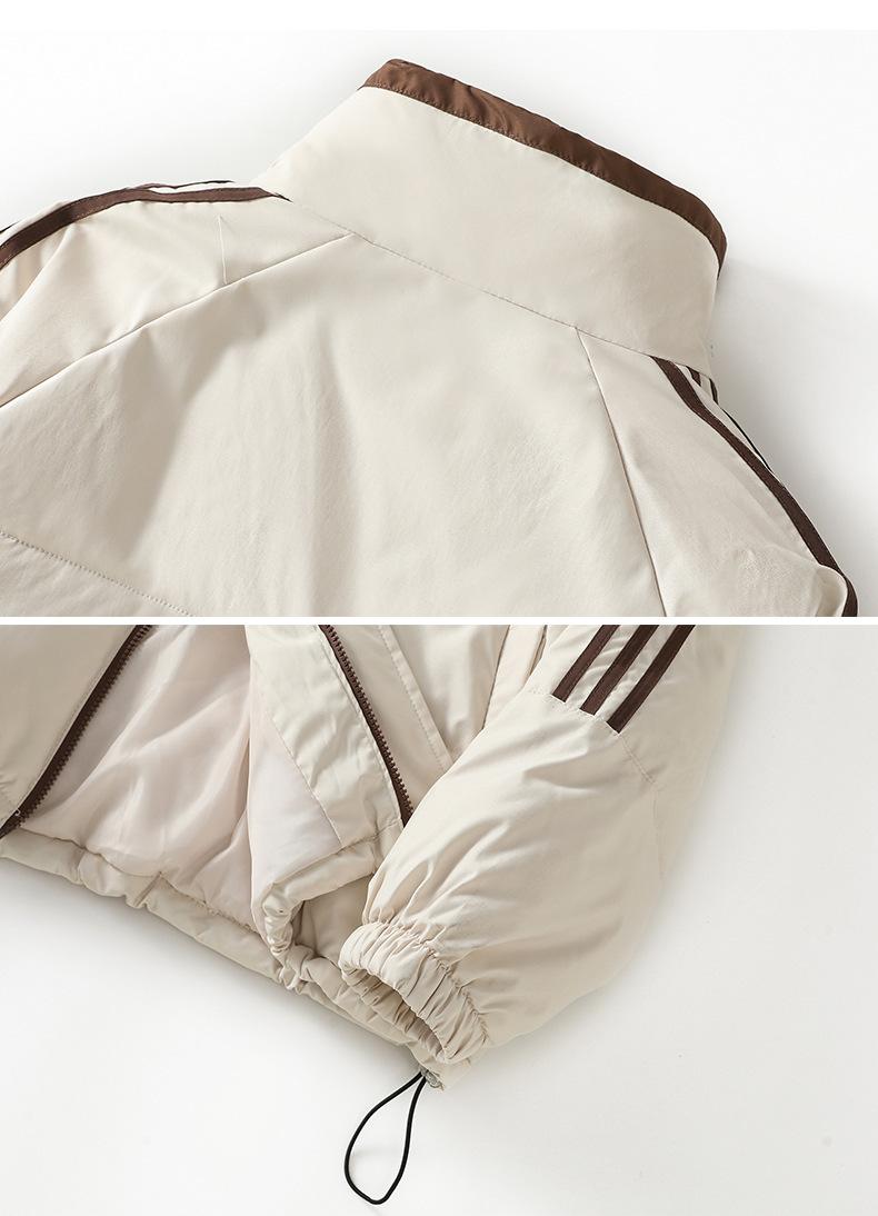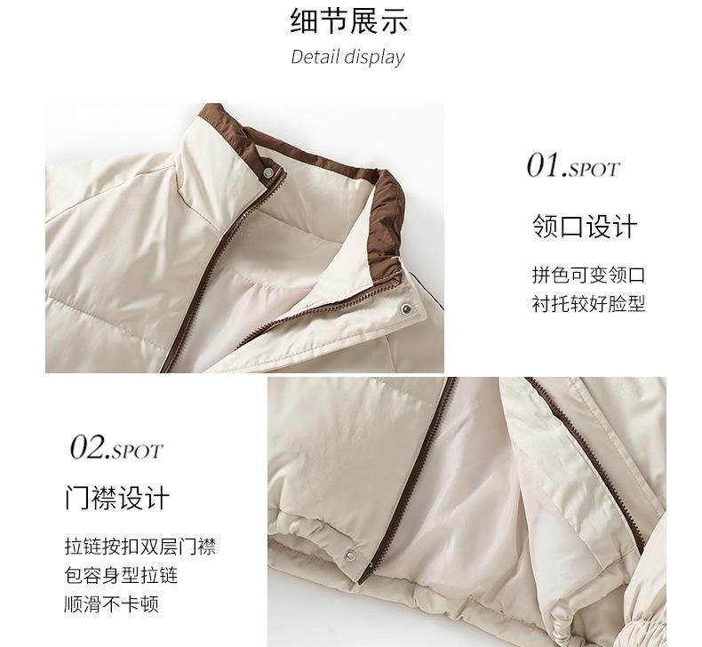 Abrigo informal acolchado de algodón con cuello alto para mujer, chaqueta corta holgada de invierno con contraste de color para jóvenes, 2024