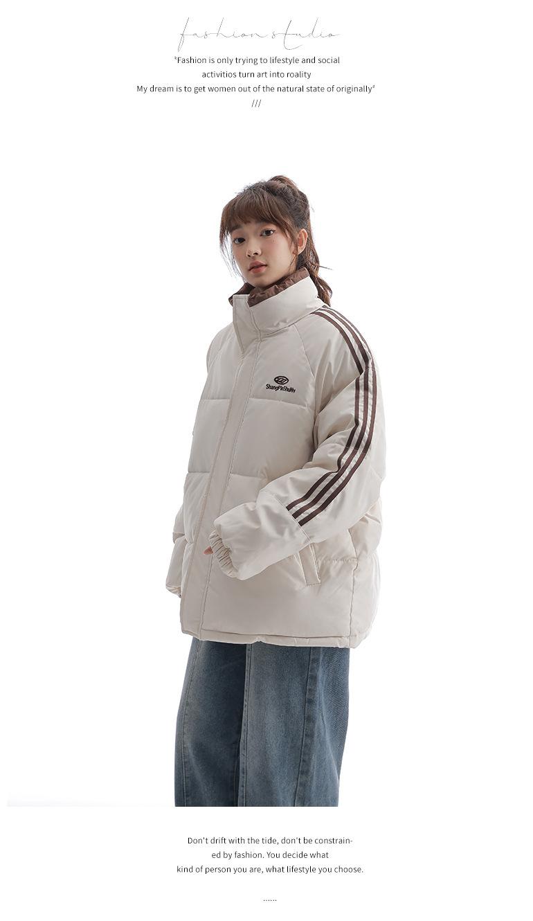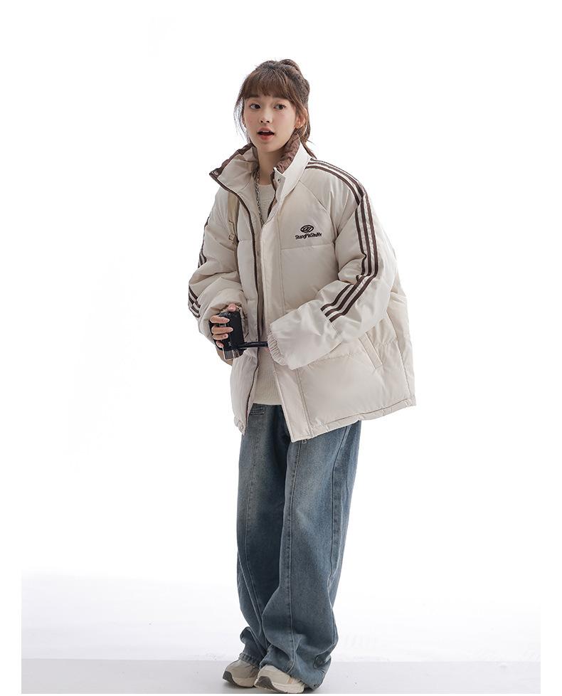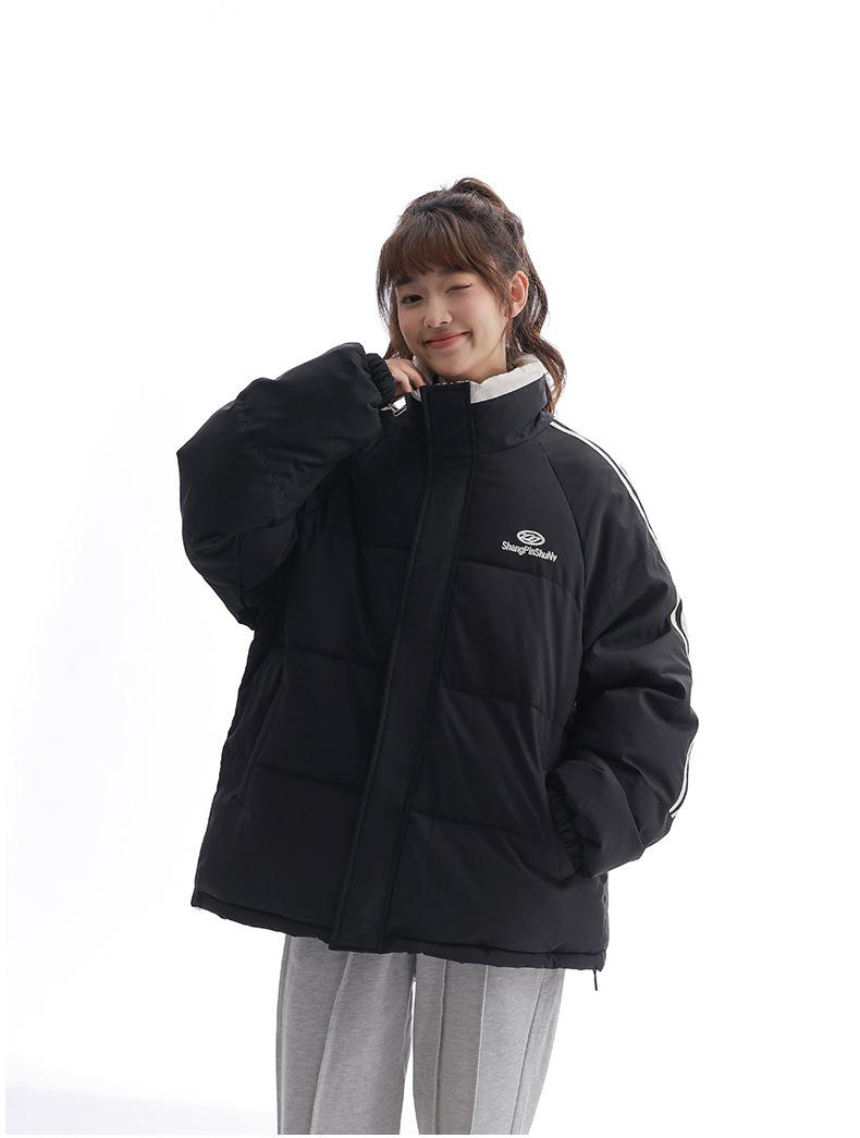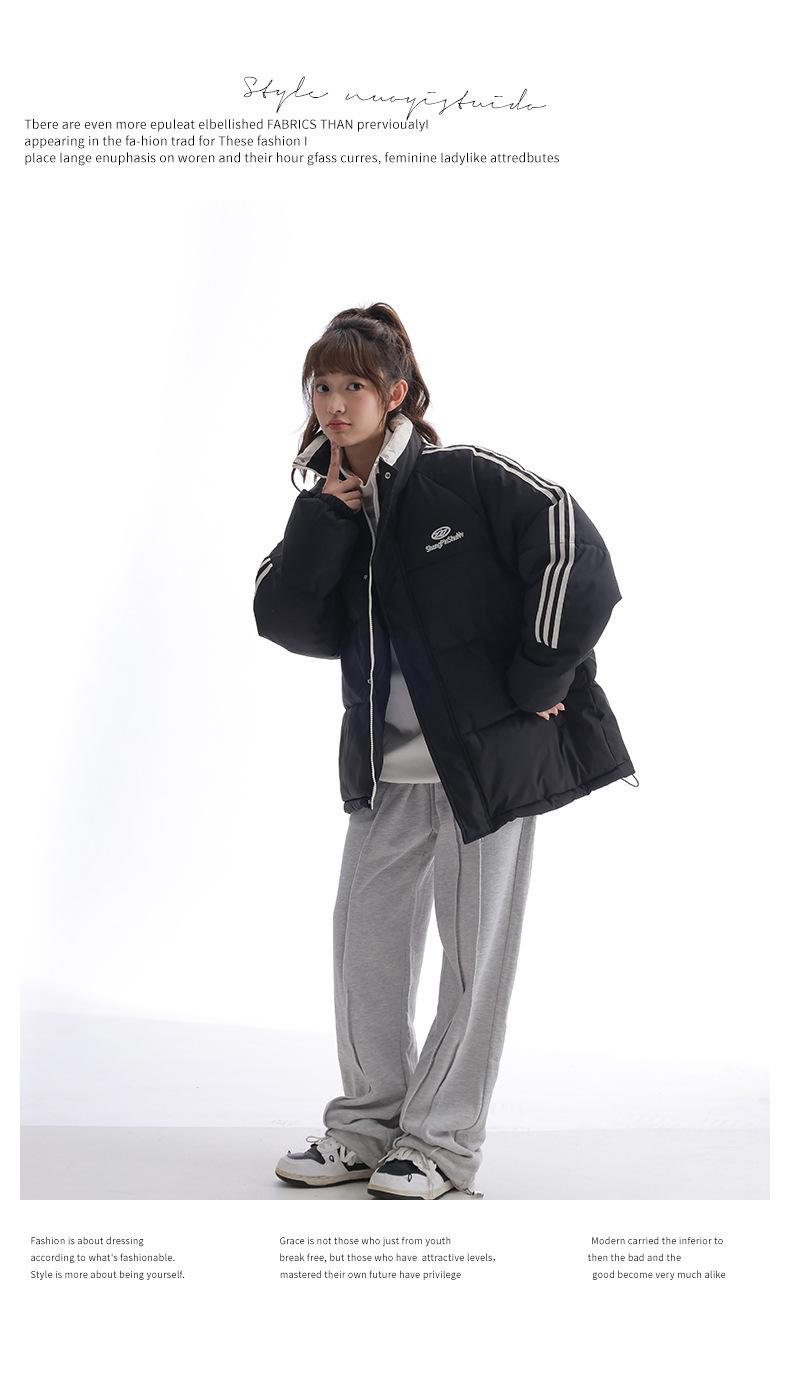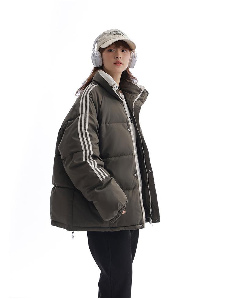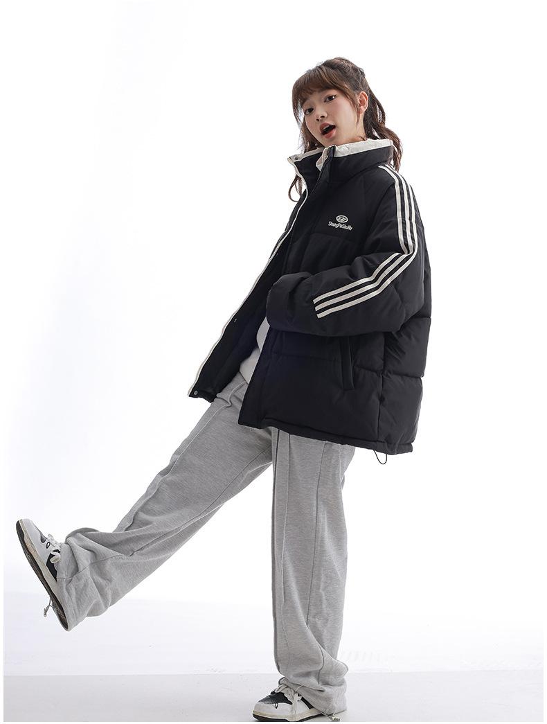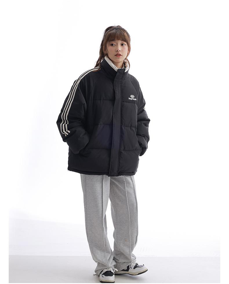 Abrigo informal acolchado de algodón con cuello alto para mujer, chaqueta corta holgada de invierno con contraste de color para jóvenes, 2024