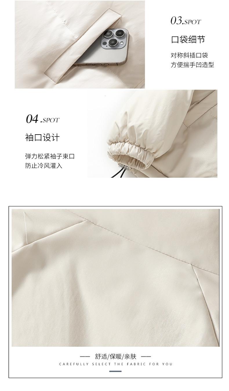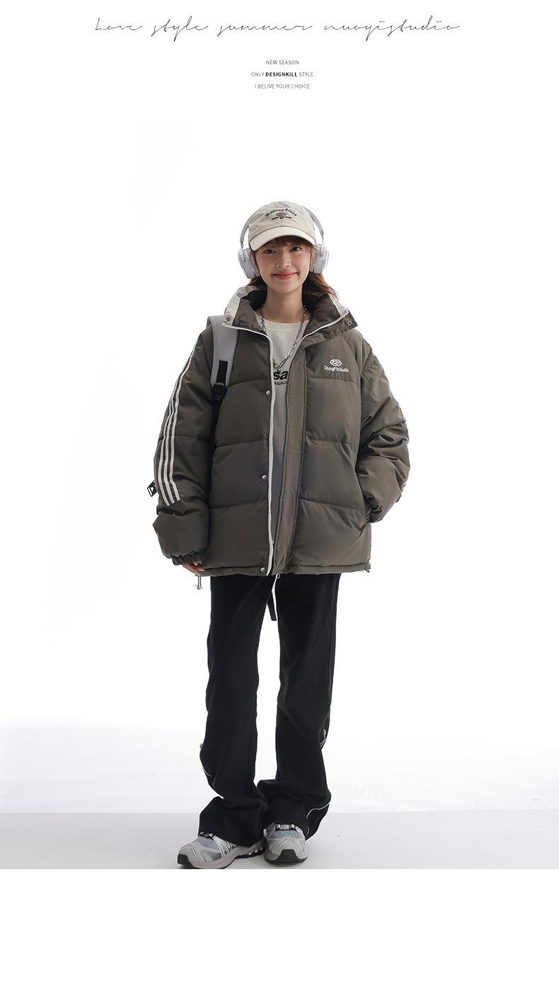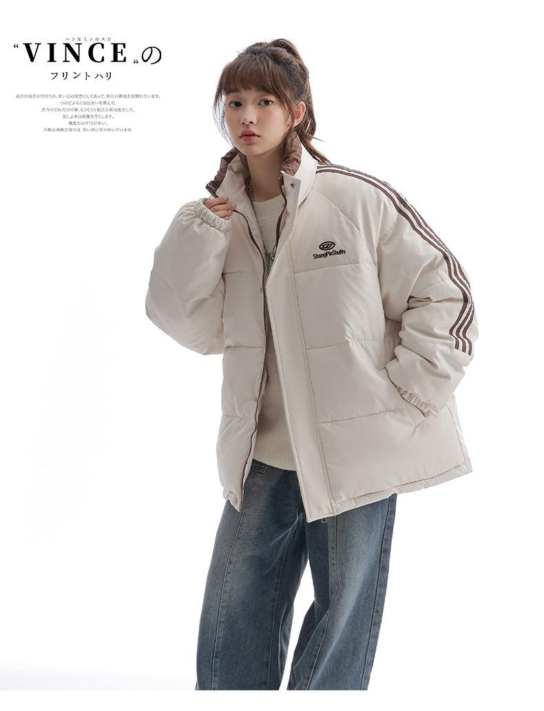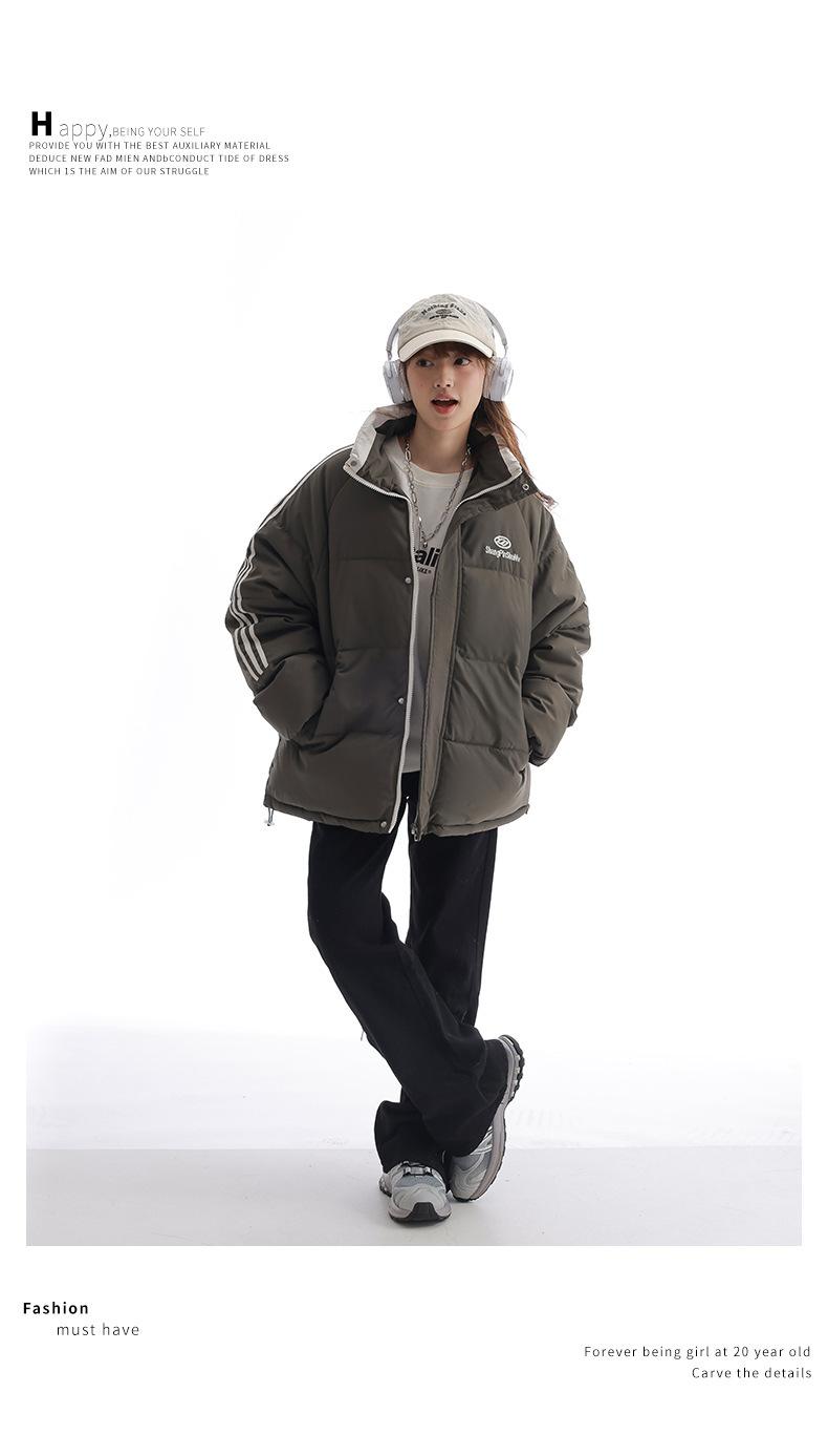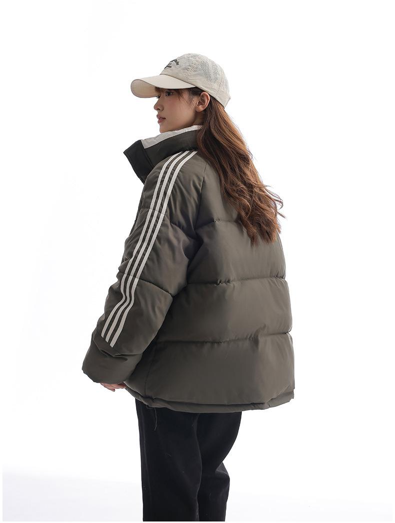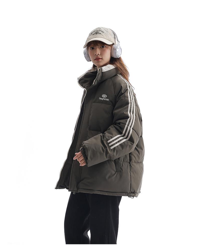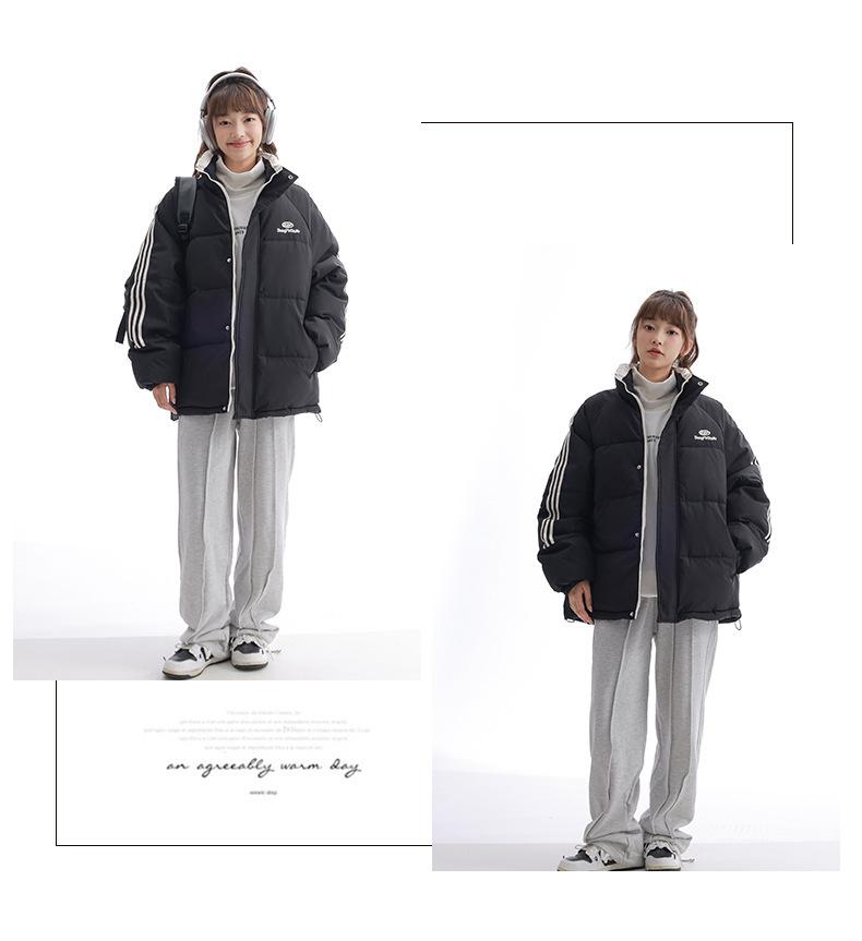 Abrigo informal acolchado de algodón con cuello alto para mujer, chaqueta corta holgada de invierno con contraste de color para jóvenes, 2024