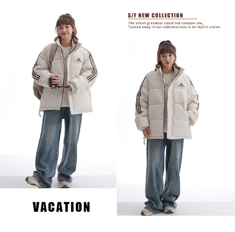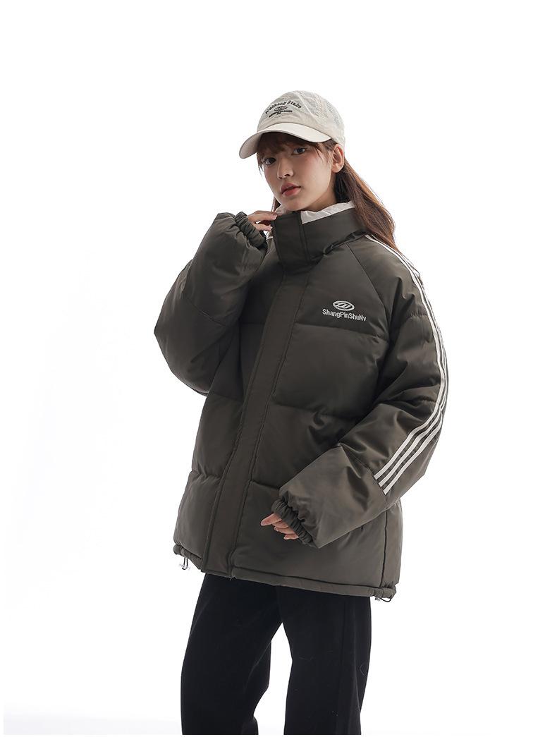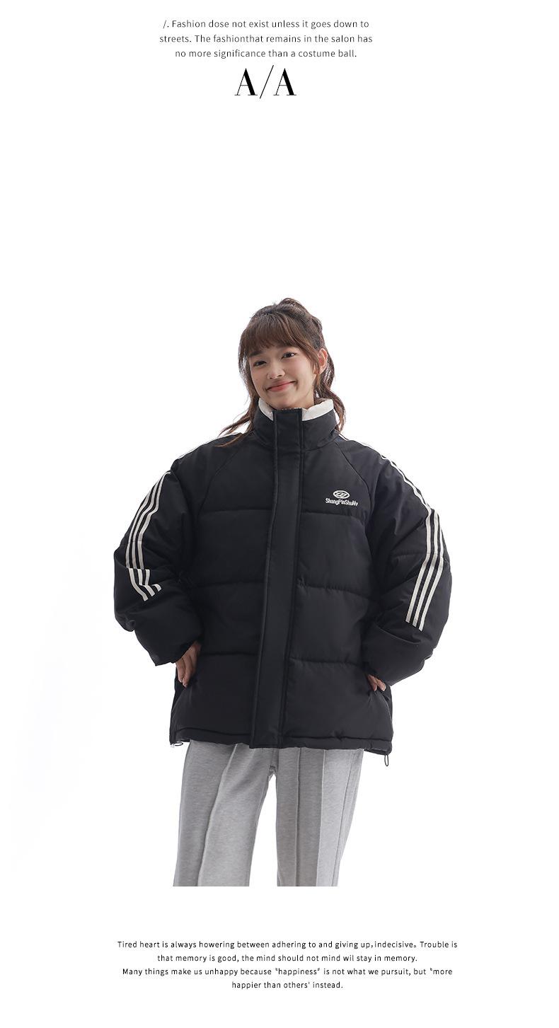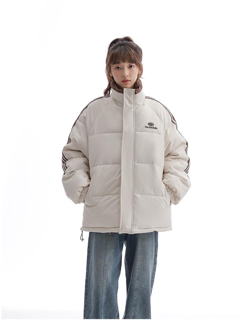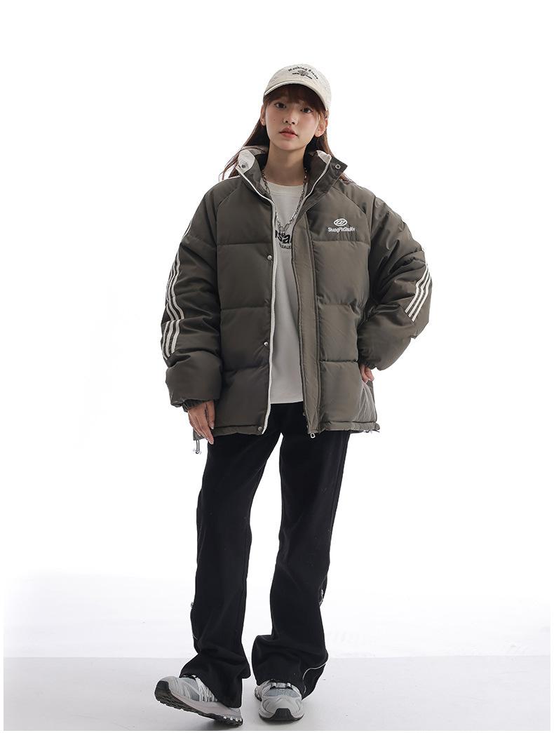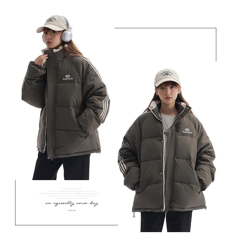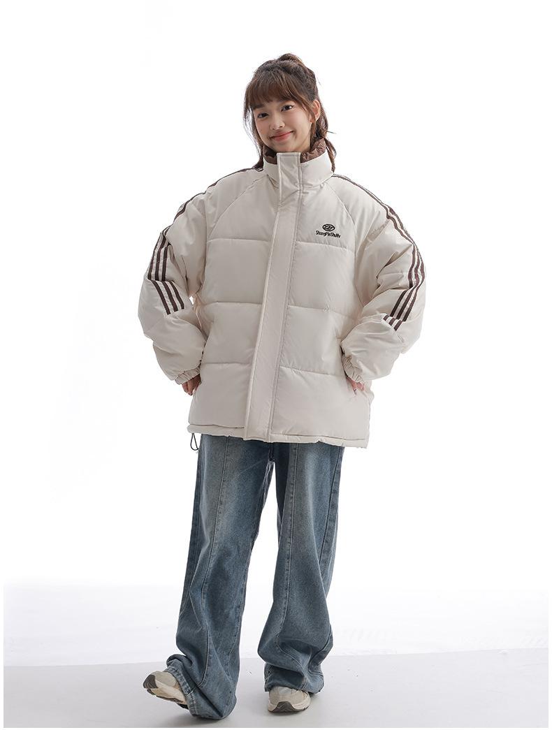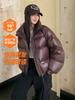 Abrigo informal acolchado de algodón con cuello alto para mujer, chaqueta corta holgada de invierno con contraste de color para jóvenes, 2024