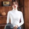 Camisa de terciopelo de doble cara con cuello medio alto para mujer, otoño e invierno, nueva camiseta de manga larga elegante, ajustada y gruesa de talla grande
