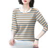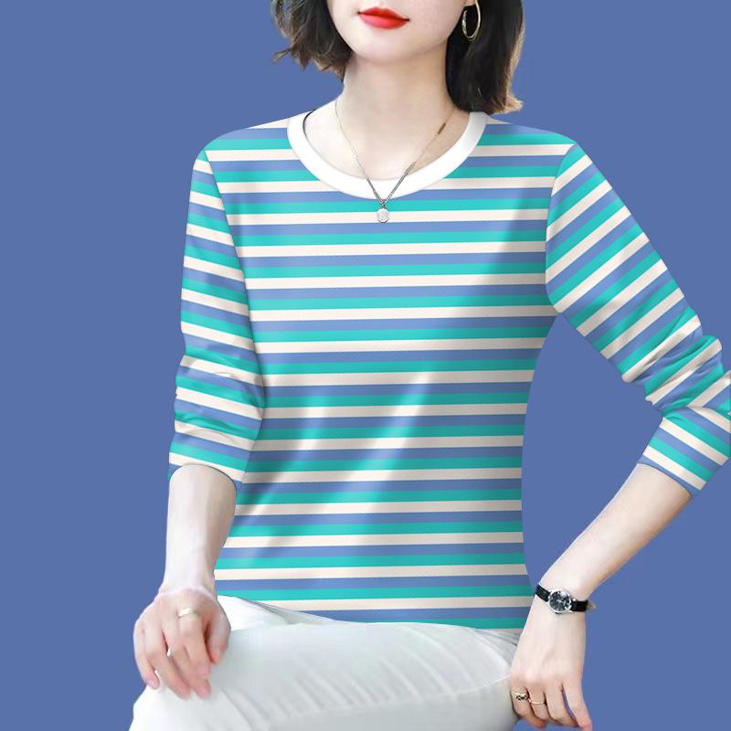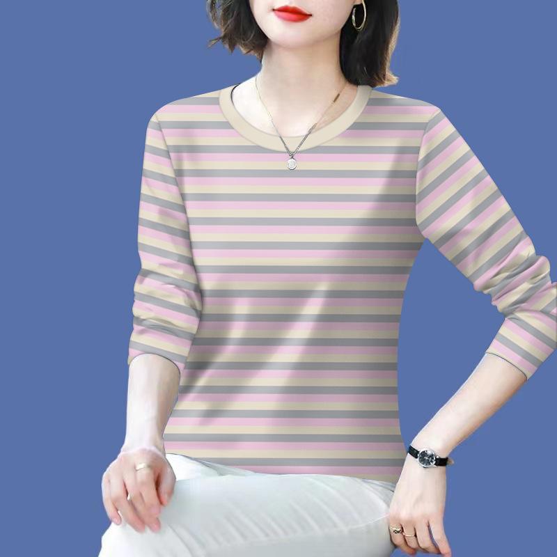 Camiseta de manga larga para mamá, nueva camiseta a rayas de otoño 2024 para mujer, top holgado de talla grande para chica gordita.