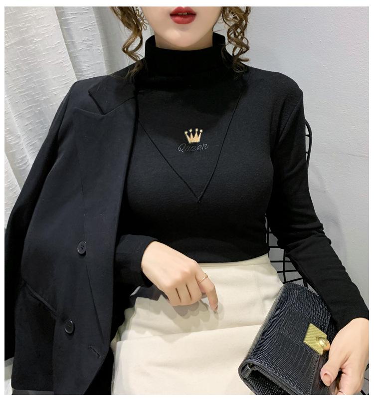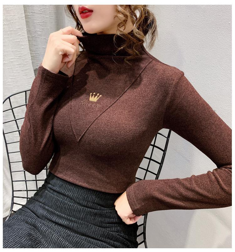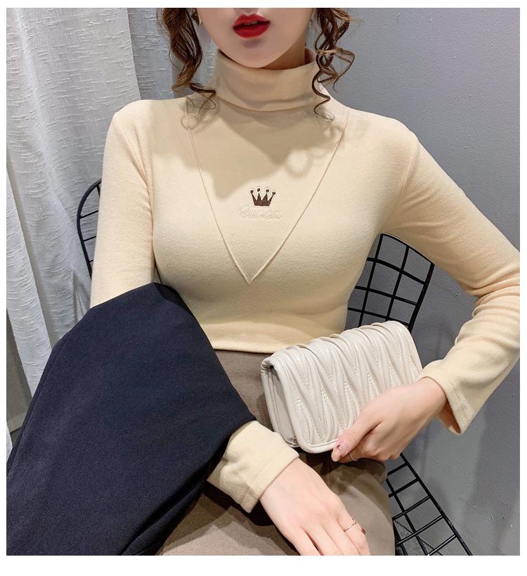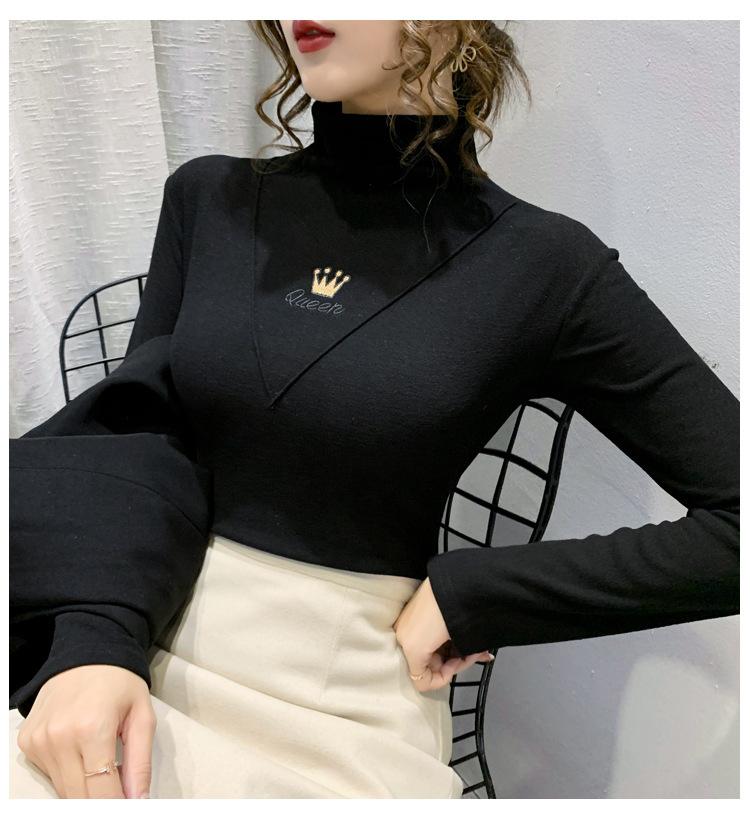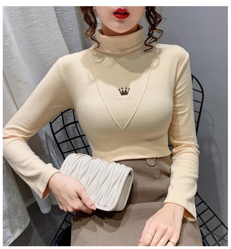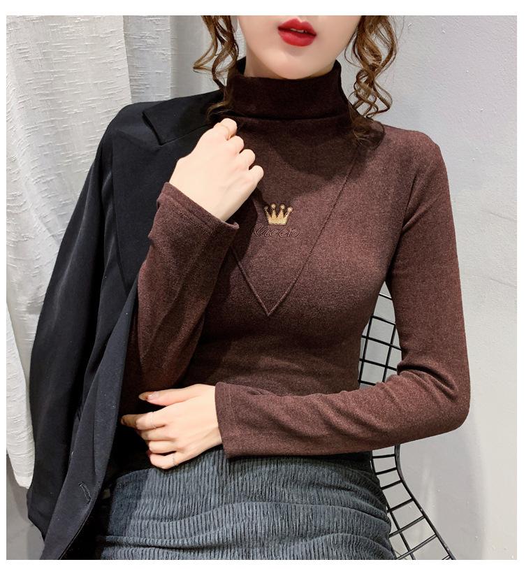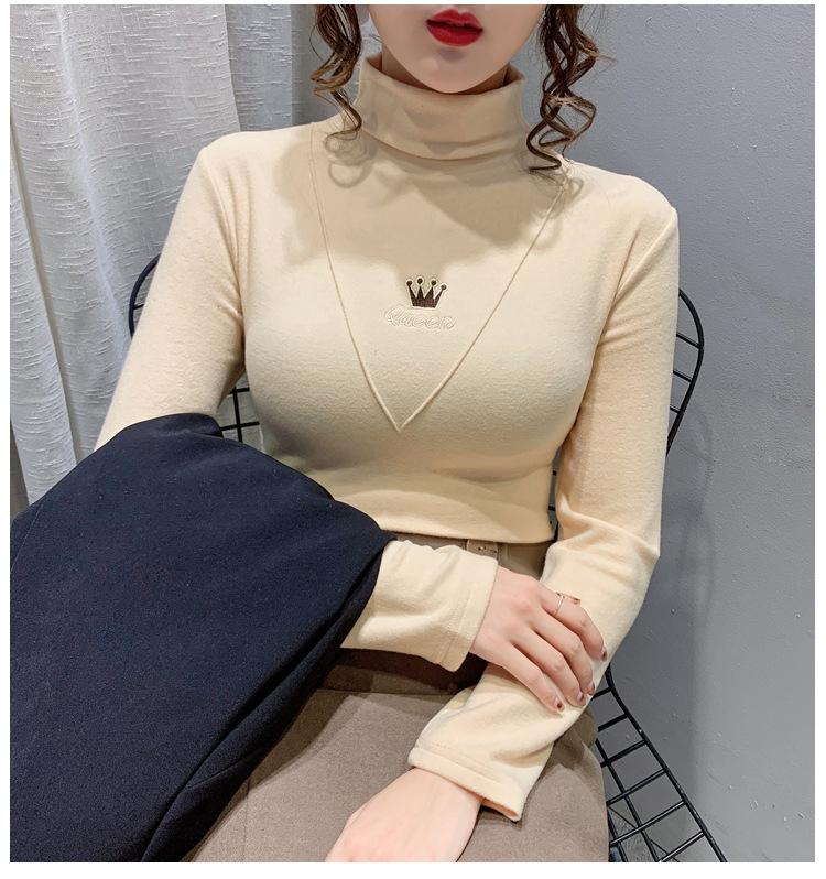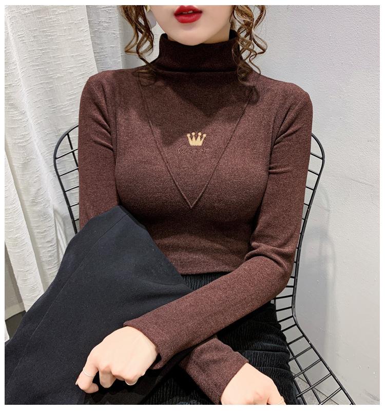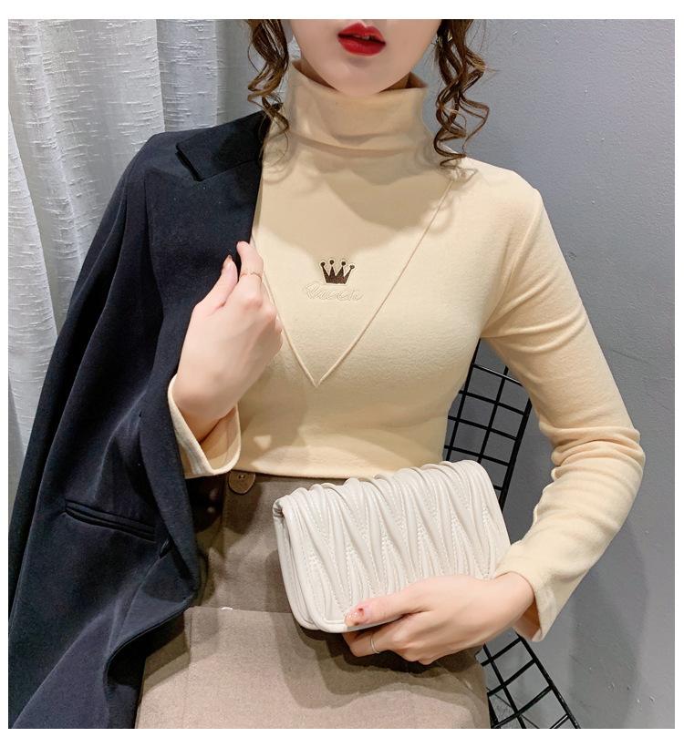 Camiseta de manga larga estilo coreano para mujer, ropa exterior adelgazante, estilo occidental, cálida, de cuello alto, estilo otoño e invierno de 2023, venta al por mayor