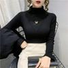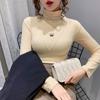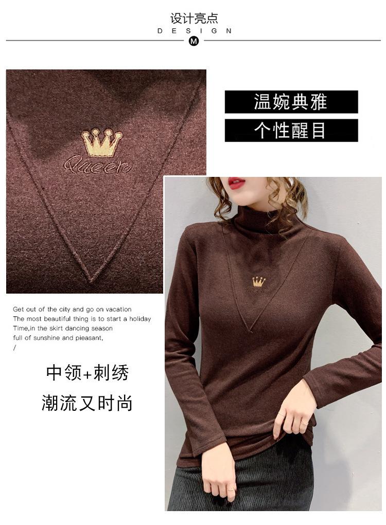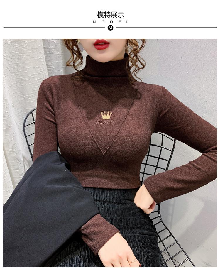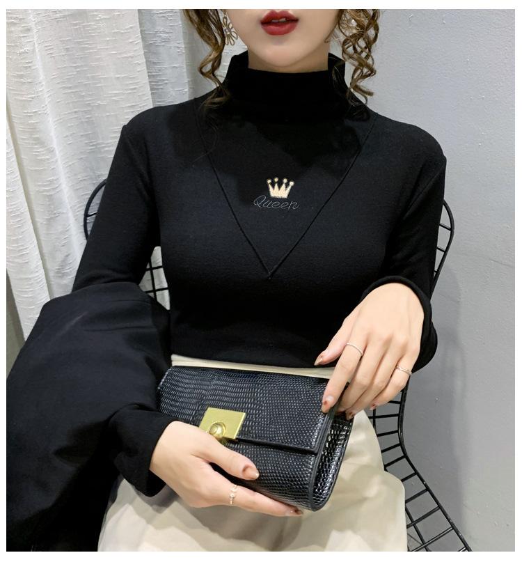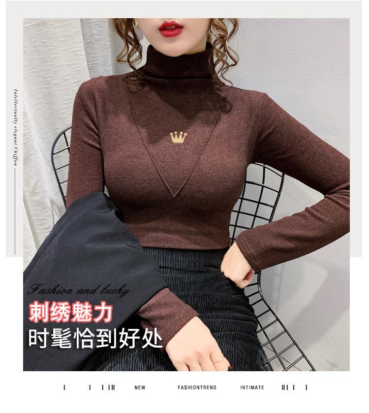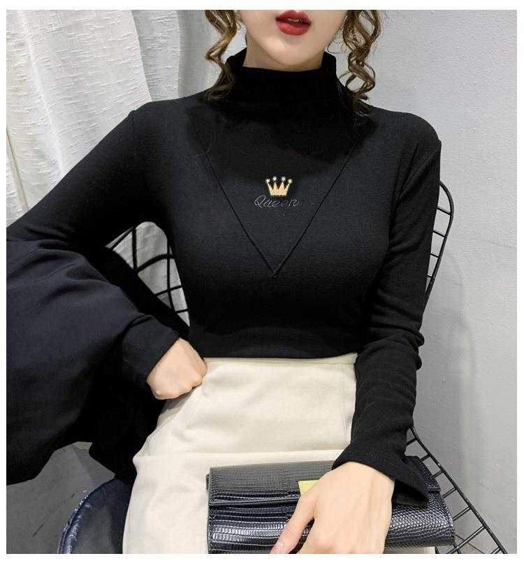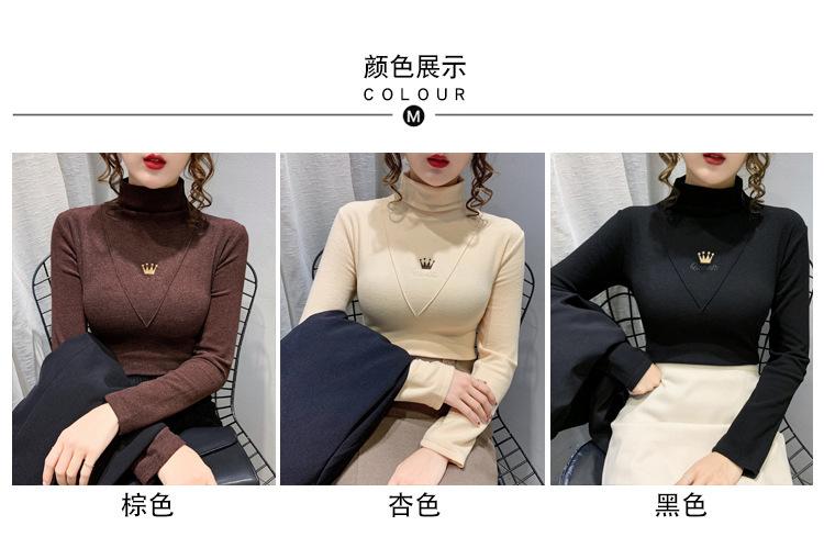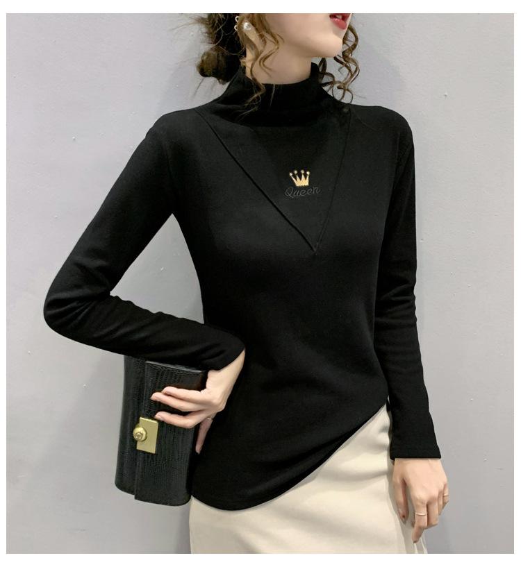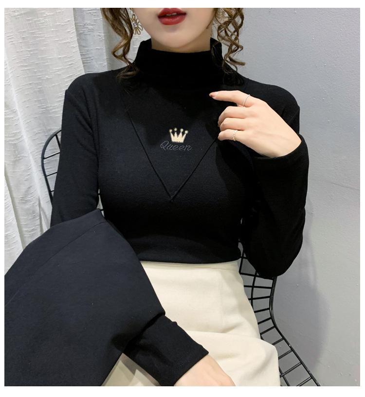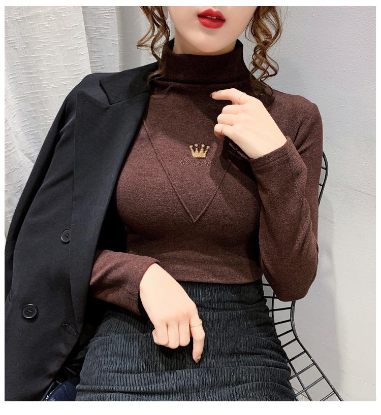 Camiseta de manga larga estilo coreano para mujer, ropa exterior adelgazante, estilo occidental, cálida, de cuello alto, estilo otoño e invierno de 2023, venta al por mayor