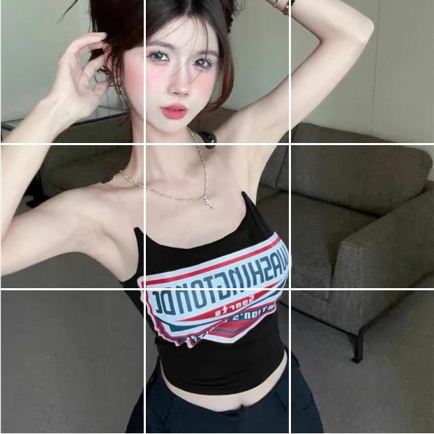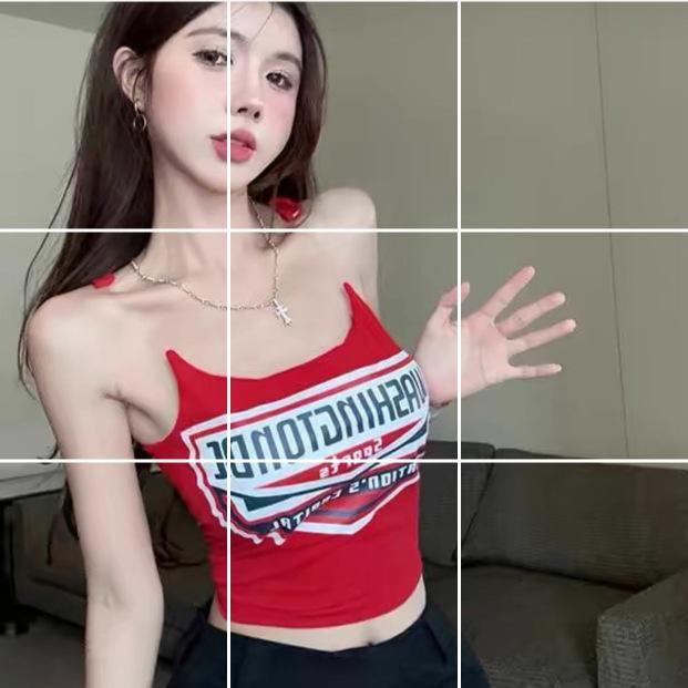 Top corto sin mangas con estampado de estilo americano de Spice Girl para mujer, ajustado y adelgazante, 5278