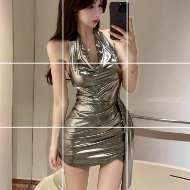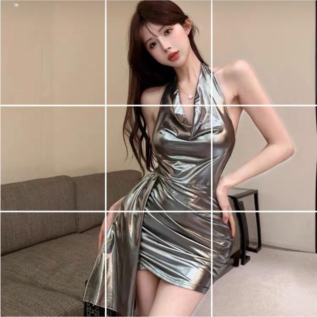 Vestido de verano para mujer, con cuello halter, sexy y elegante, con falda a la cadera y escote pronunciado 5359