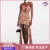 Vestido Corto de Cadera para Mujer Verano Sin Mangas Espalda Descubierta Cuello Halter Sexy Chica Caliente 8817 Vestido Polvo con Tira al Cuello