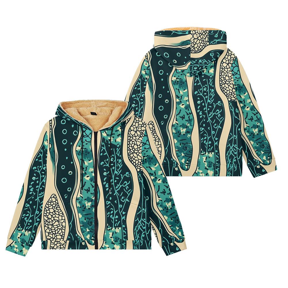 Patrón multicolor transfronterizo de Europa y Estados Unidos Impresión digital 3D Sudadera con capucha y cremallera con forro polar Chaqueta acolchada de algodón con forro amarillo 9