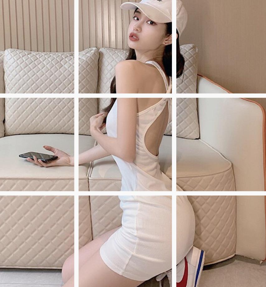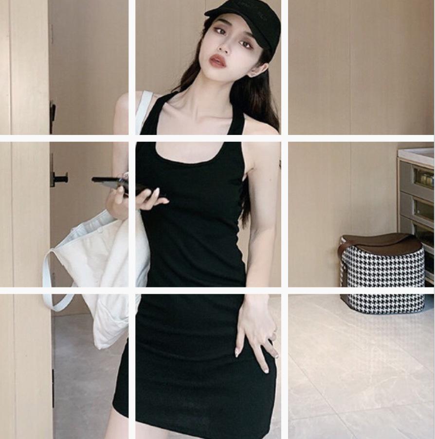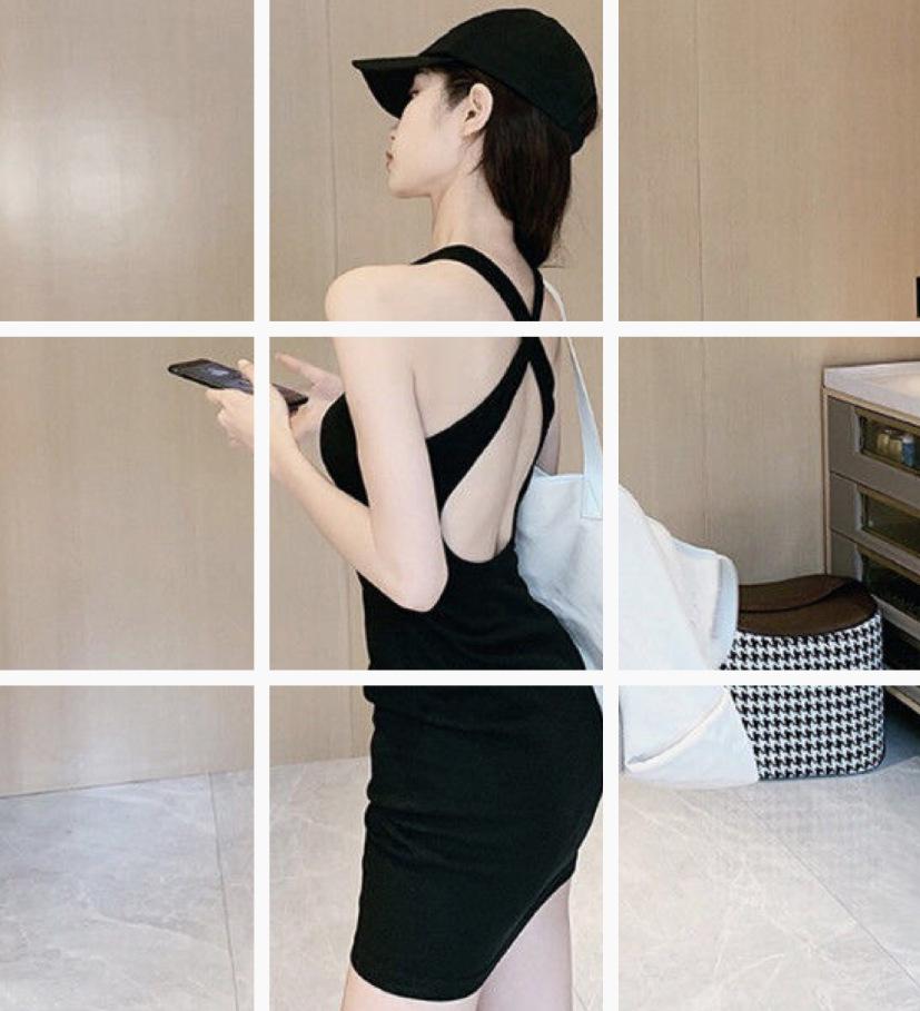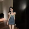 Principios de Otoño Sabor Hong Kong Espalda Cruzada Espalda Descubierta Ajustado Falda Corta Vestido de Cadera Falda de Tirantes 8026 Falda Grande Cruzada Descubierta
