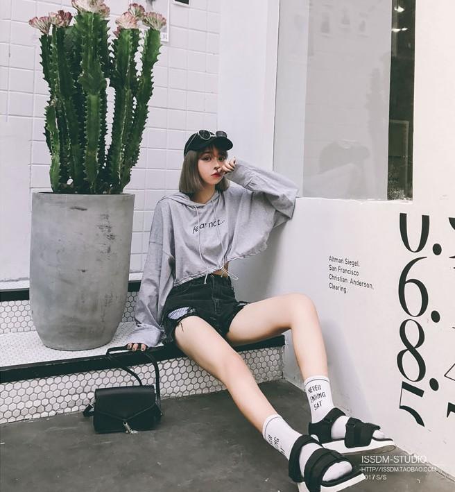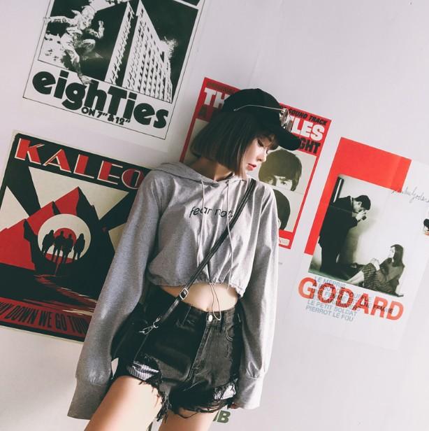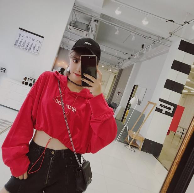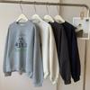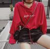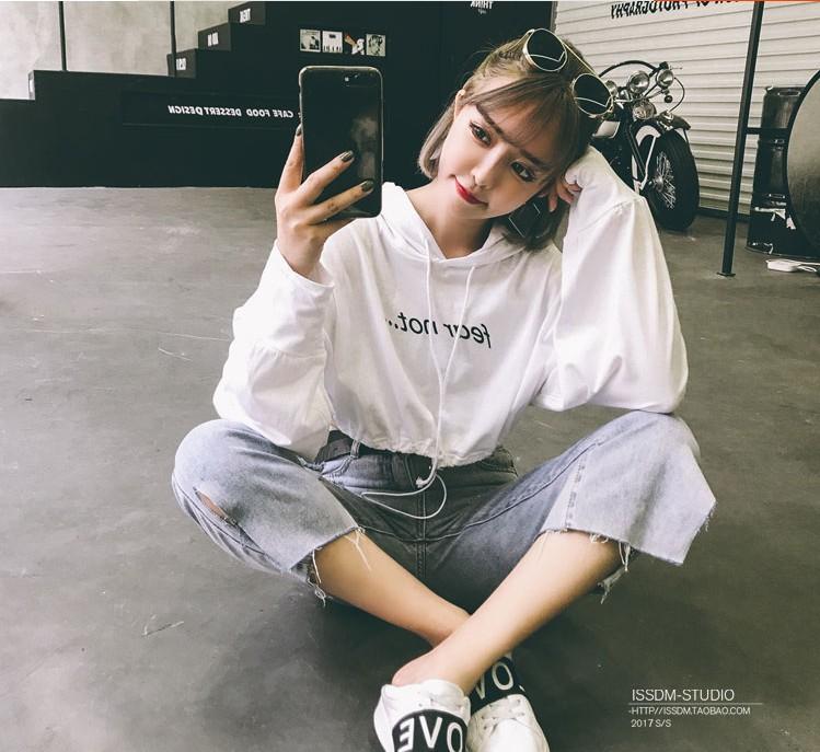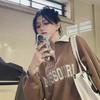 S974 Versión coreana de otoño, top holgado de manga larga con capucha y estampado de letras para mujer, versátil y sexy (suéter no corto