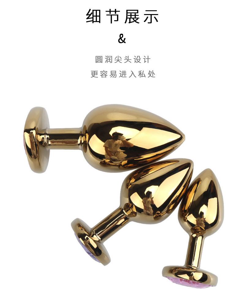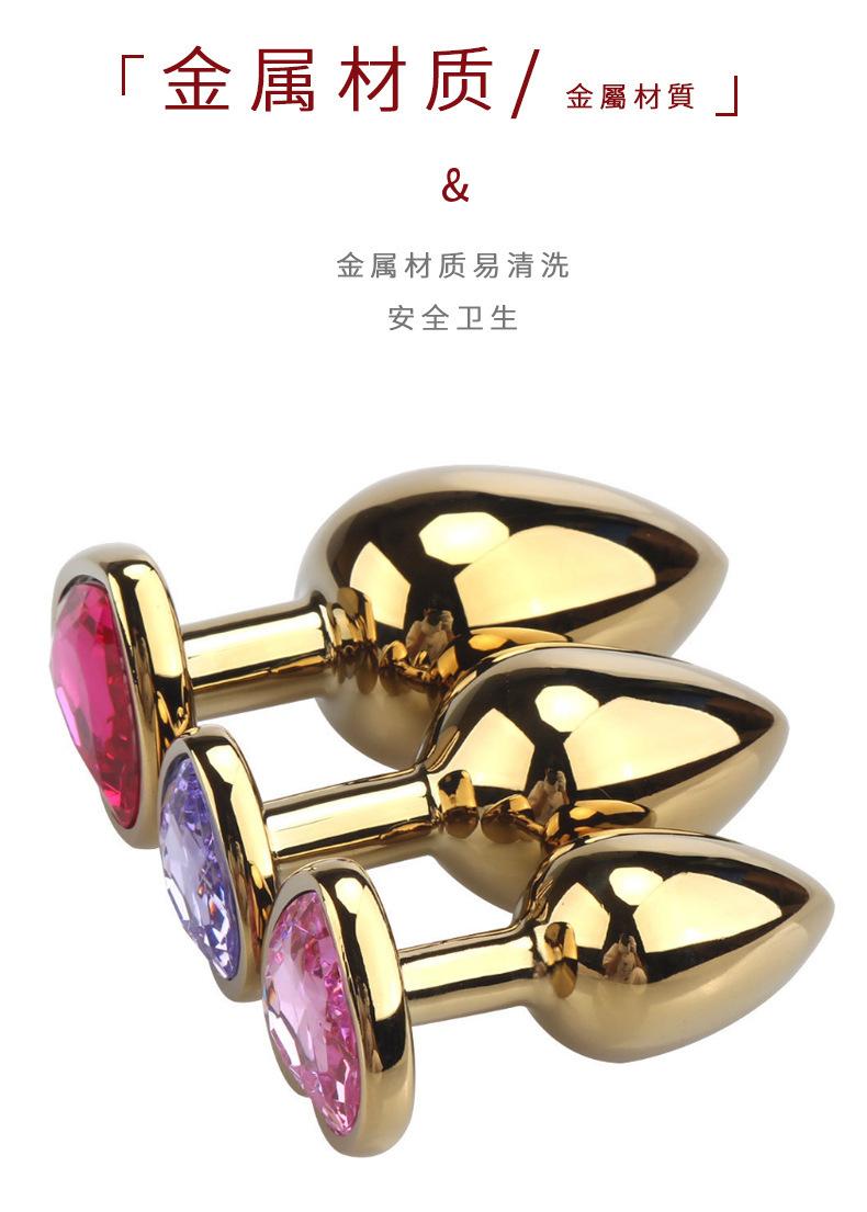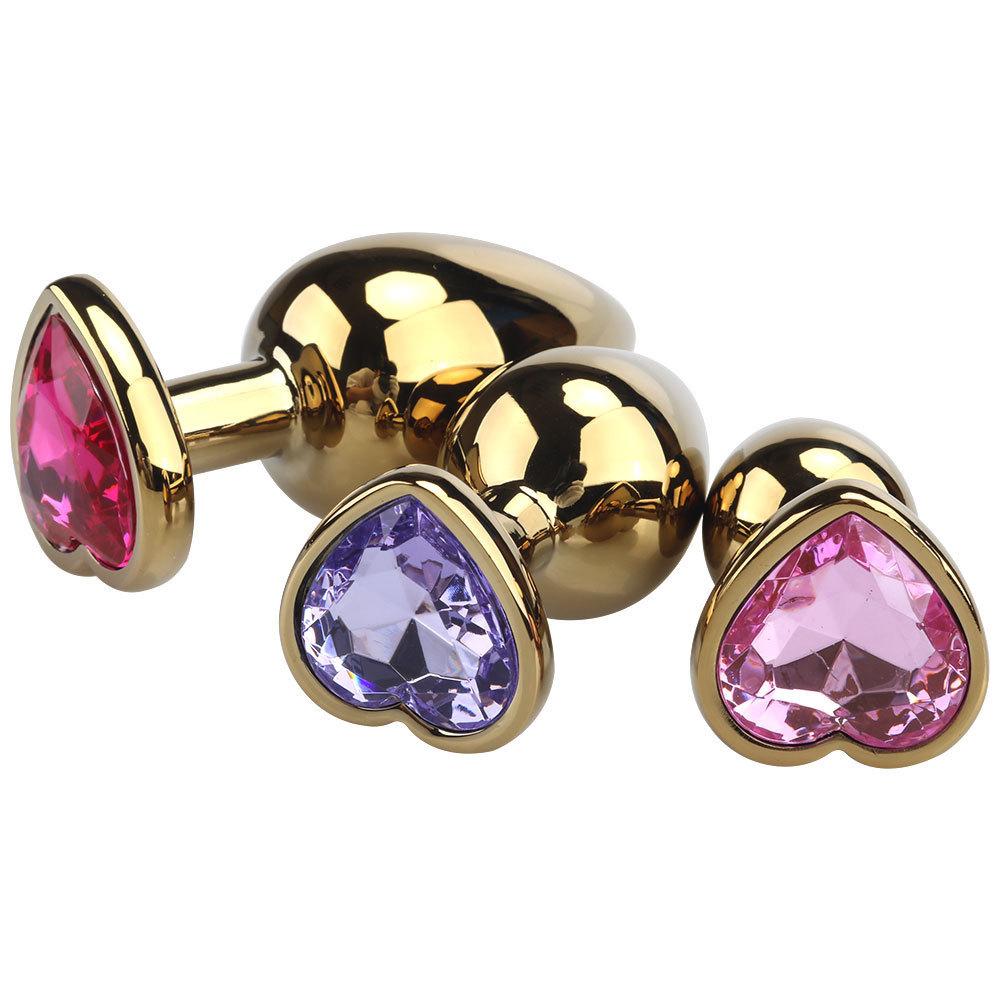 Plug anal metálico dorado en forma de corazón diversión para adultos accesorios SM aleación de aluminio plug anal venta al por mayor juguetes de entrenamiento comercio exterior