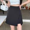 Falda de verano 2024 de talla grande para chica gordita, de longitud media, de cintura alta, con abertura irregular, negra, línea A, hasta la cadera