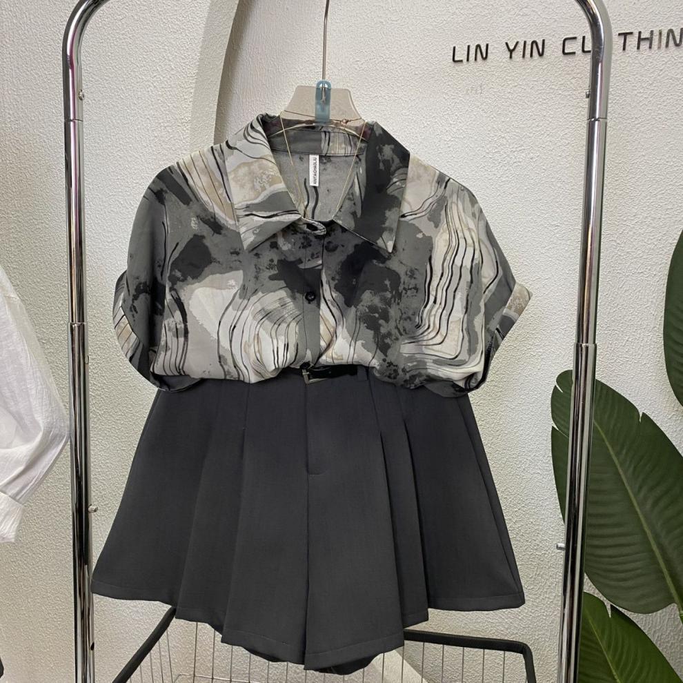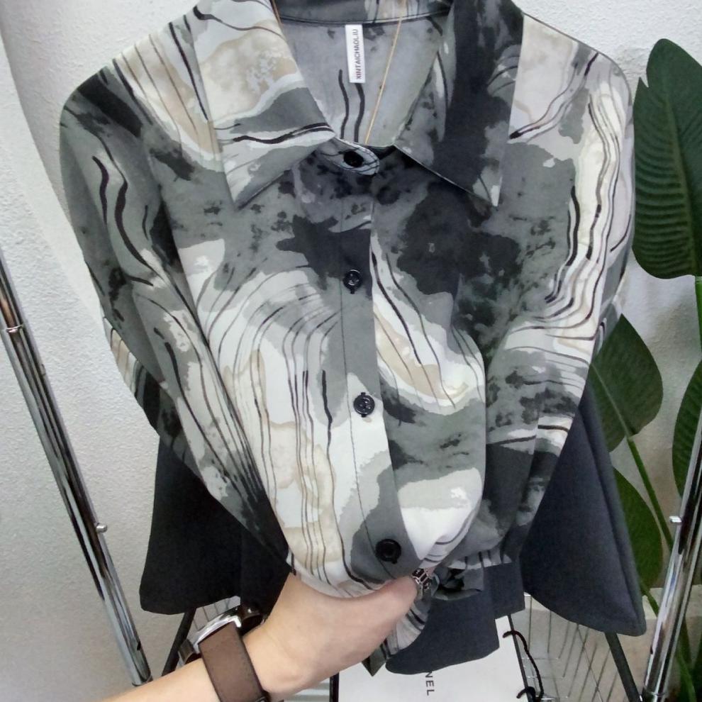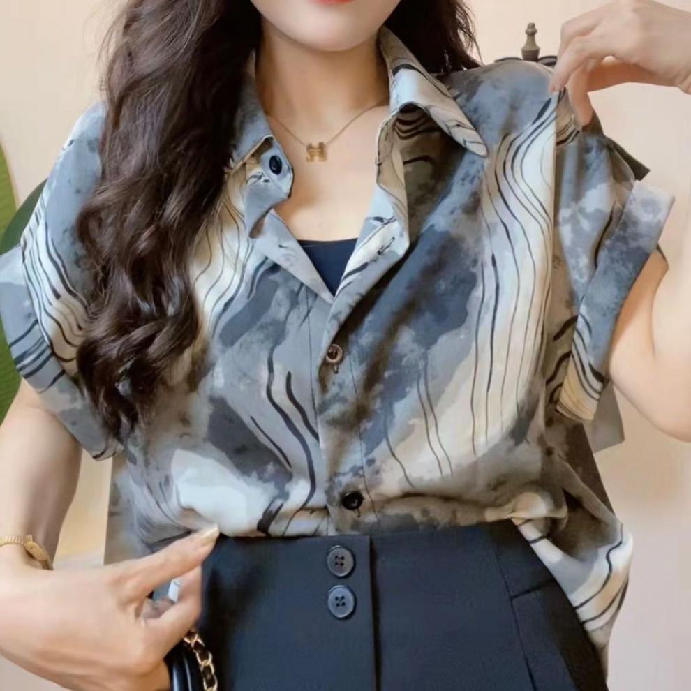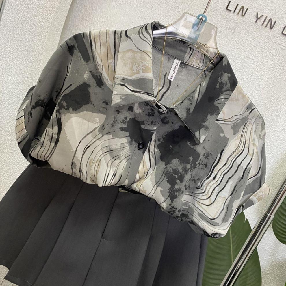 Camisa de gasa con estampado francés para mujer, estilo nuevo de verano 2024, pequeña, elegante, antiedad, elegante, combinable, hermosa blusa