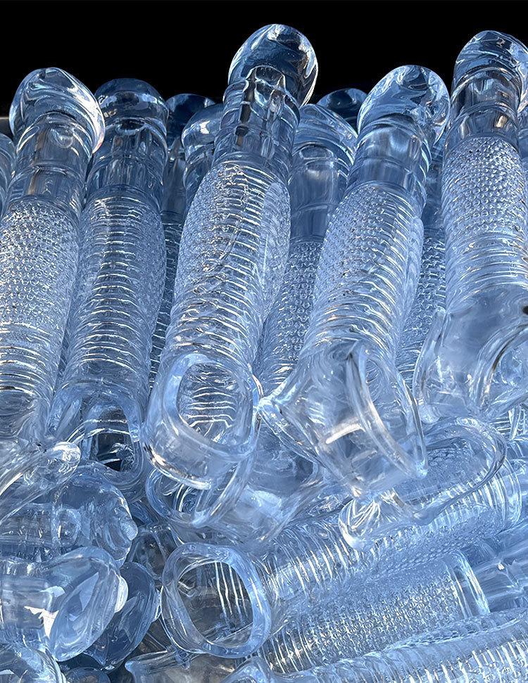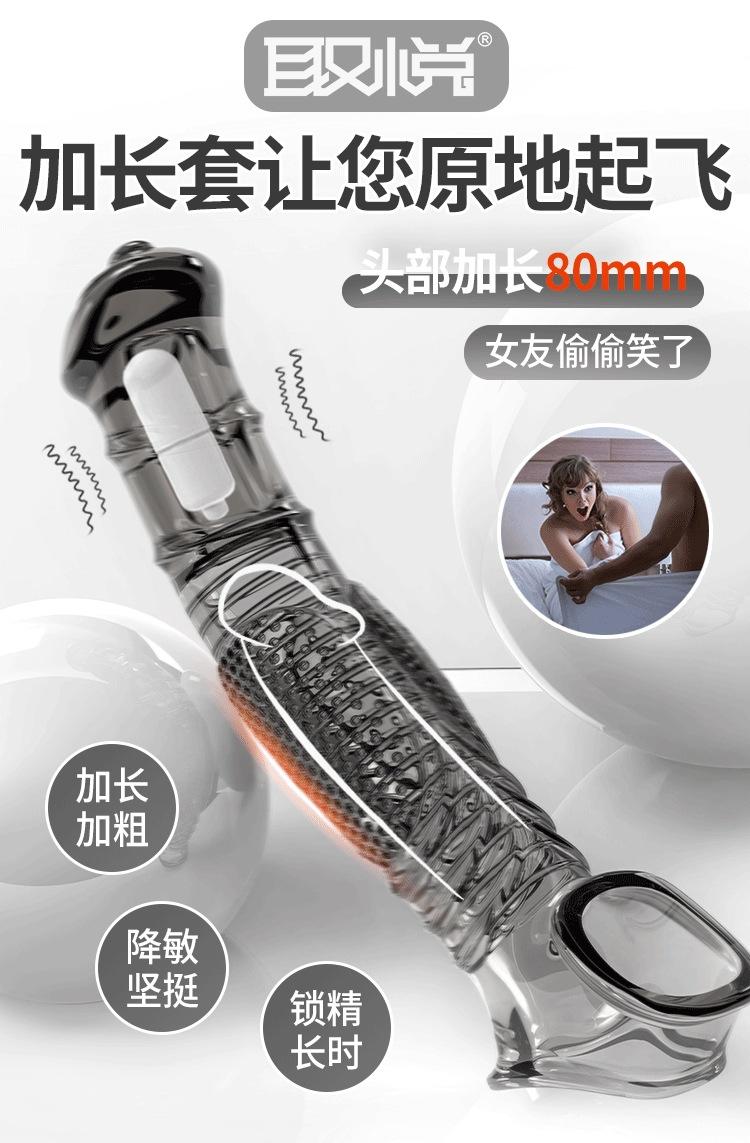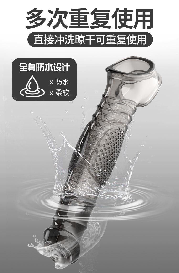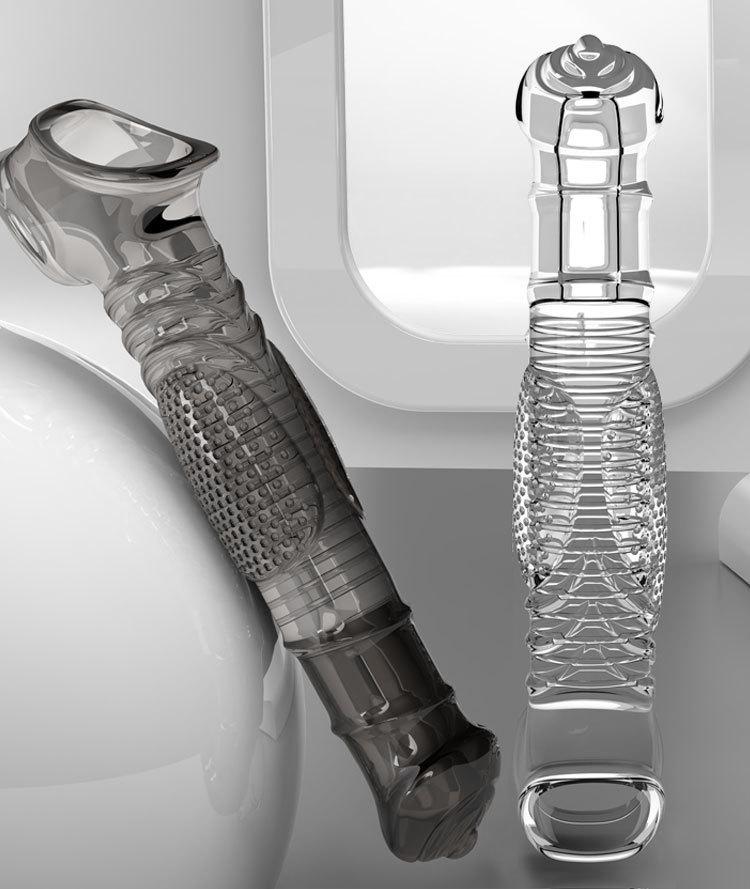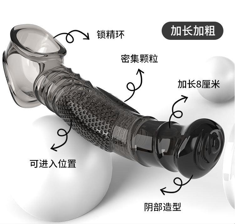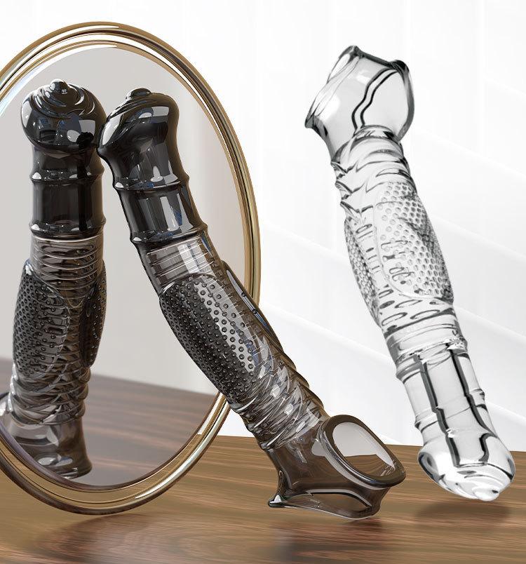 Ala Vibratoria Maza Canina Manga de Cristal Extendida Transparente Negra para Hombre Esencia Retardante Productos Sexuales para Adultos Aparato