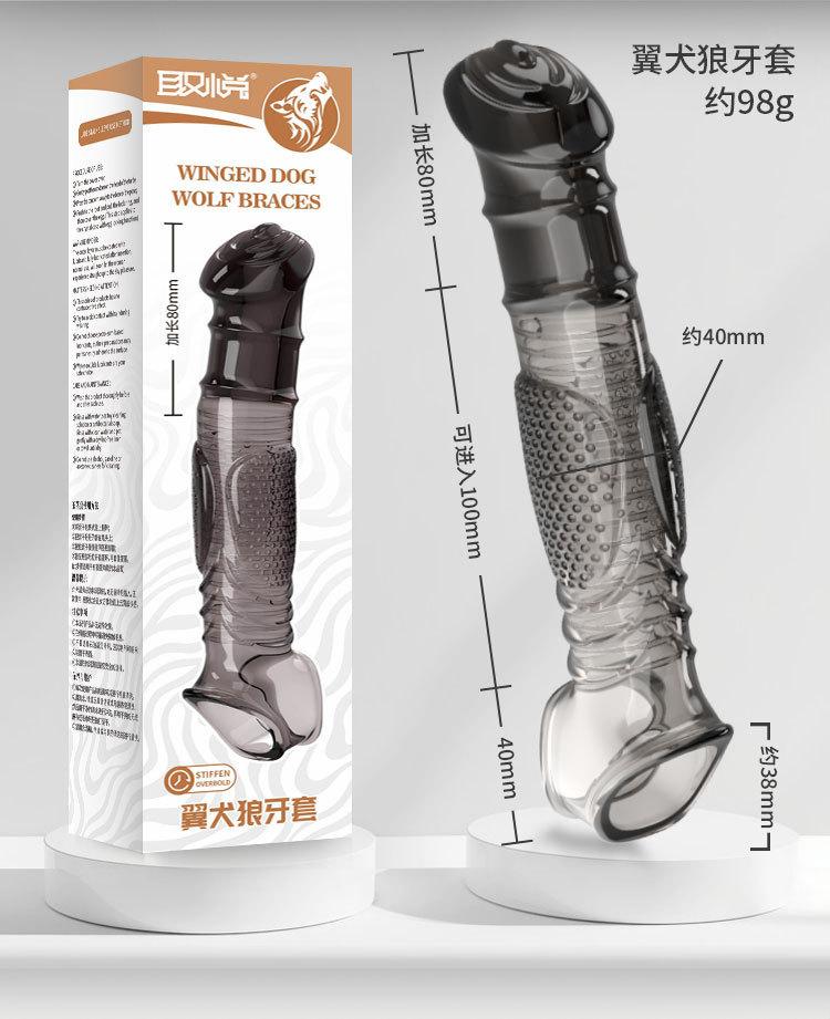 Ln0841-vibration wing dog wolf tooth sleeve-transparent black, Ln0842-wing dog wolf tooth sleeve-transparent b...