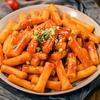Pastel de arroz frito estilo coreano Bipingo, clásico, dulce y picante, sabor surcoreano, salsa picante, pastel de arroz frito, pastel de arroz con queso, olla caliente, menú del día.