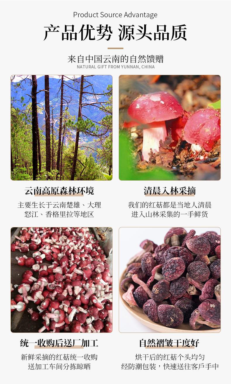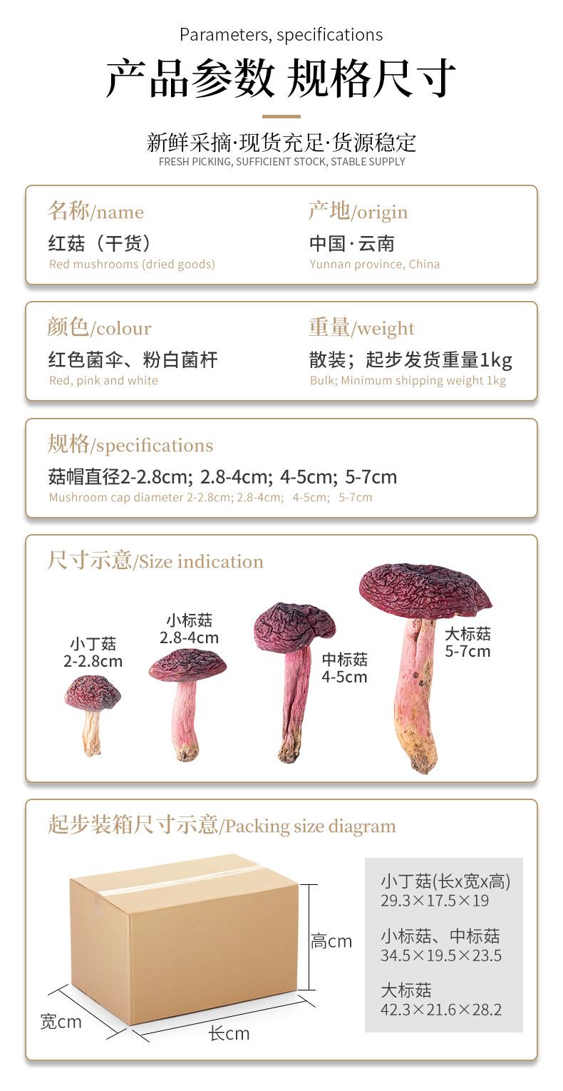 Venta al por mayor de productos secos de hongos comestibles de Yunnan Hongo rojo Colección de hongo rojo Especial Hongo rojo Hongo de fideos rojos dulces Fabricante Directo Regalo