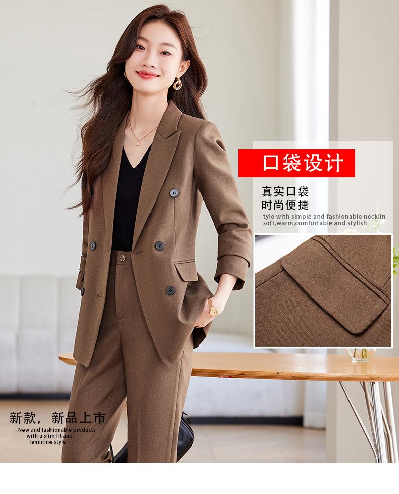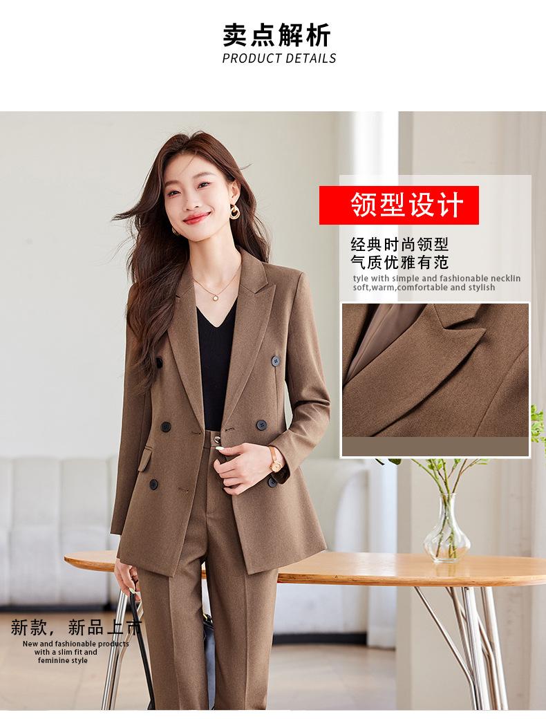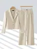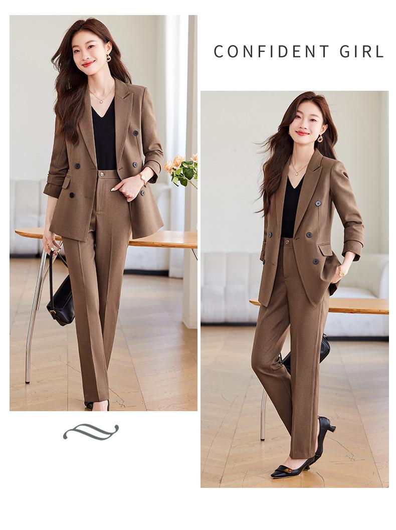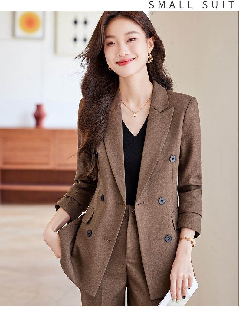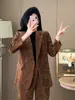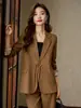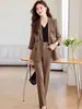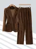 2024 Primavera Otoño e Invierno Nuevo Marrón Manga Larga Traje Pequeño Cuello Chaqueta Pantalones Mujer Traje de Dos Piezas Moda Viajero