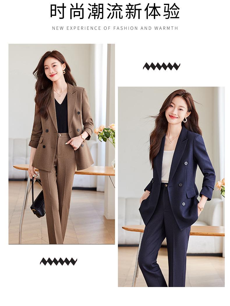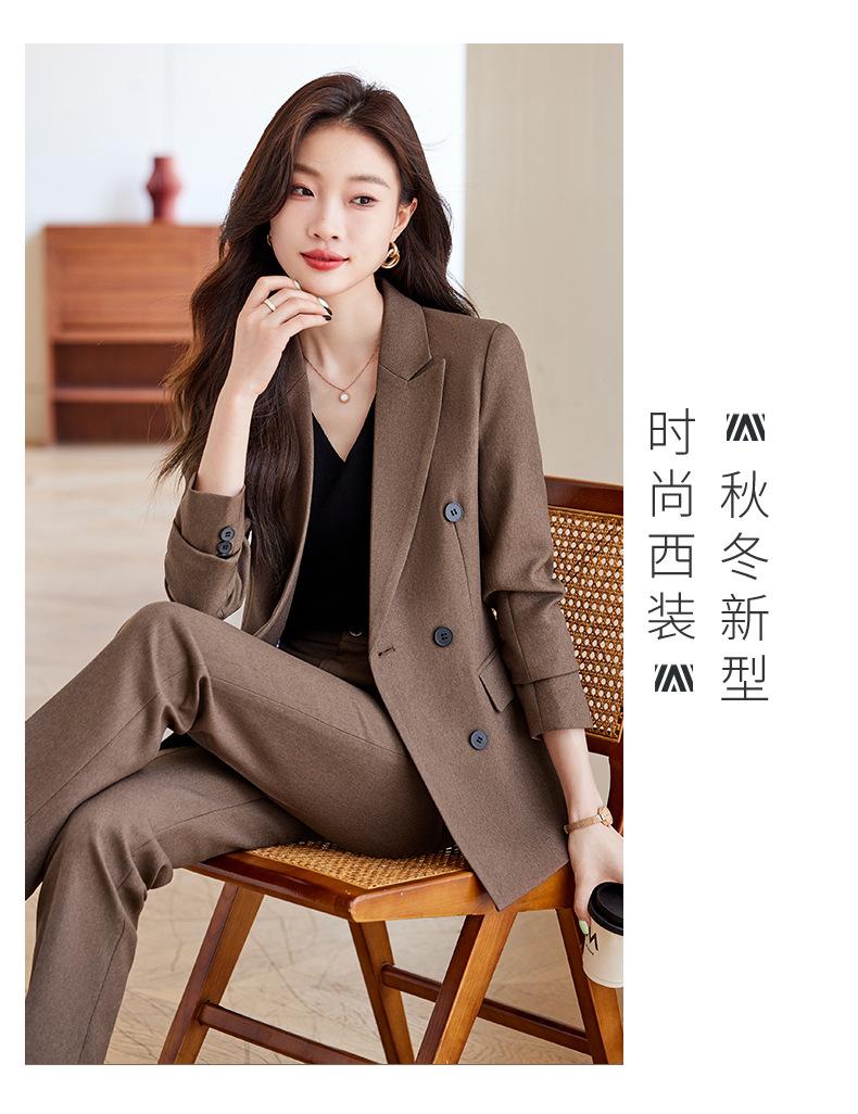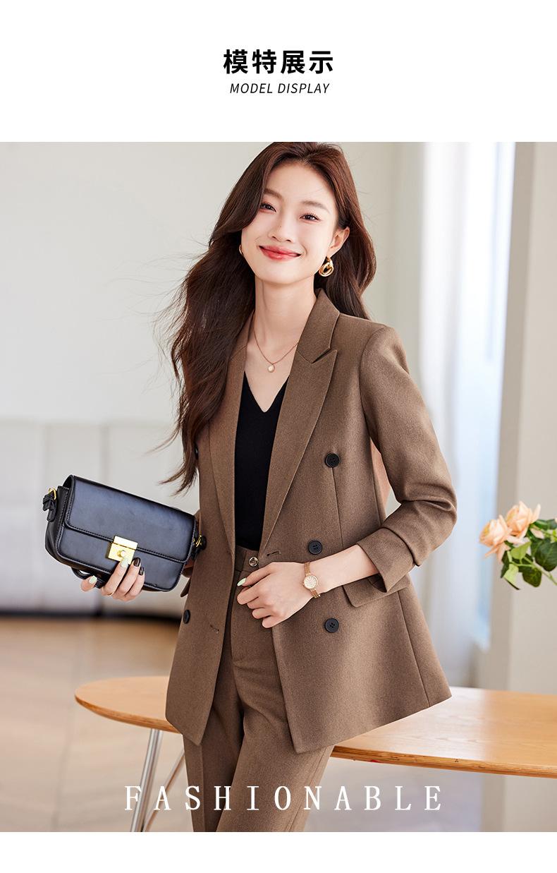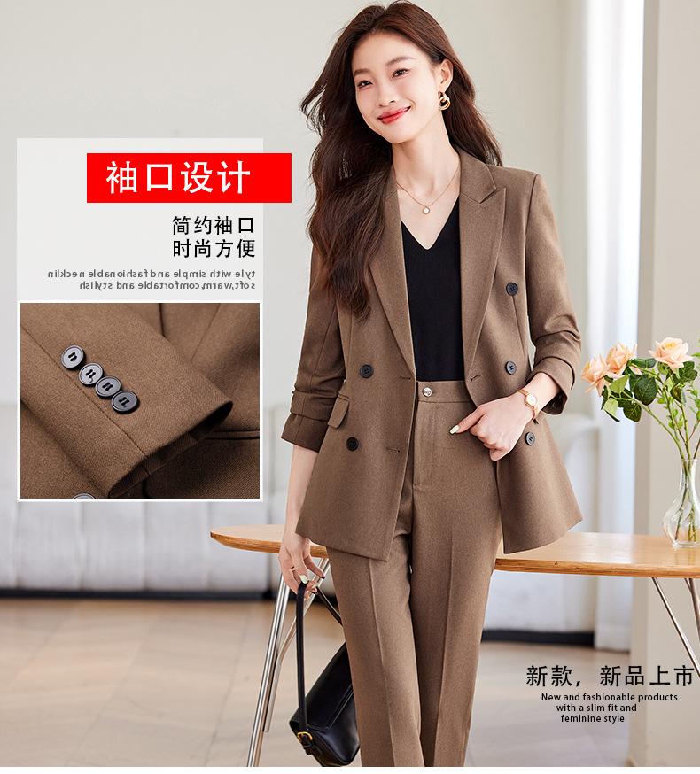 2024 Primavera Otoño e Invierno Nuevo Marrón Manga Larga Traje Pequeño Cuello Chaqueta Pantalones Mujer Traje de Dos Piezas Moda Viajero
