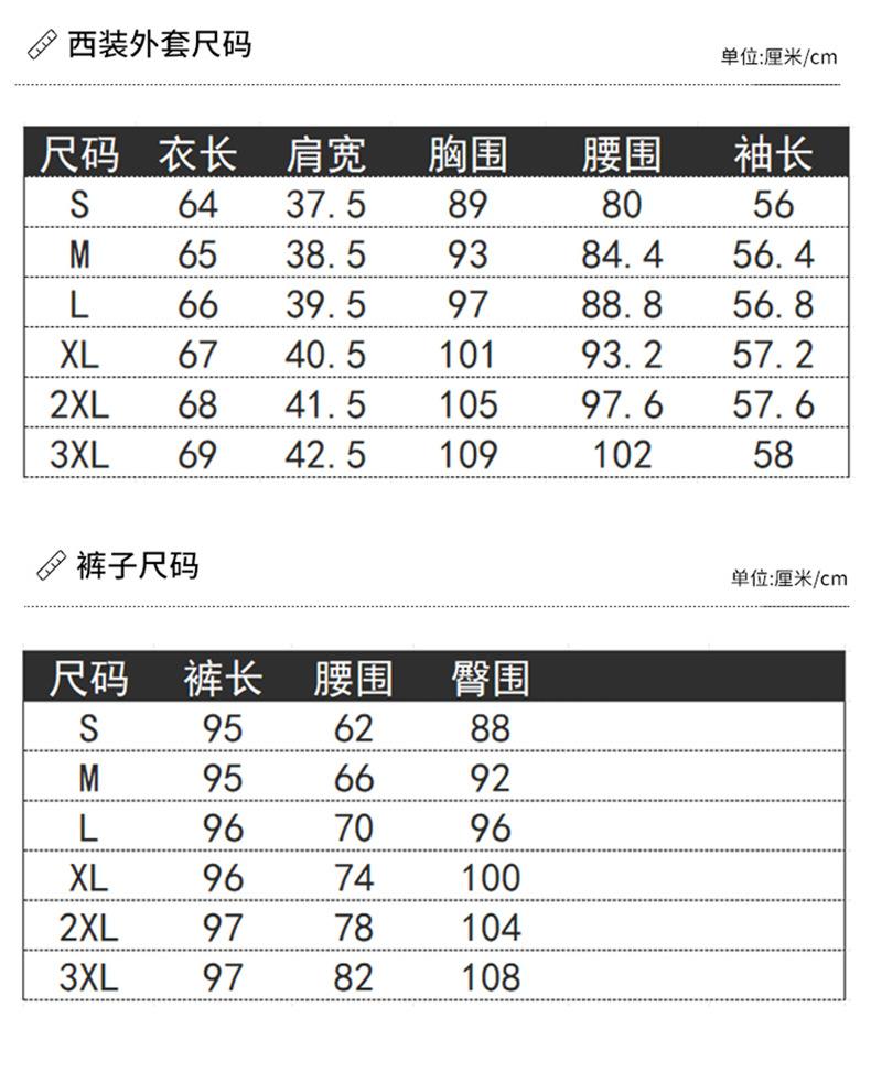 Brown single piece suit, Navy blue one piece suit, Brown suit + pants, Navy blue suit + pants