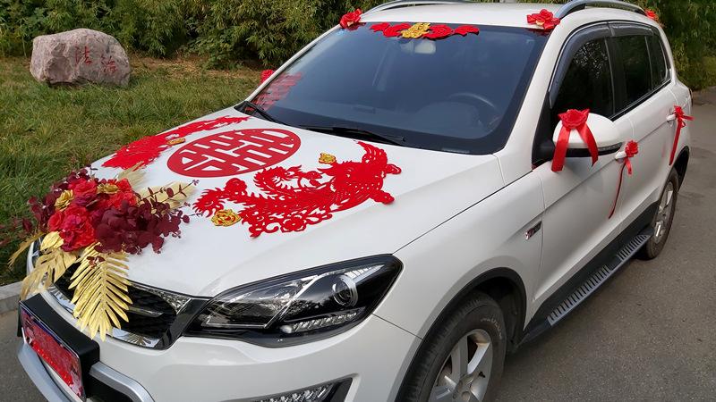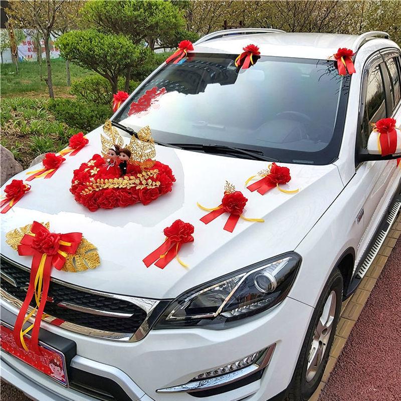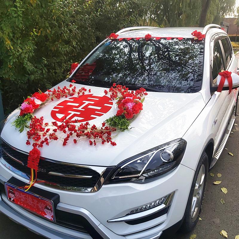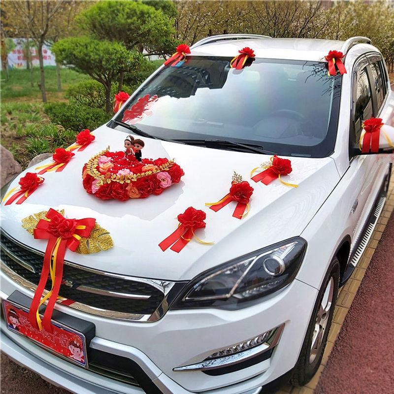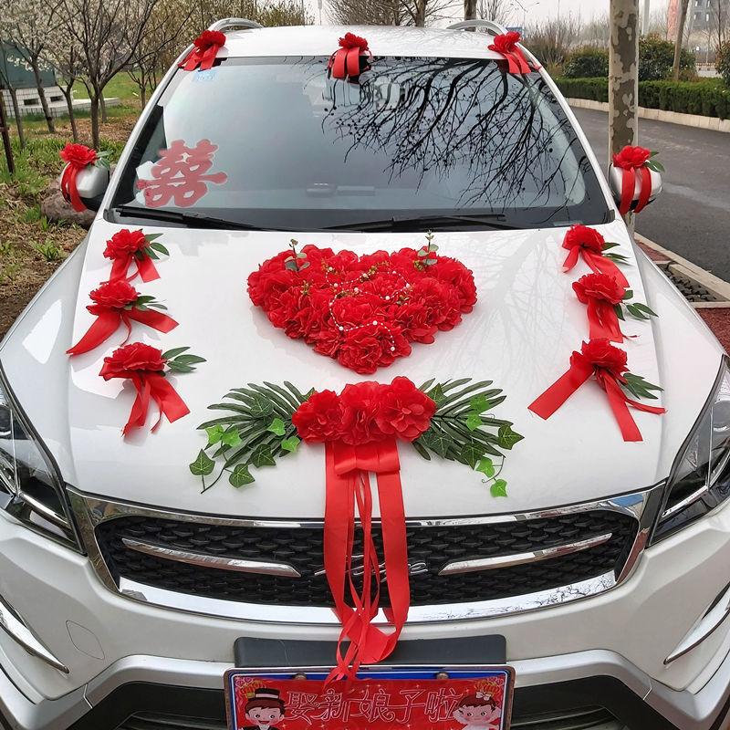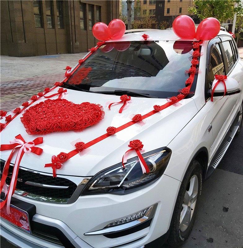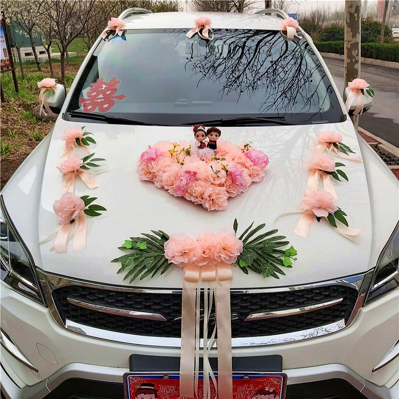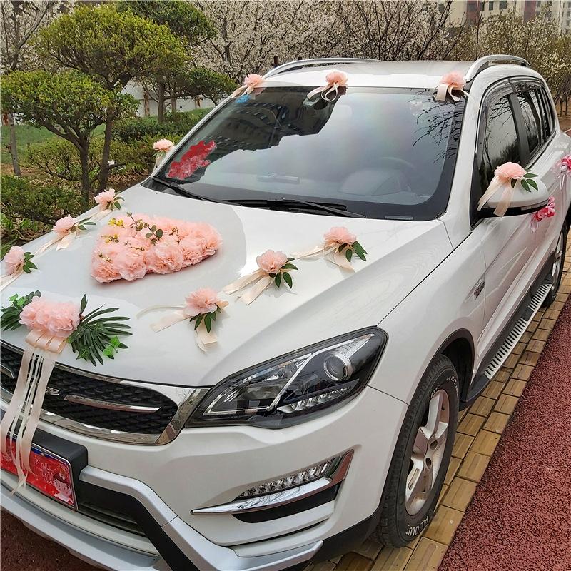Contiene todas las flores decorativas de la imagen + decoración para el coche + pegatinas para la placa + cinta especial para coches