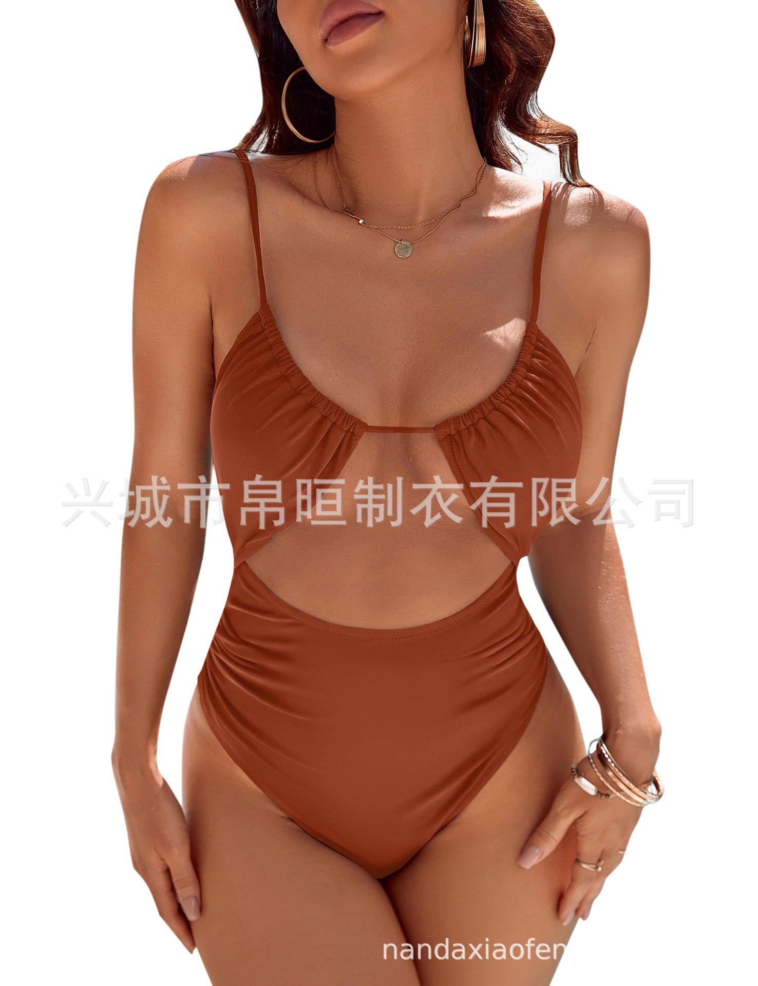 Traje de baño enterizo nuevo para mujer europea y americana 2025 de Amazon, lindo traje de baño sexy con vientre para mujer bi