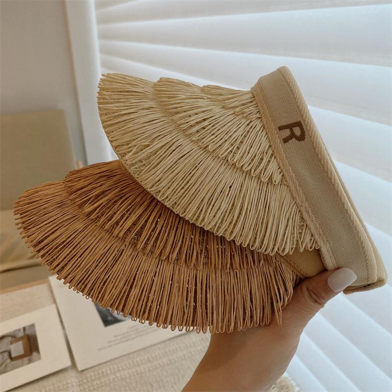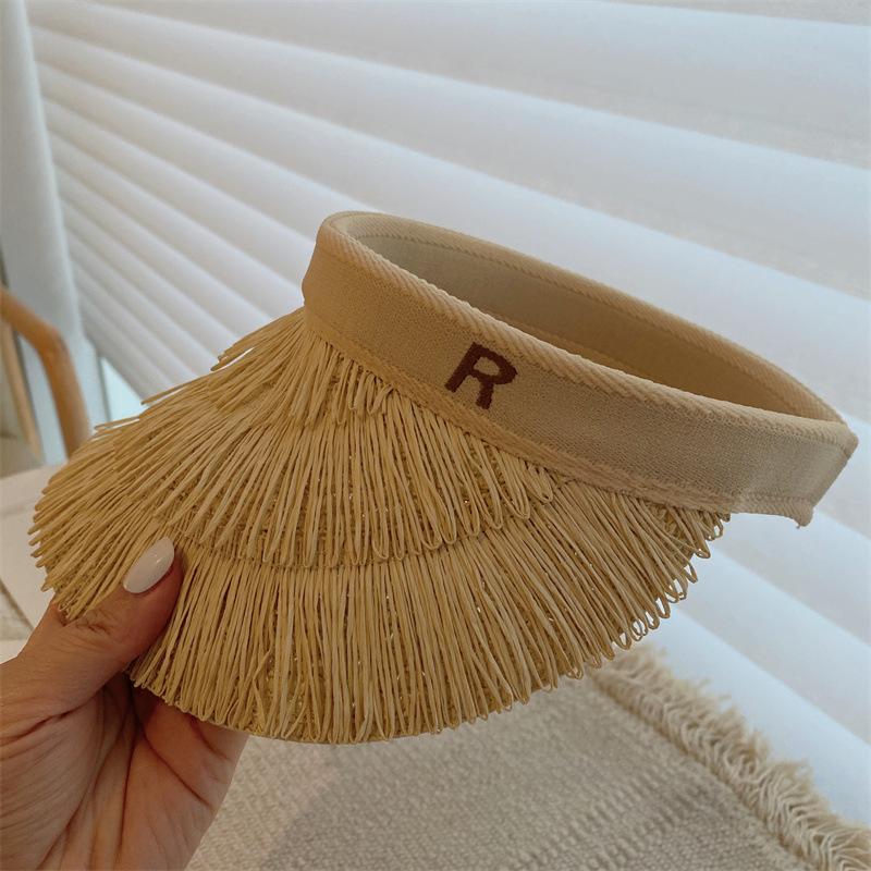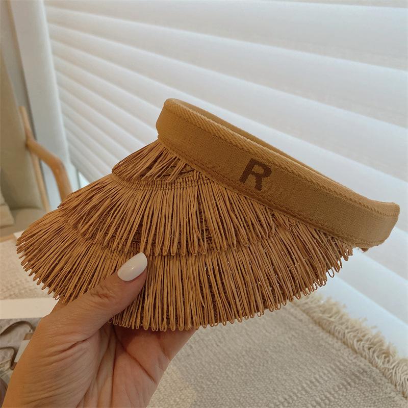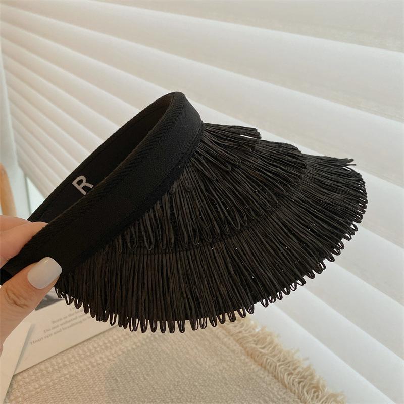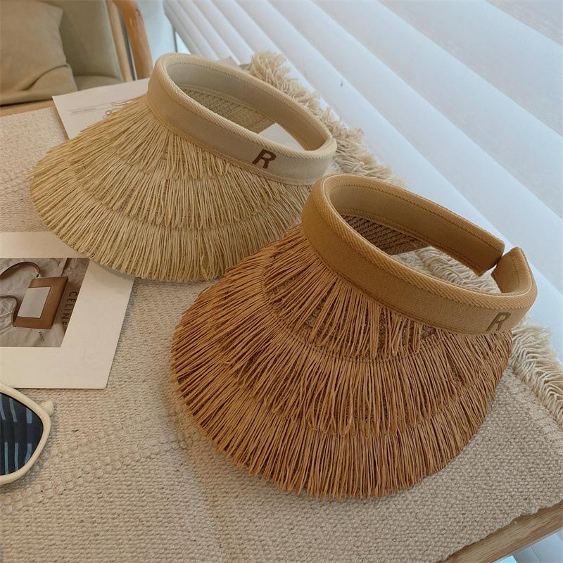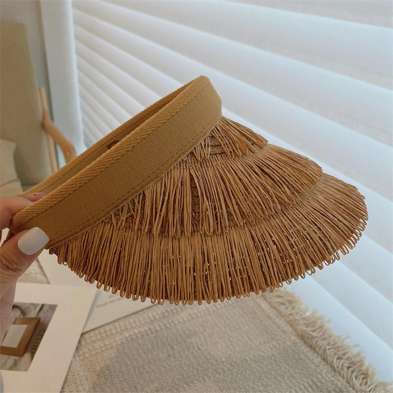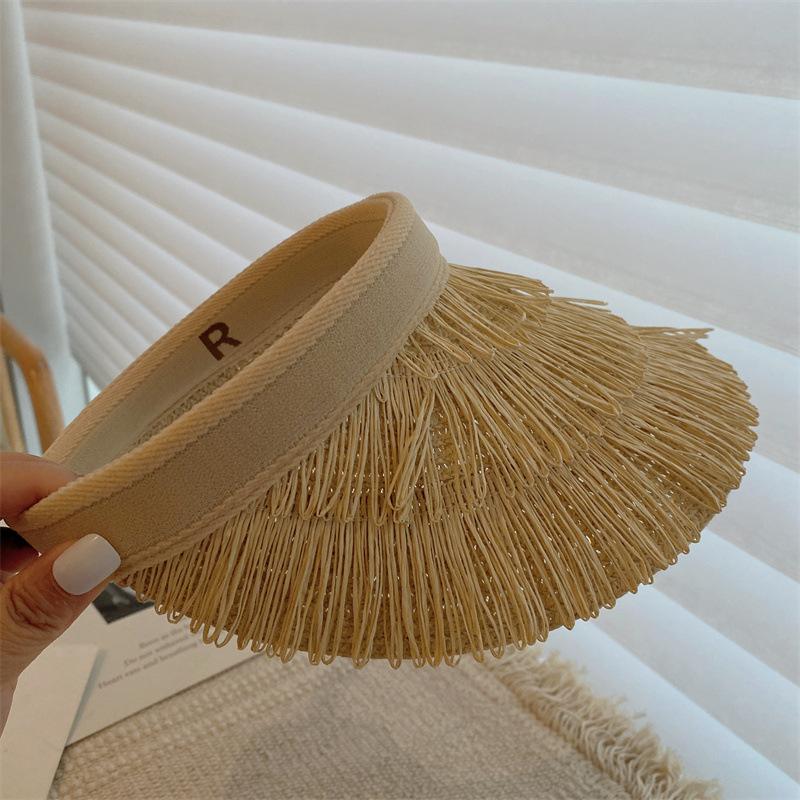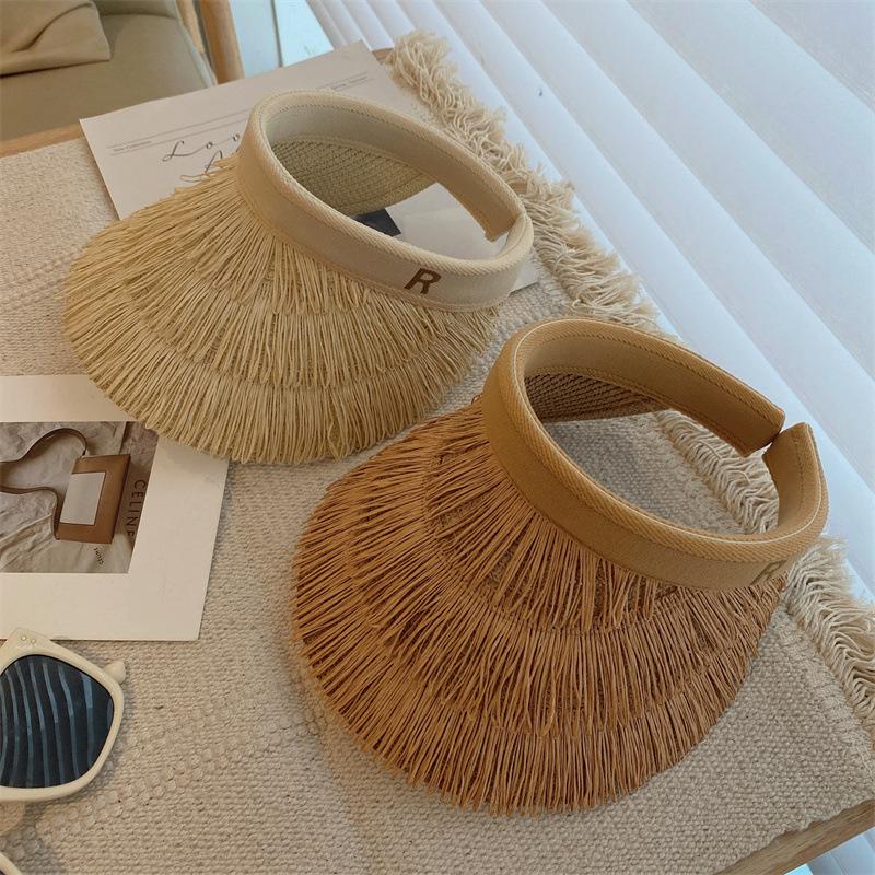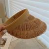 Sombrero de paja de copa vacía estilo ins protección UV sombrero para el sol ala ancha borla sombrero para el sol vacaciones ocio playa sombrero para el sol
