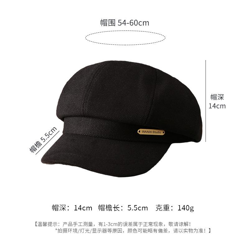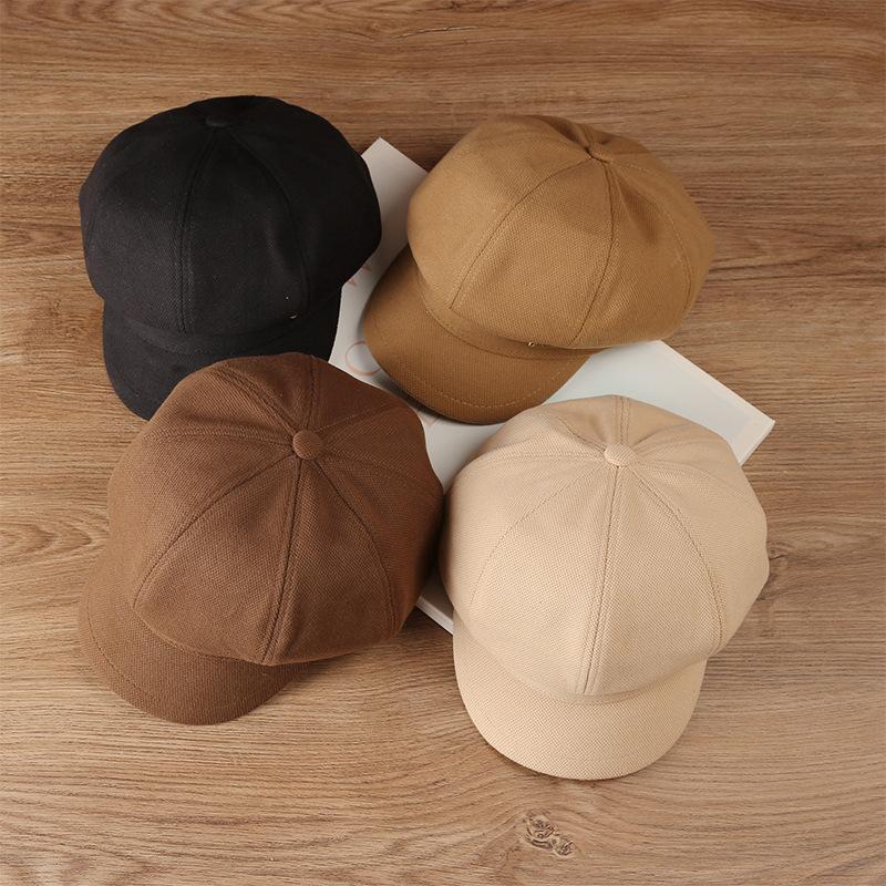 Sombrero octogonal con alfabeto para otoño e invierno, boina de pintor japonesa retro literaria, combinable, con cabeza grande y lengua de pato.