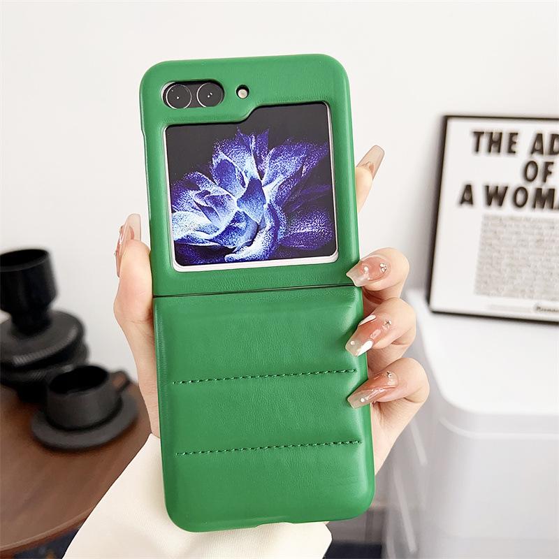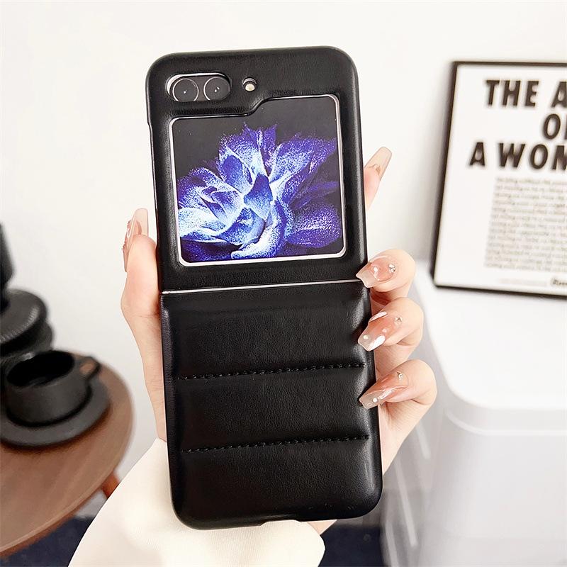 Chaqueta de plumas de PU a rayas para Samsung ZFlip6, funda para teléfono móvil, funda protectora rígida plegable de moda para ZFlip5/4