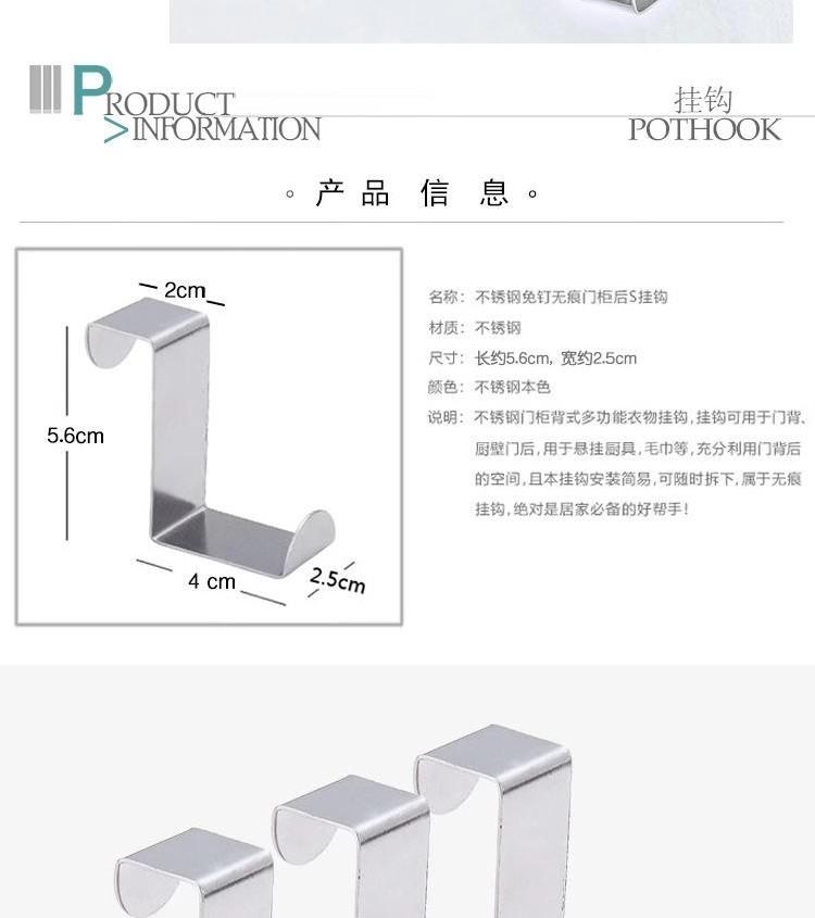 Gancho en Z de Metal de Acero Inoxidable Gancho Trasero para Puerta de Cocina Multifuncional Gancho para Ropa Gancho para Abrigo Gancho para Puerta de Gabinete Tamaño Mediano