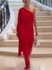 Otoño 2024 Nuevo estilo europeo y americano de Amazon Nuevo estilo Diseño Sensación Temperamento Sexy Delgado Vestido con hombros inclinados y abertura