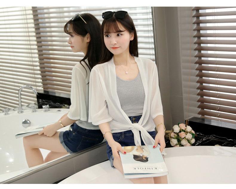 Ropa de Protección Solar de Verano 2025 Cárdigan de Chifón Fino de Verano para Mujer Chal Pequeño Chaqueta Corta Suelta