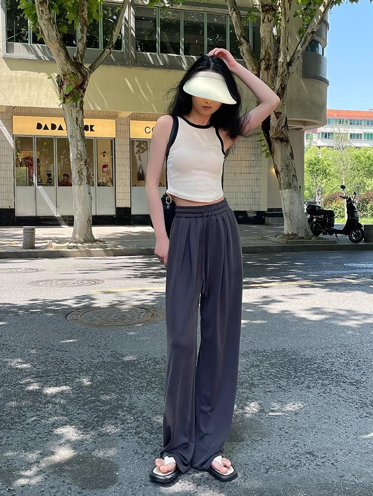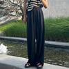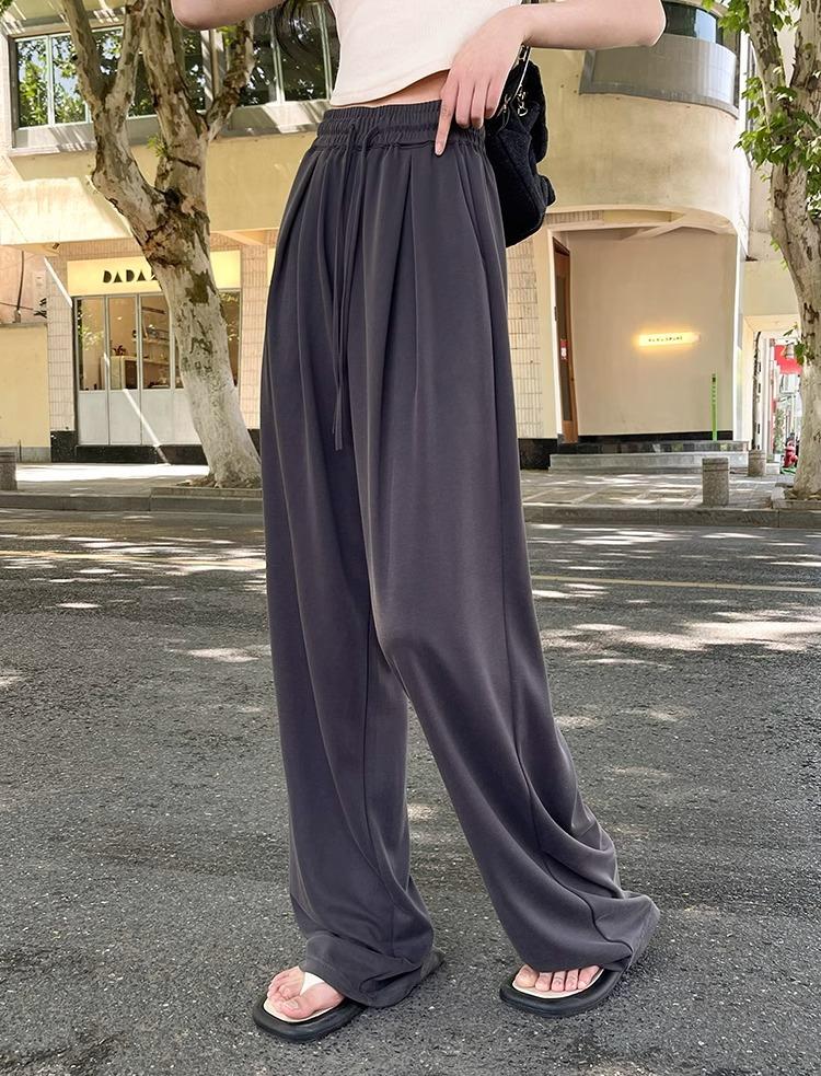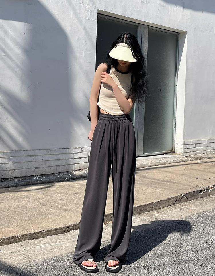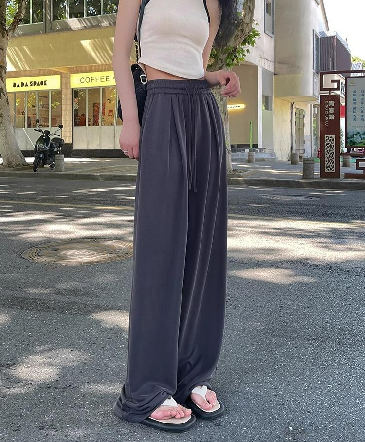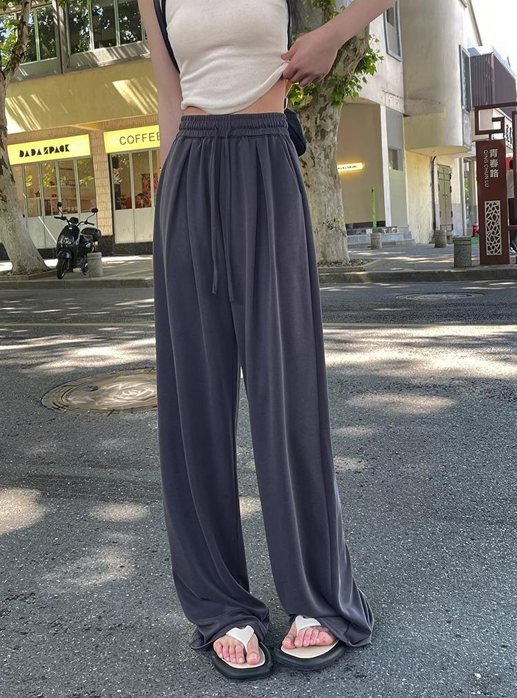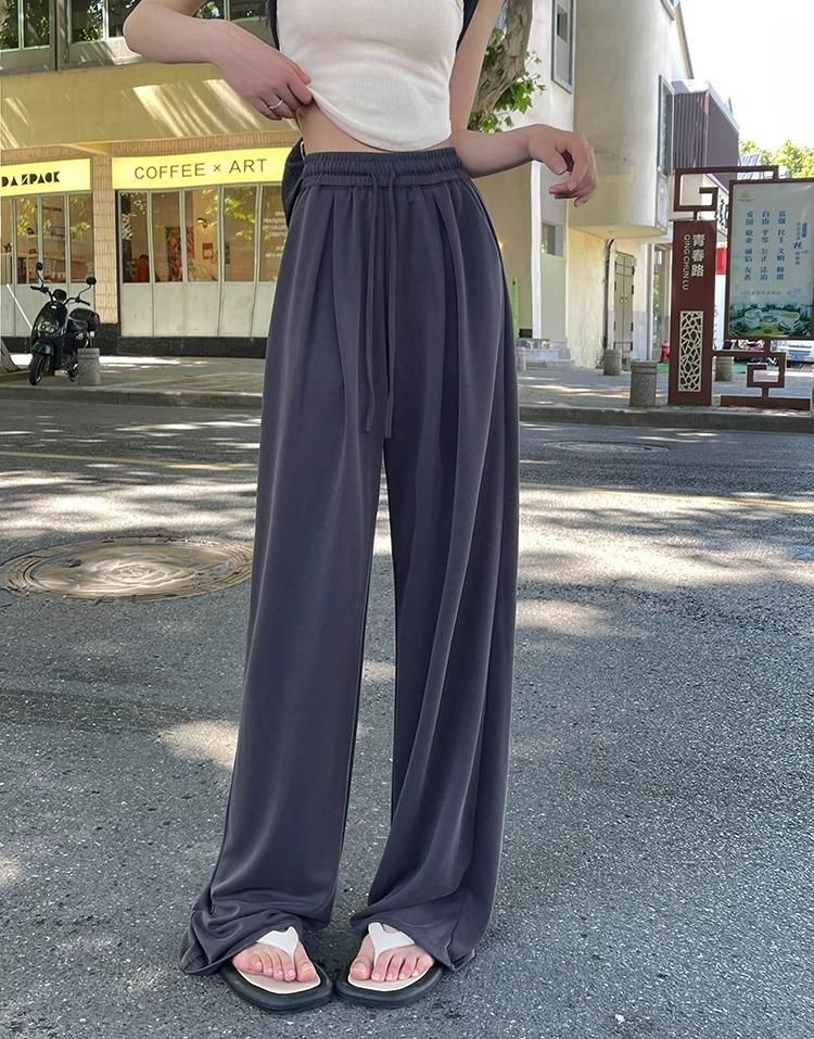 Pantalones de verano para mujer, de pierna ancha, 150 cm, cintura alta, finos, rectos, informales, ajustados, de seda de hielo 2025