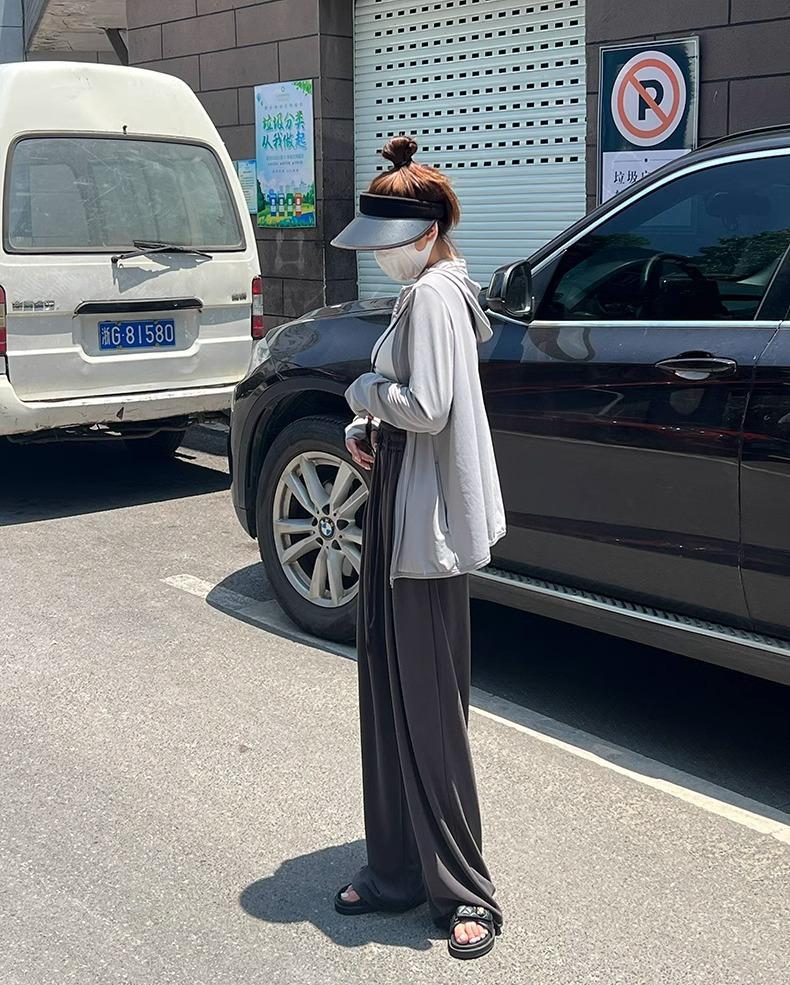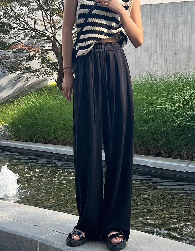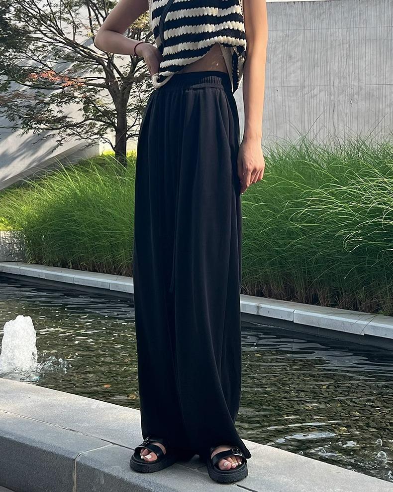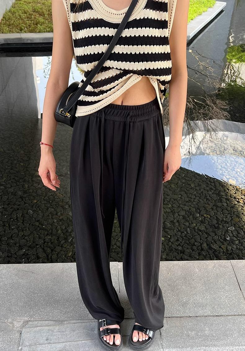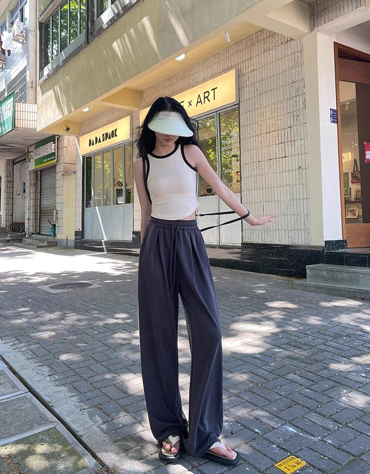 Pantalones de verano para mujer, de pierna ancha, 150 cm, cintura alta, finos, rectos, informales, ajustados, de seda de hielo 2025