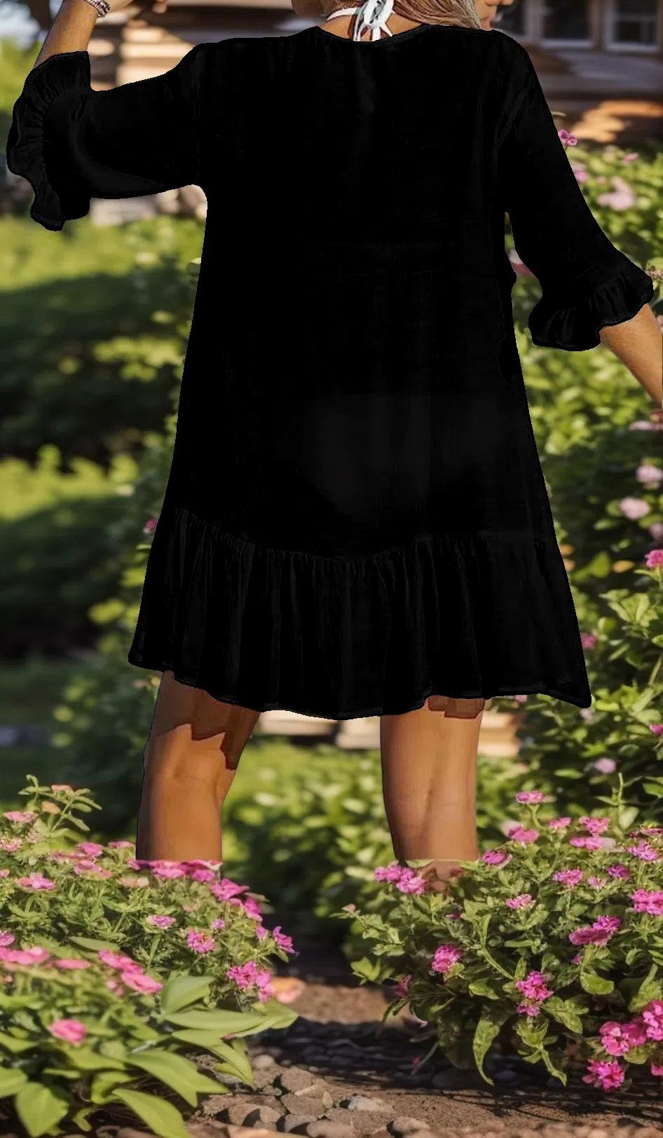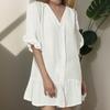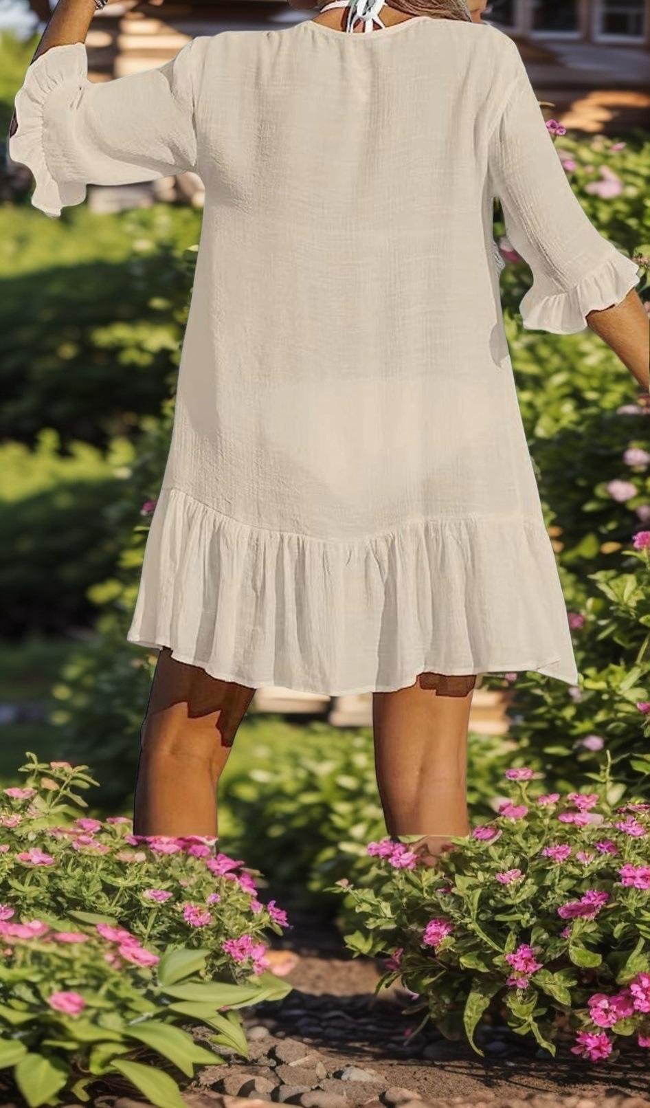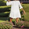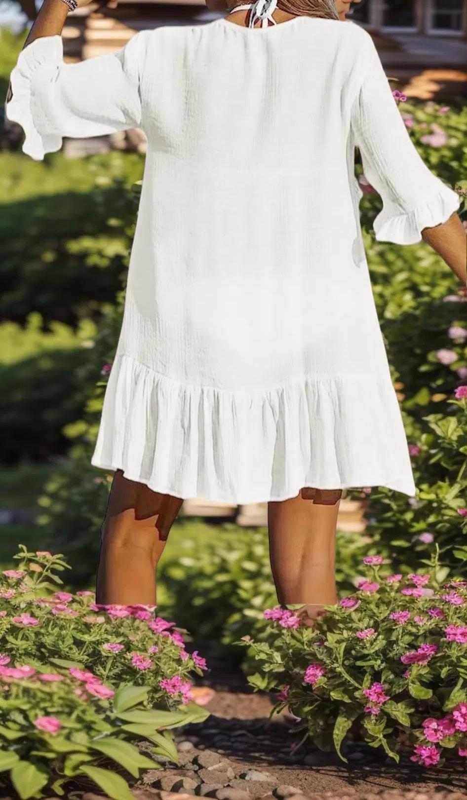 Vestido Europeo y Americano de Verano con Cuello en V y Volantes, Color Puro, Blusa para Mujer para Playa y Protección Solar
