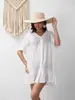 Vestido con cuello en V y volantes de verano 2023, estilo europeo y americano, blusa de playa de color liso con protección solar para mujer de Amazon.
